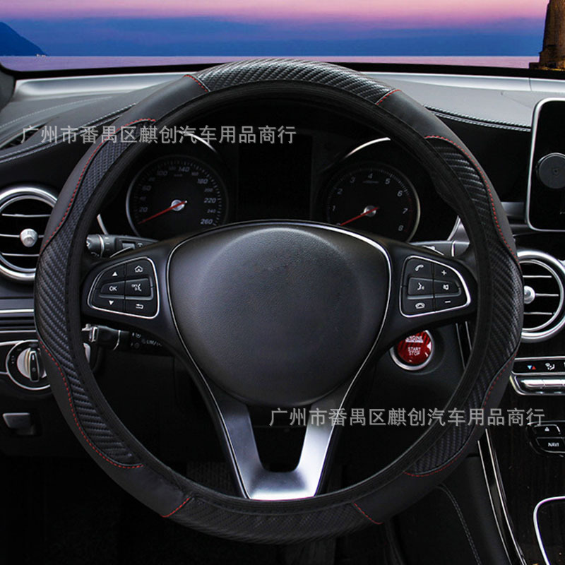 내부 링이없는 자동차 스티어링 휠 커버 카본 섬유 가죽 편안한 내마모성 탄성 자동차 핸들 커버 국경 38cm스토어 가기