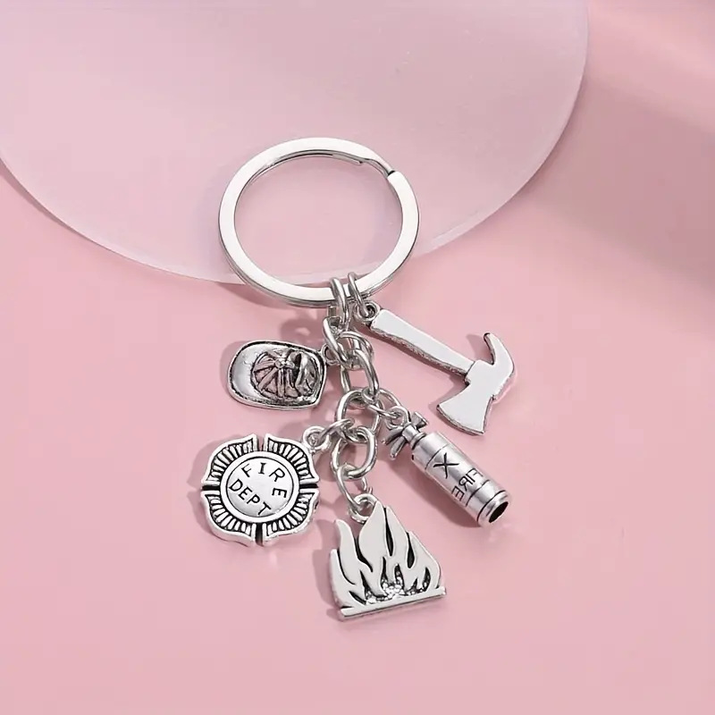 소방관 배지 소화기 도끼 헬멧 소방관 키 링 소방 영웅 기념 키 체인