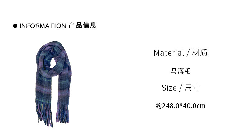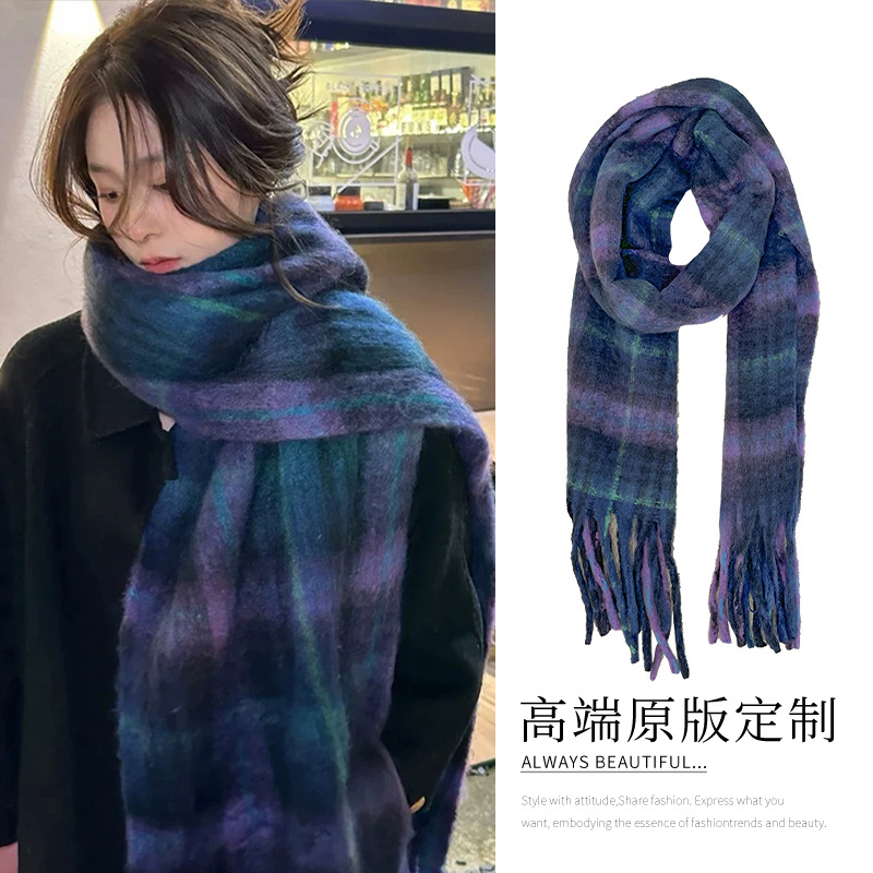秋冬新款~撞色条纹马海毛围巾女保暖百搭格子流苏围脖保暖防寒