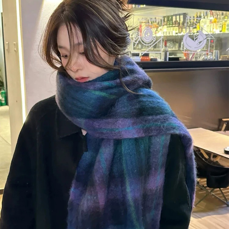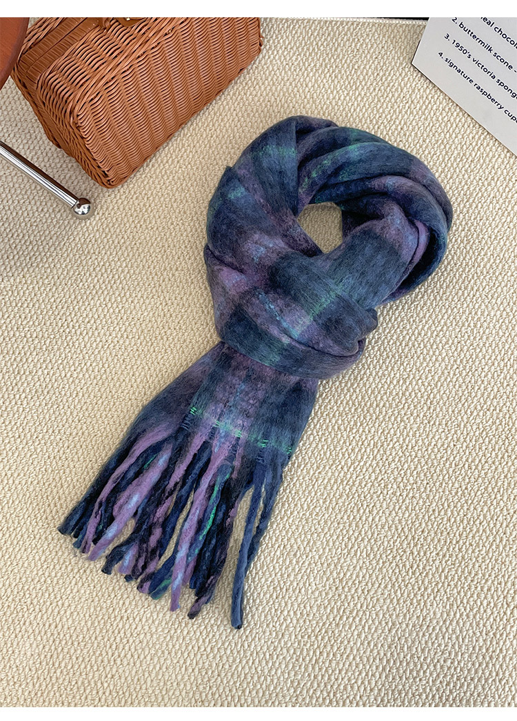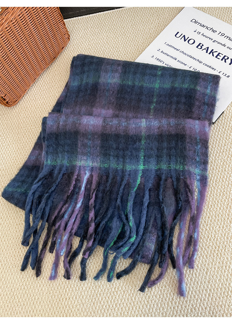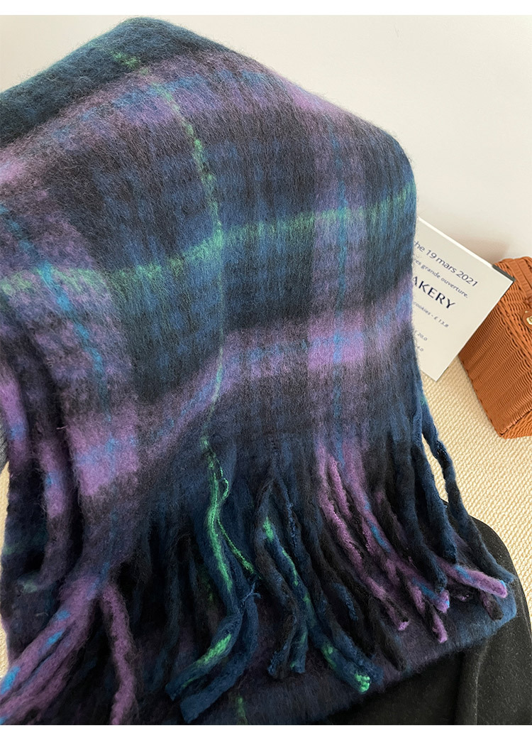 가을과 겨울 새로운 ~ 대비 줄무늬 모헤어 스카프 여성의 따뜻한 조커 격자 무늬 술 스카프 따뜻한 감기
