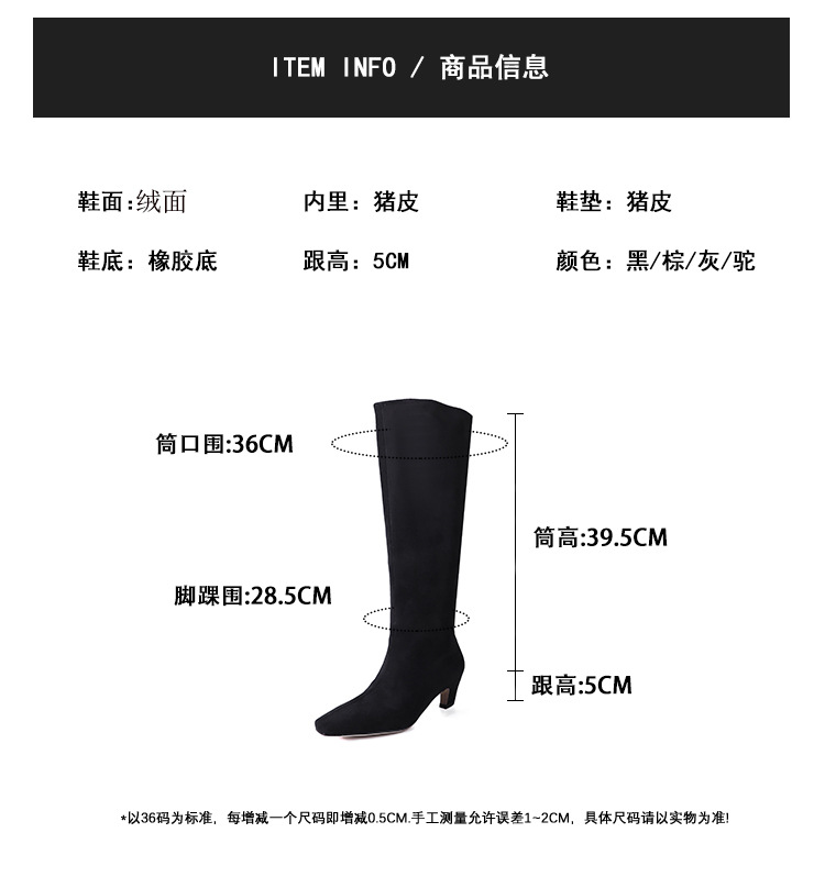 2024 가을 및 겨울 새 광장 헤드 기사 부츠 여성용 미드 힐 하이 부츠 Puss Heel 부츠 그레이 스트레치 얇은 부츠
