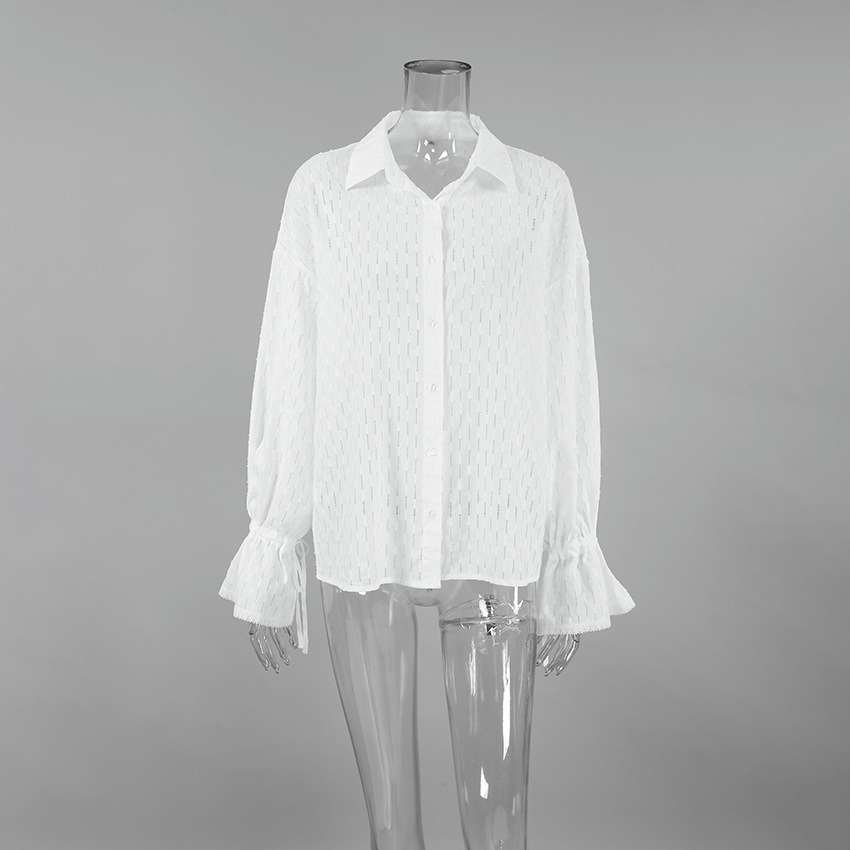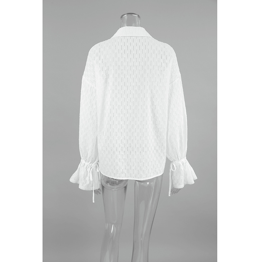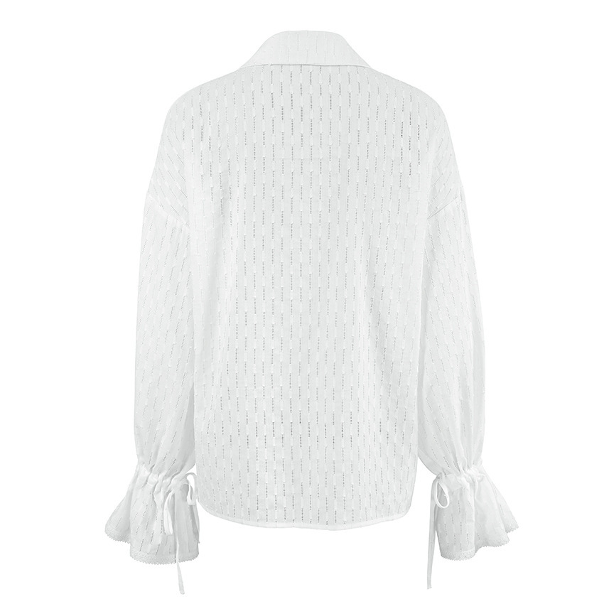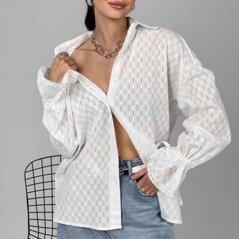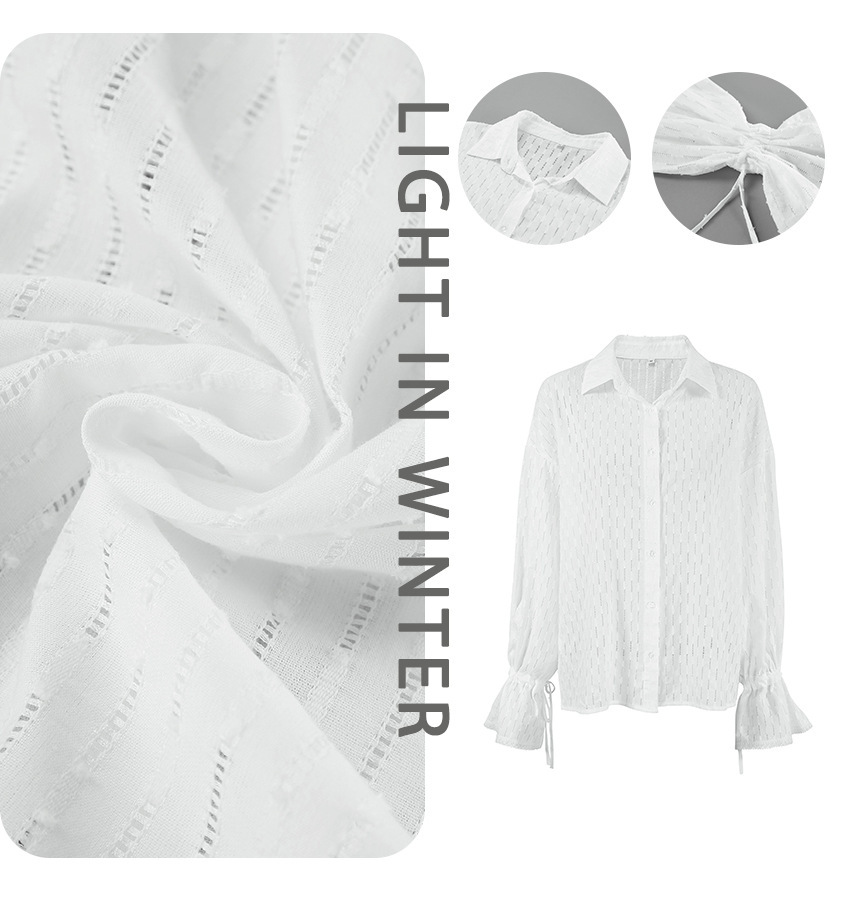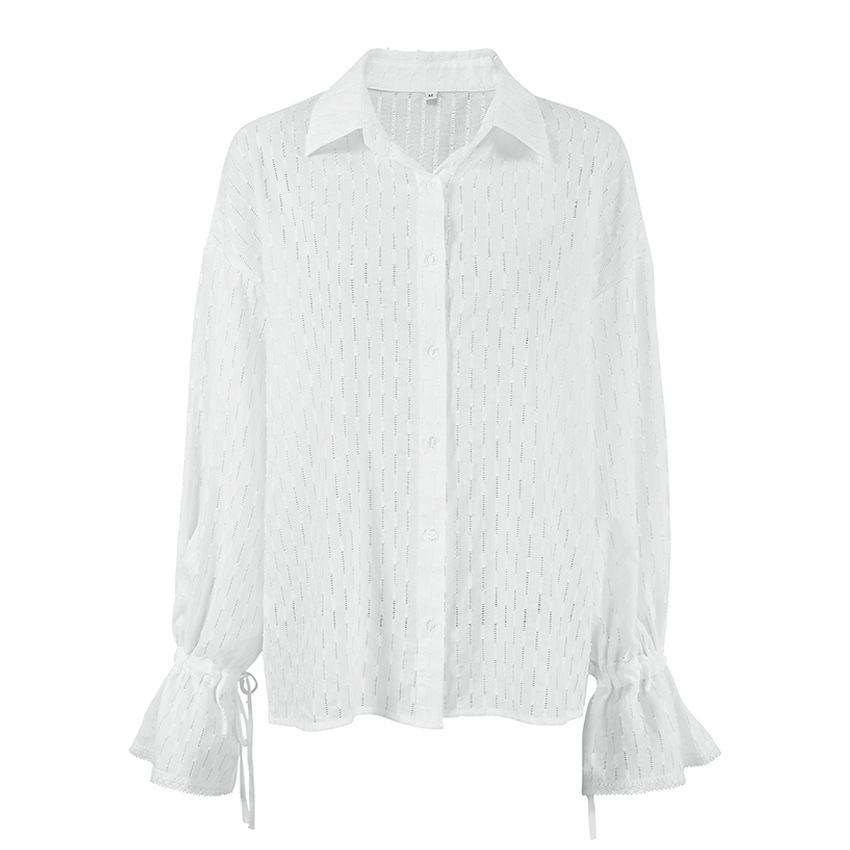 유럽과 미국 스타일의 중공 자카드 긴팔 캐주얼 가디건 2024 가을 새로운 디자인 벨 슬리브 레이스 업스토어 가기