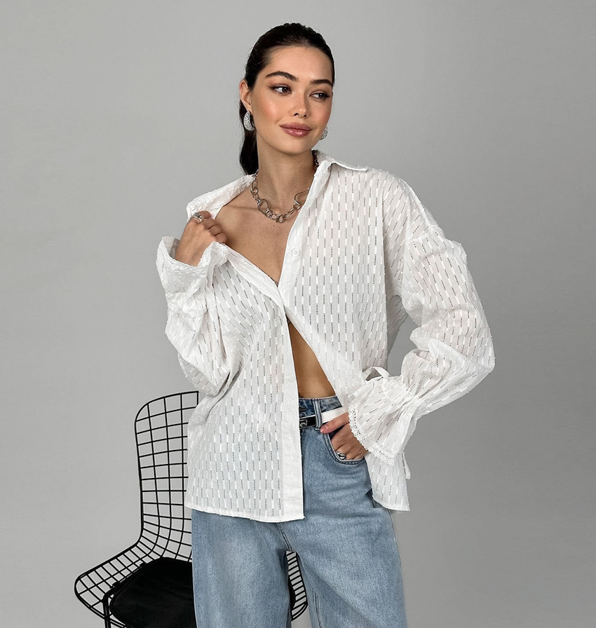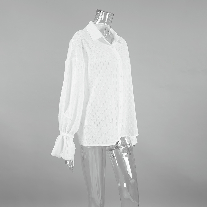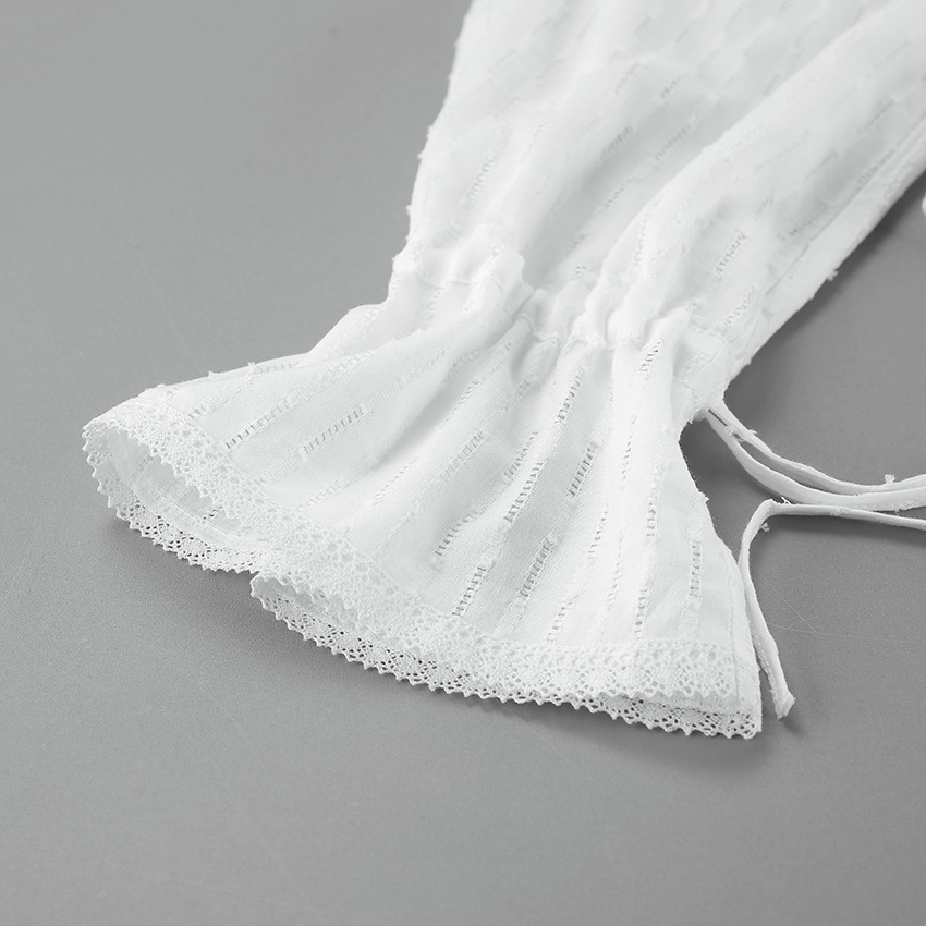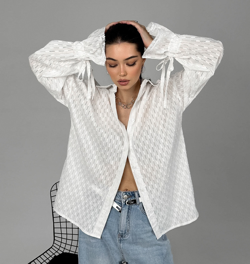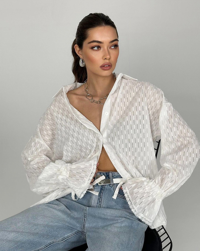 유럽과 미국 스타일의 중공 자카드 긴팔 캐주얼 가디건 2024 가을 새로운 디자인 벨 슬리브 레이스 업스토어 가기