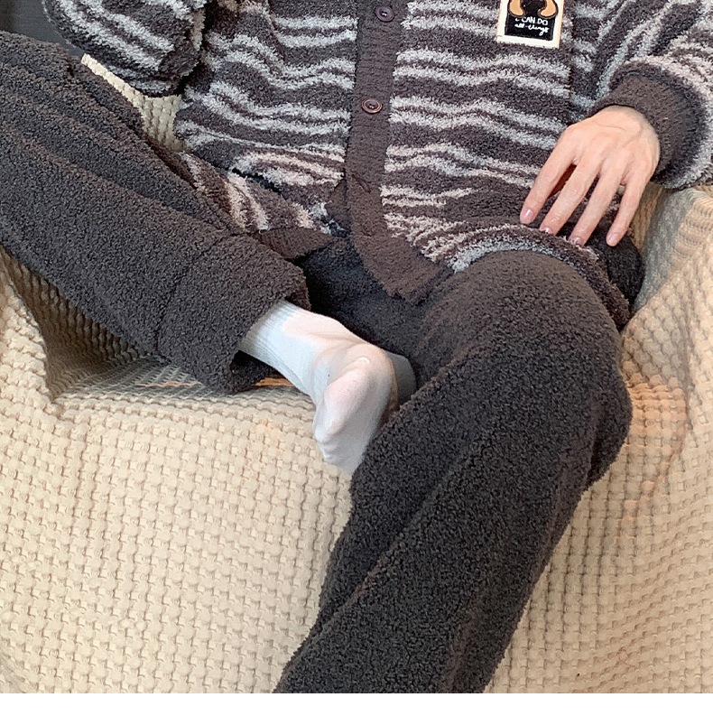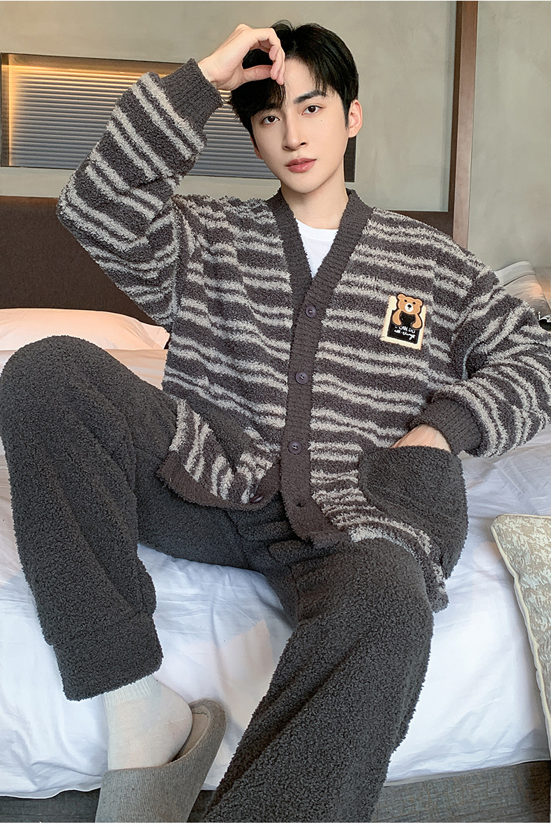 산호 양털 남성 잠옷 가을/겨울 카디건 긴 소매와 지방을 따뜻하게 유지하는 200kg 청소년 가정 의류 세트