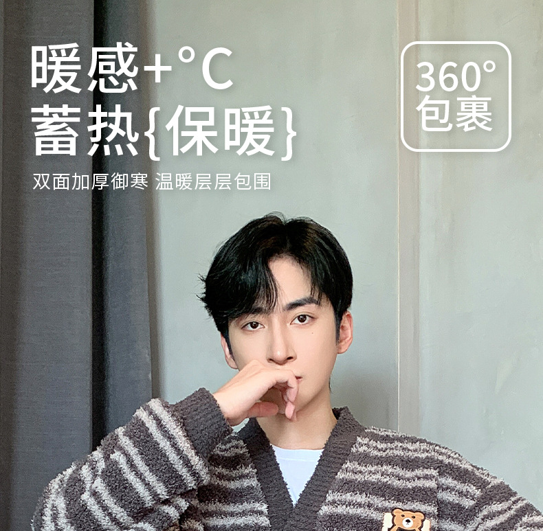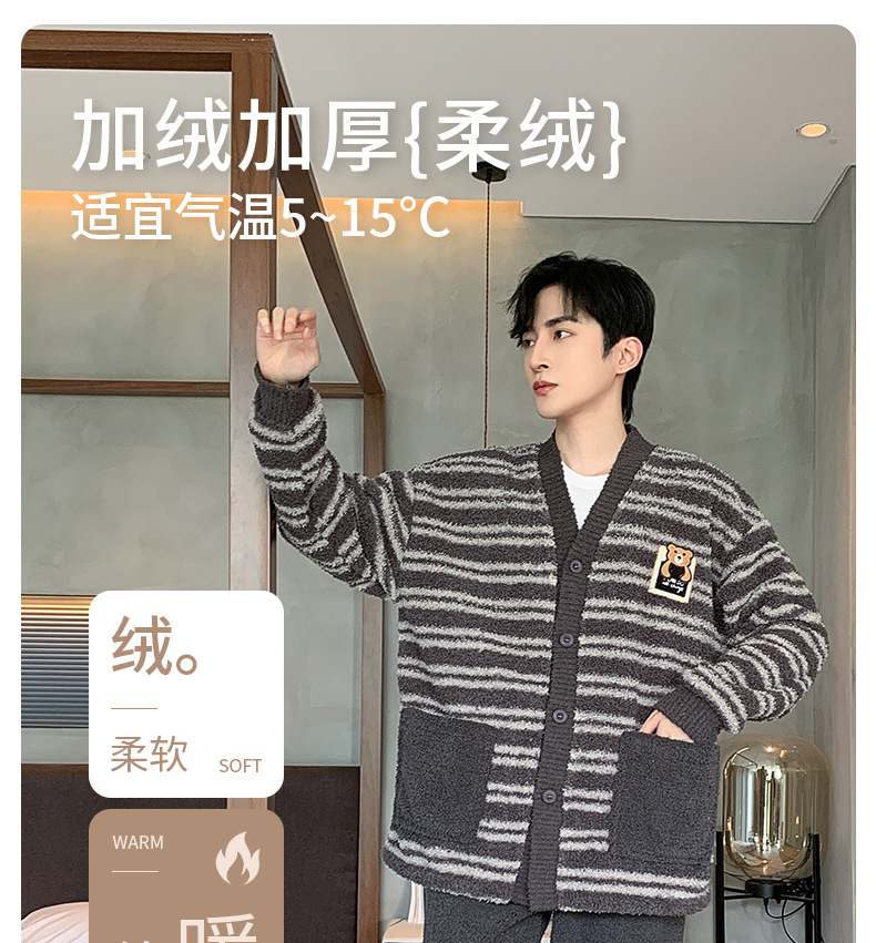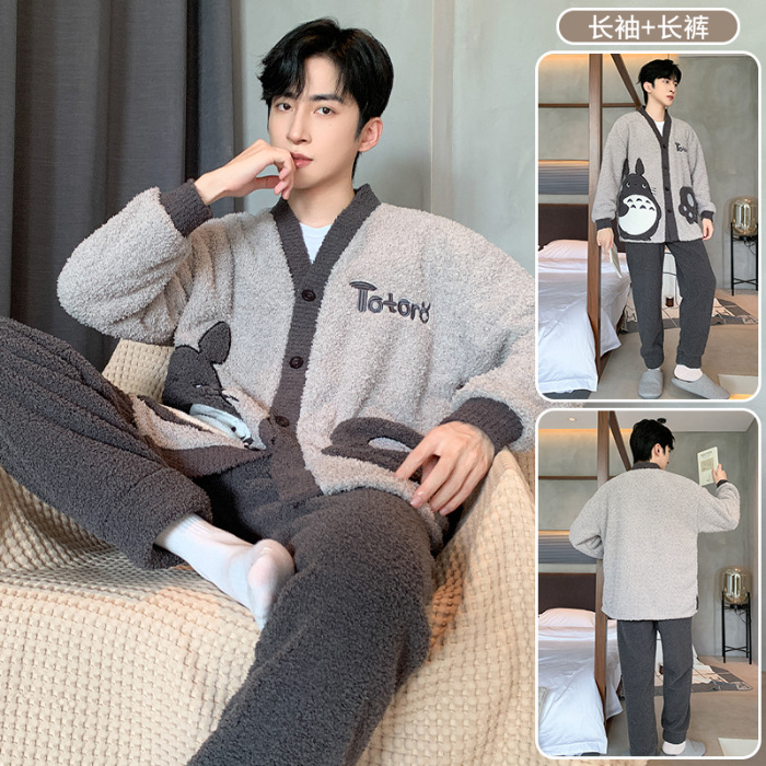 산호 양털 남성 잠옷 가을/겨울 카디건 긴 소매와 지방을 따뜻하게 유지하는 200kg 청소년 가정 의류 세트스토어 가기