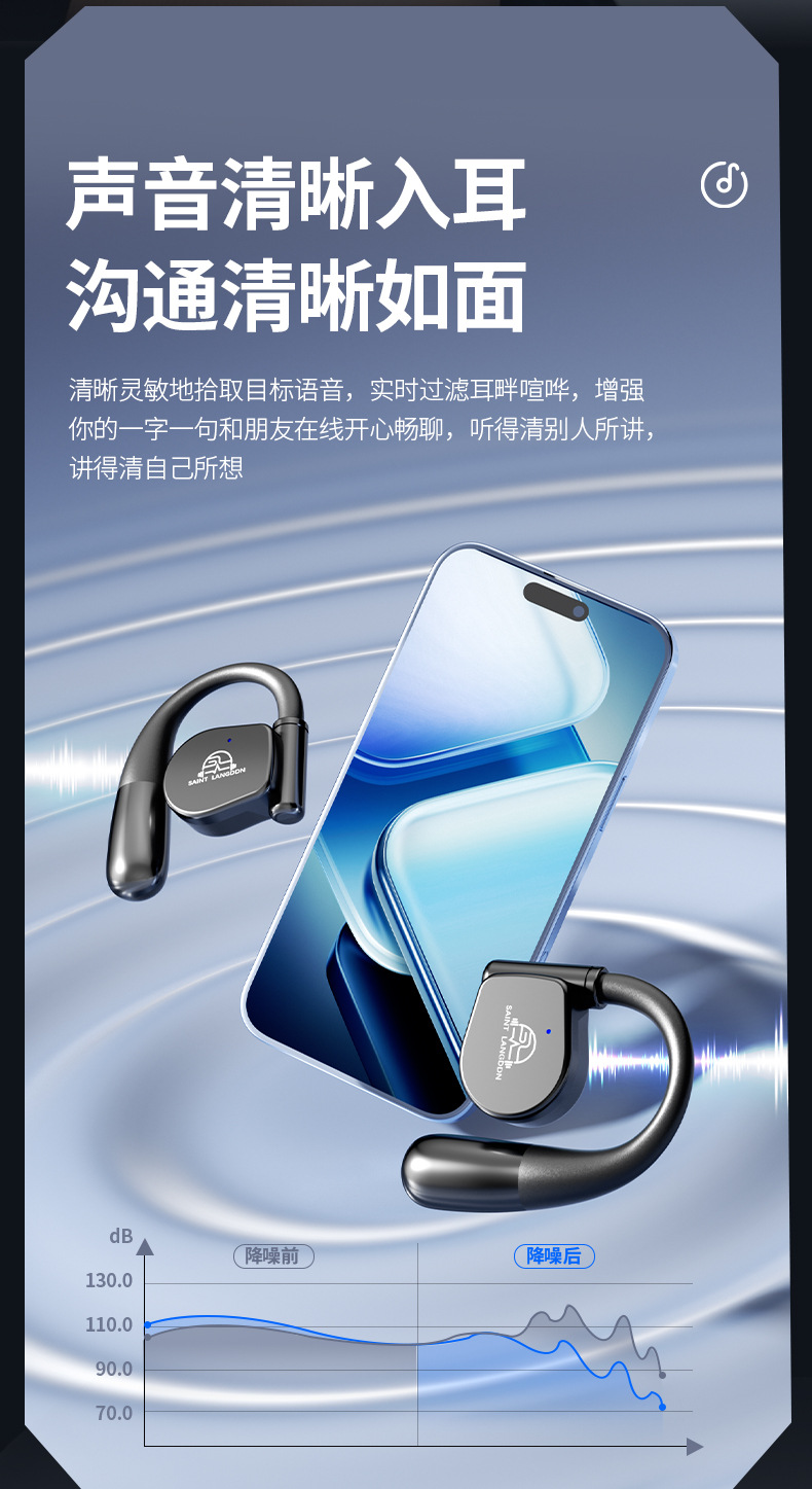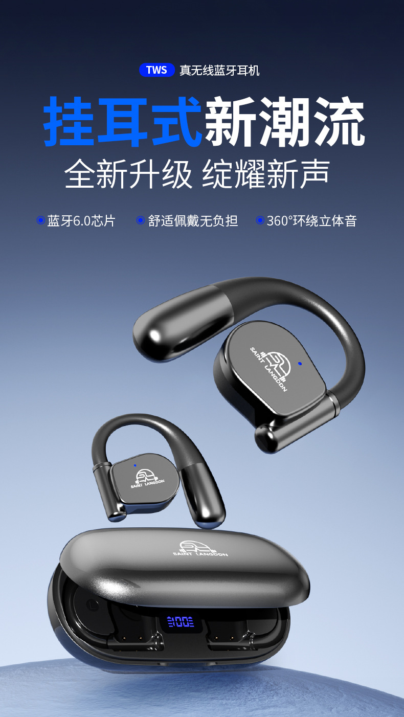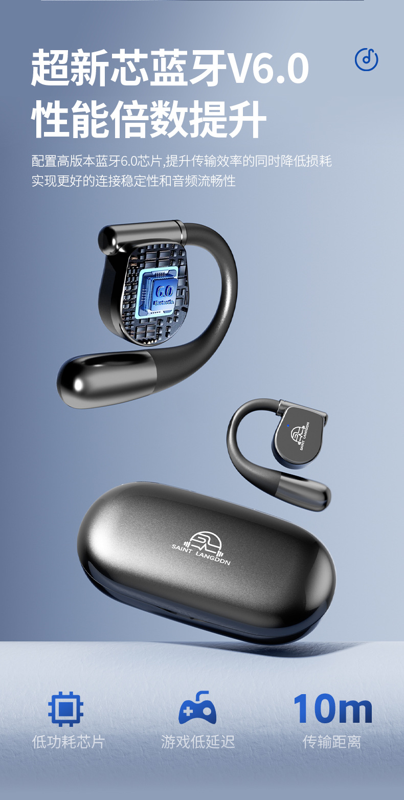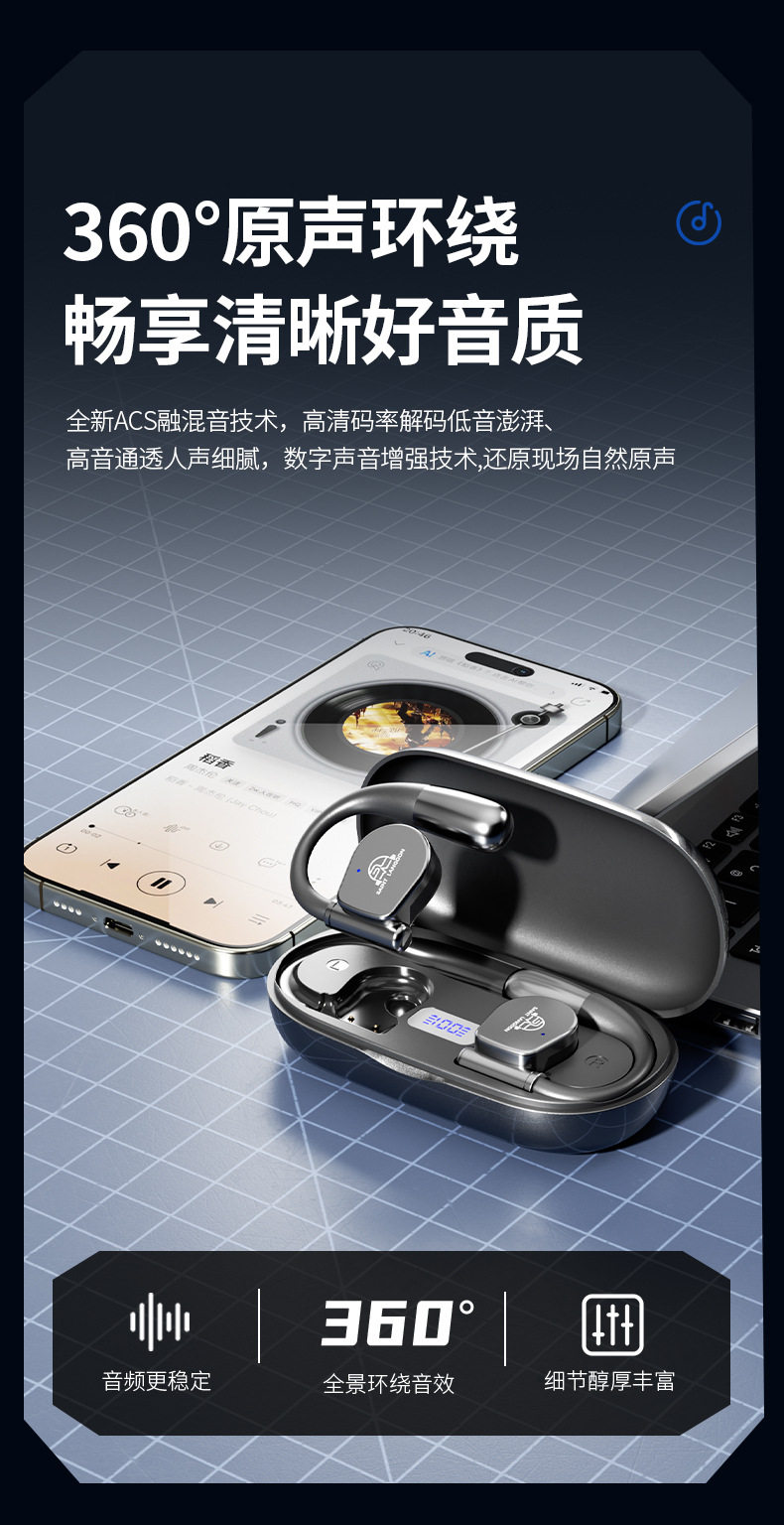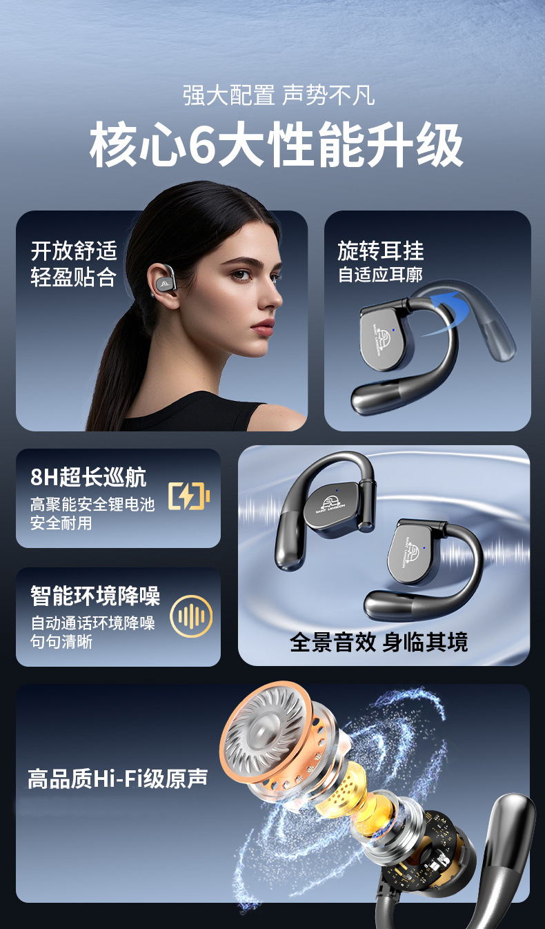 오픈형 Bluetooth 헤드셋, 무선 귀걸이형 스포츠 소음 감소, 매우 긴 배터리 수명, 달리기용 특수 헤드셋, 새로운 방수스토어 가기