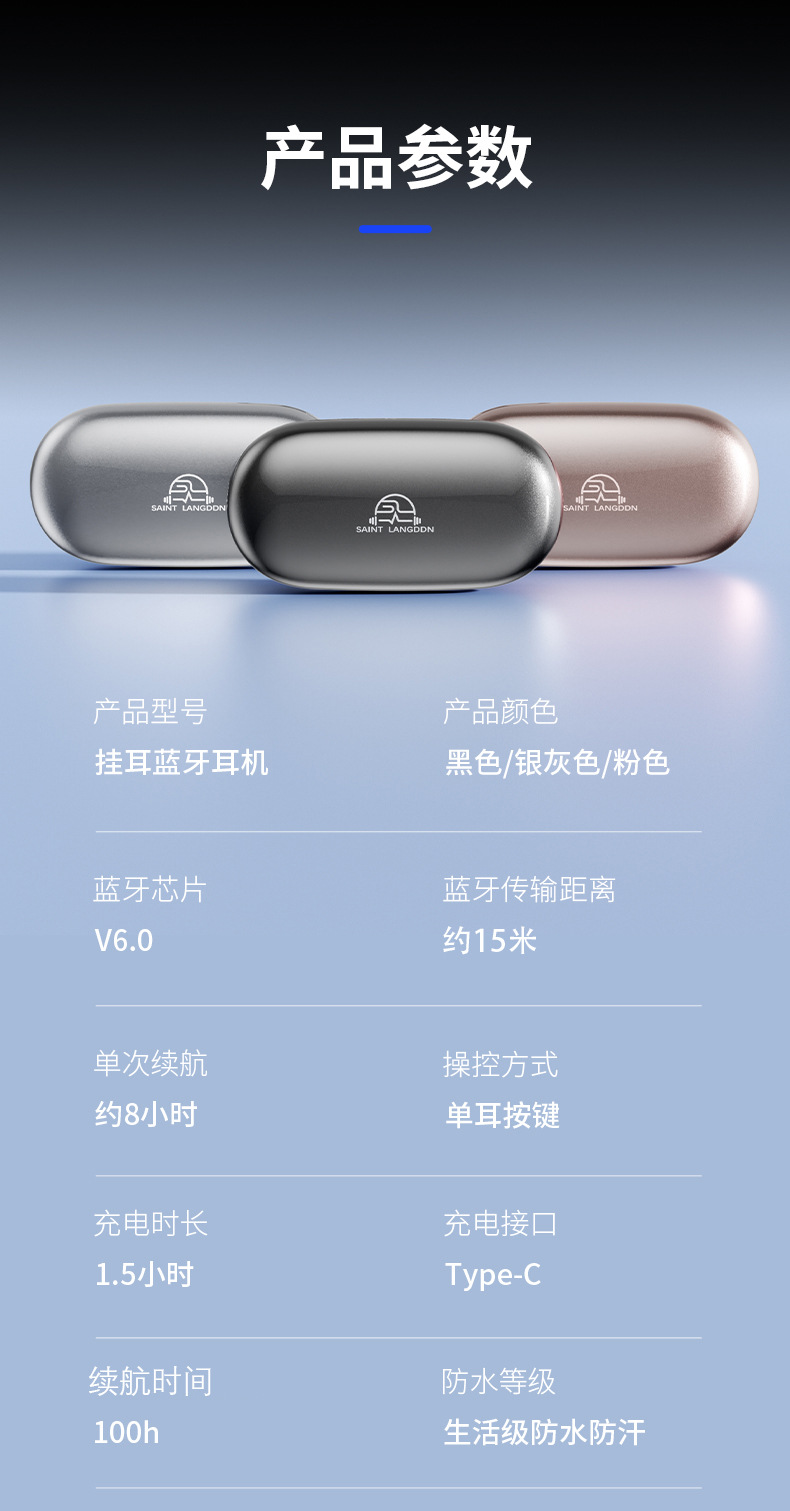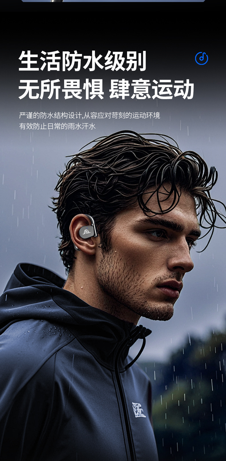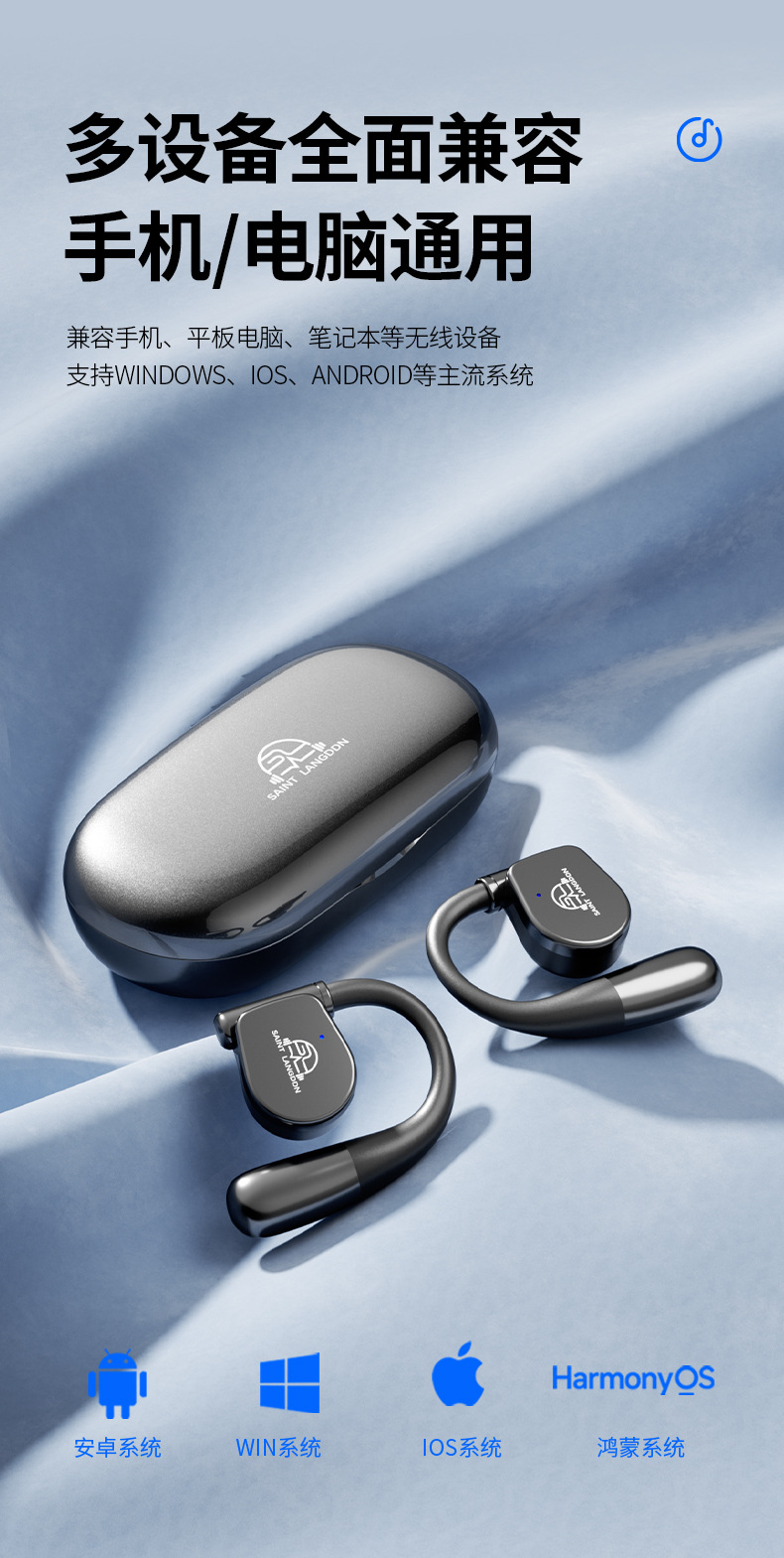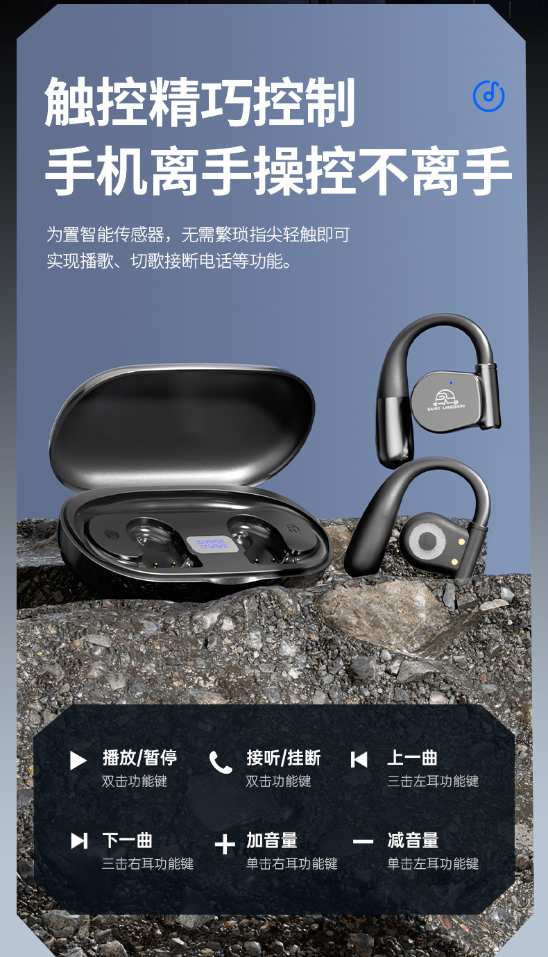 오픈형 Bluetooth 헤드셋, 무선 귀걸이형 스포츠 소음 감소, 매우 긴 배터리 수명, 달리기용 특수 헤드셋, 새로운 방수스토어 가기