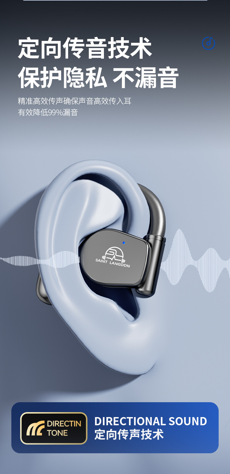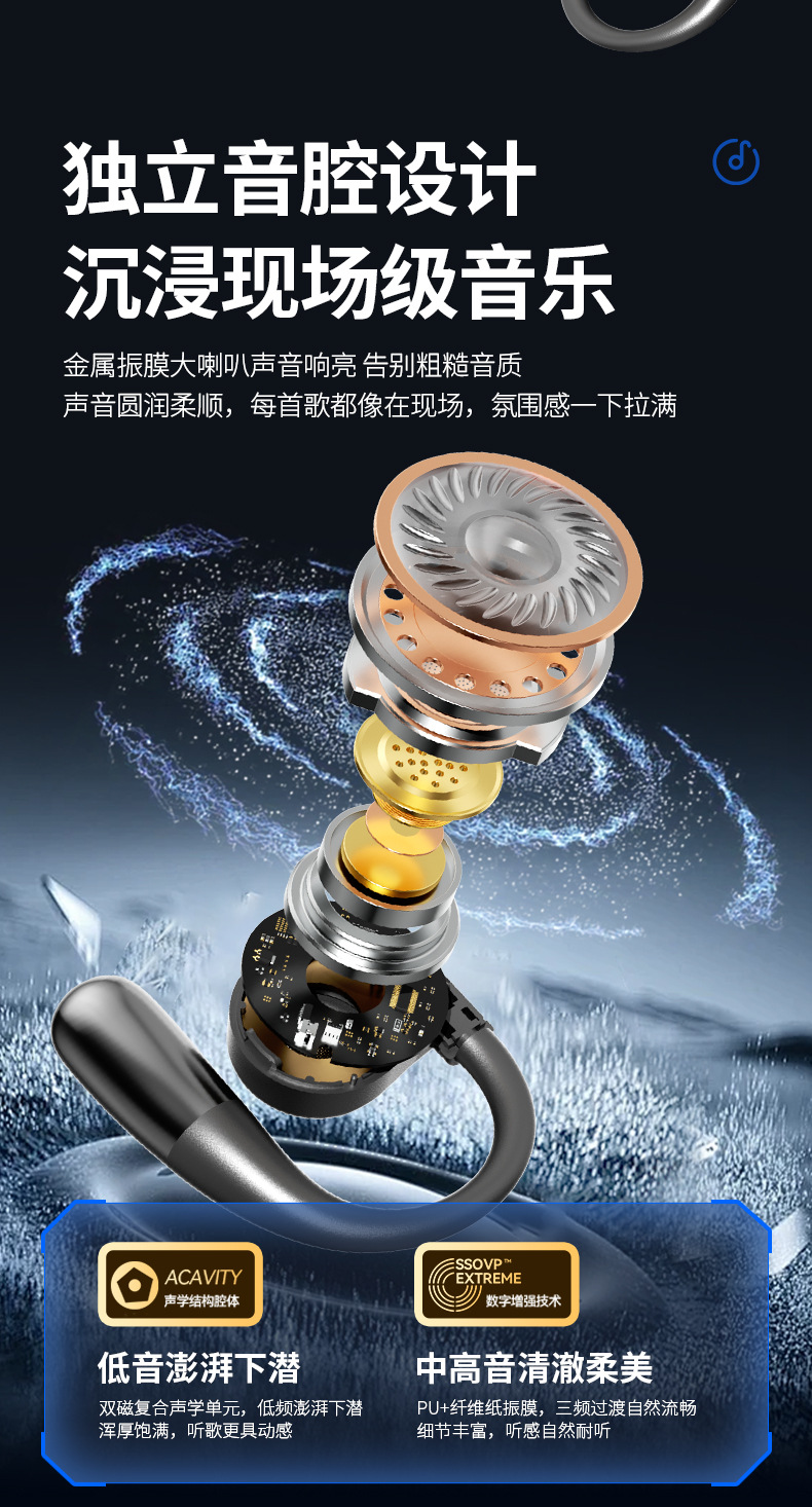 오픈형 Bluetooth 헤드셋, 무선 귀걸이형 스포츠 소음 감소, 매우 긴 배터리 수명, 달리기용 특수 헤드셋, 새로운 방수