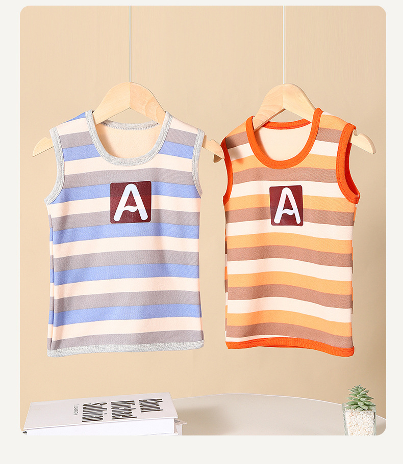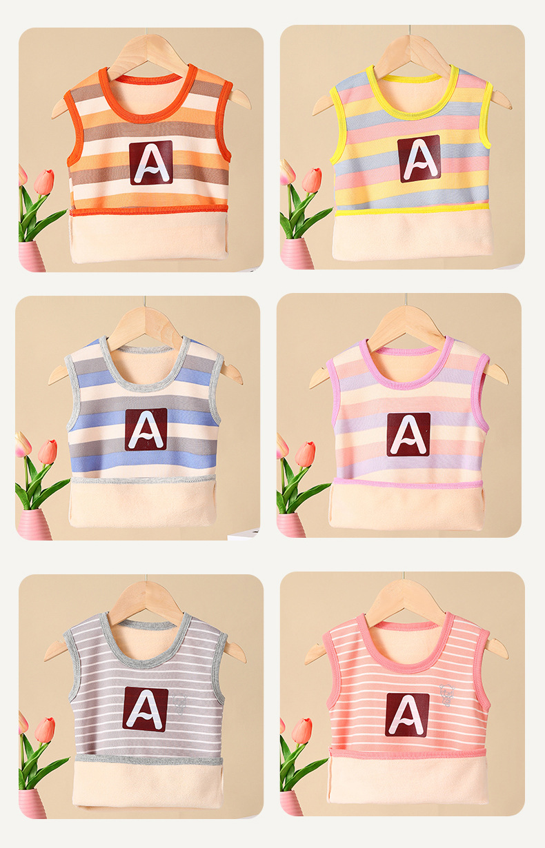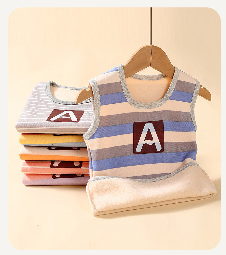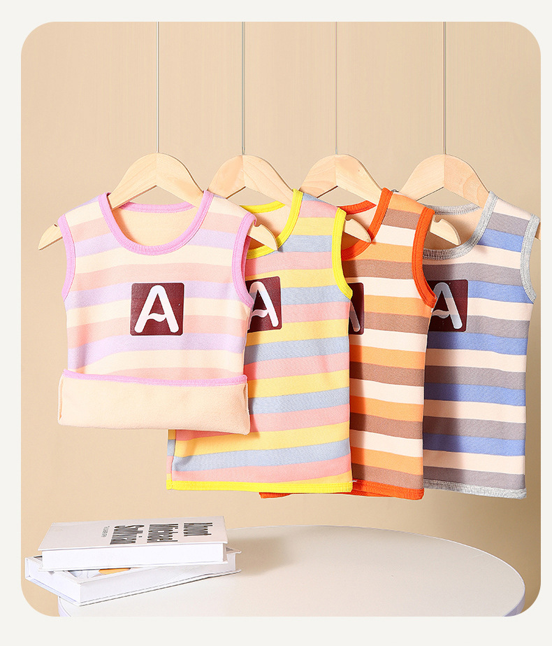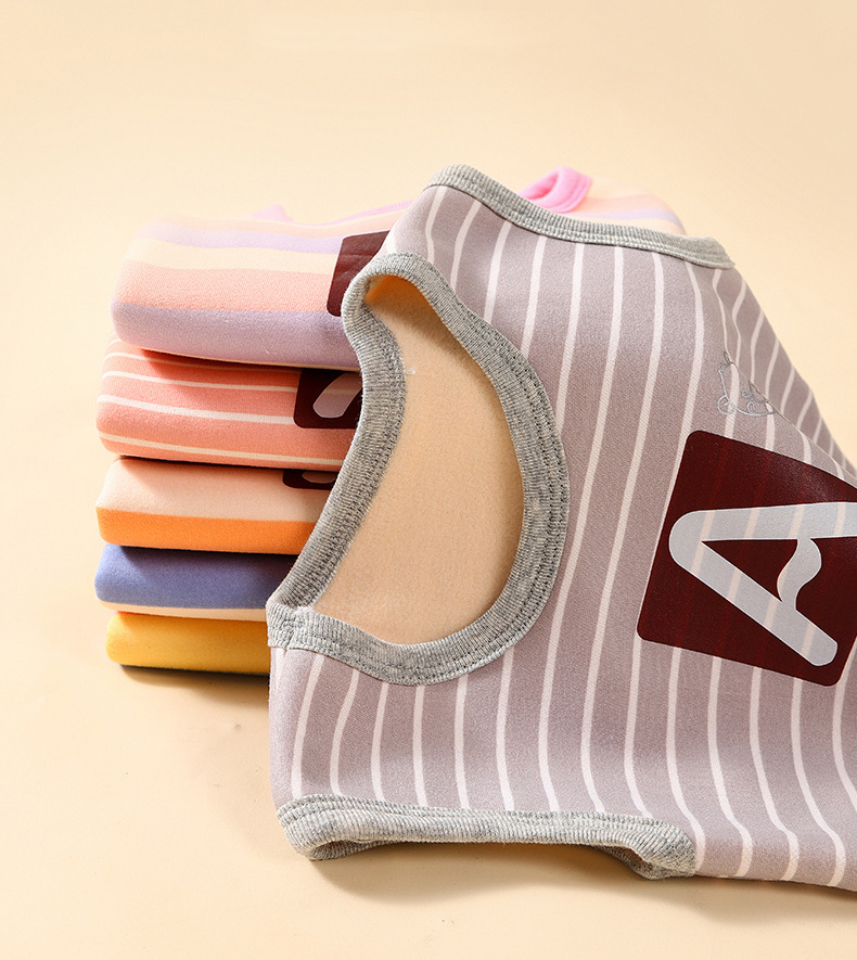 가을과 겨울 어린이 느슨한 캐주얼 스트라이프 따뜻한 조끼 작은 중간 크기의 소년 소녀를위한 기모 자켓