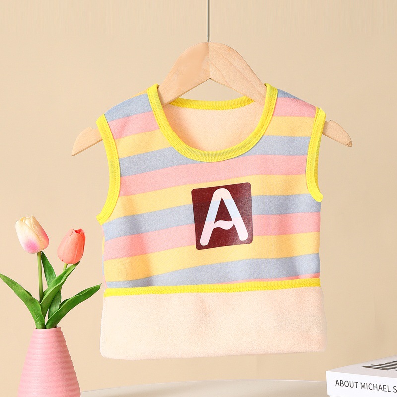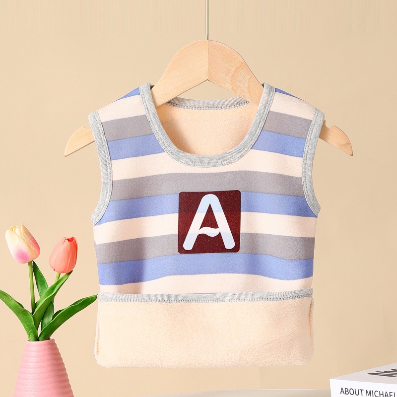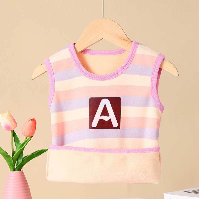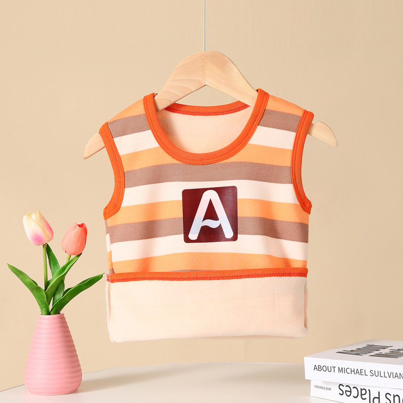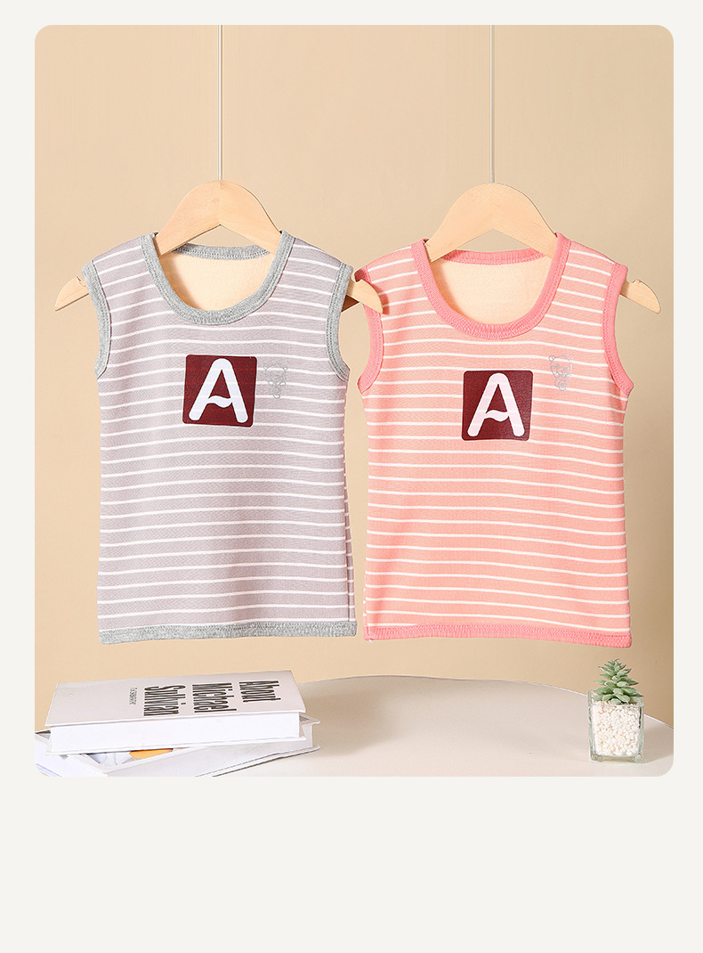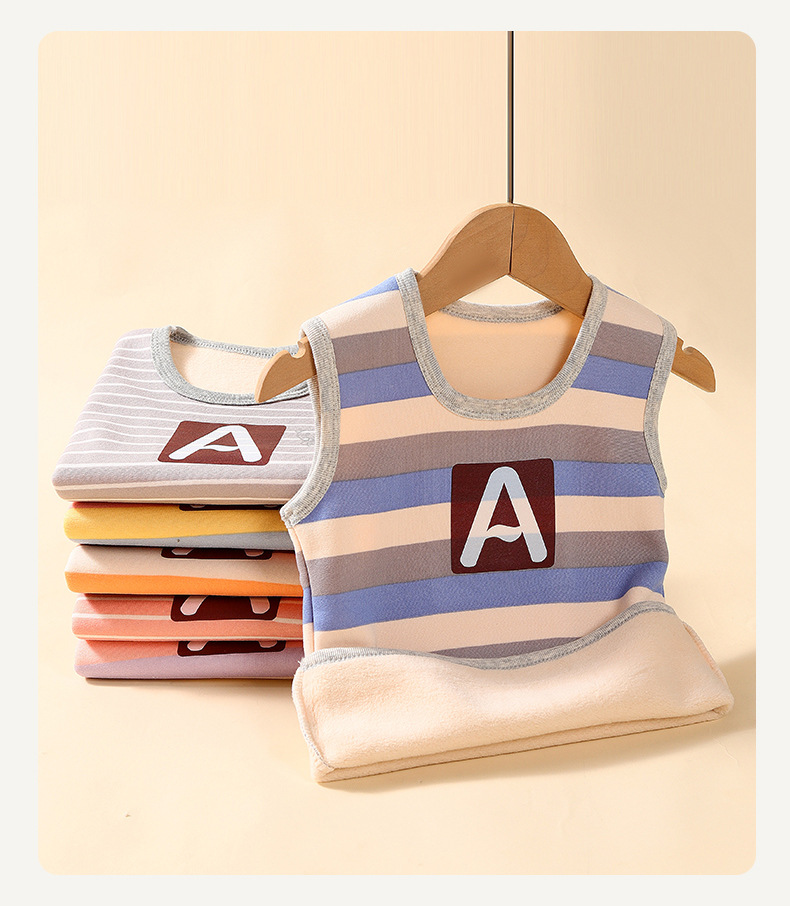 가을과 겨울 어린이 느슨한 캐주얼 스트라이프 따뜻한 조끼 작은 중간 크기의 소년 소녀를위한 기모 자켓