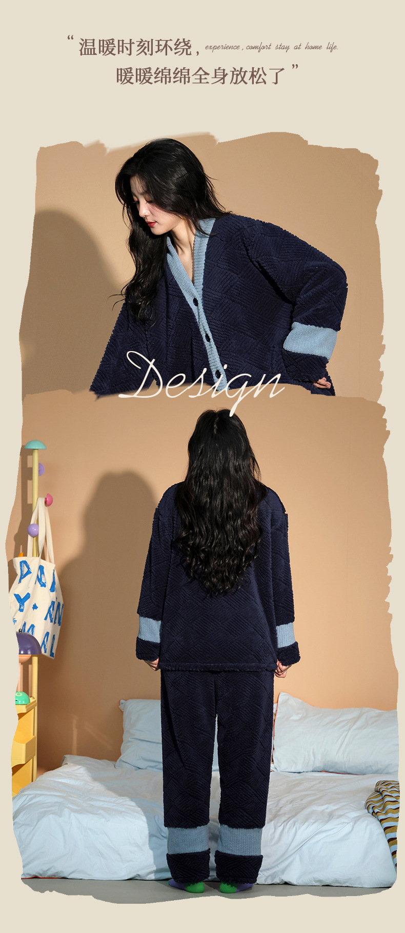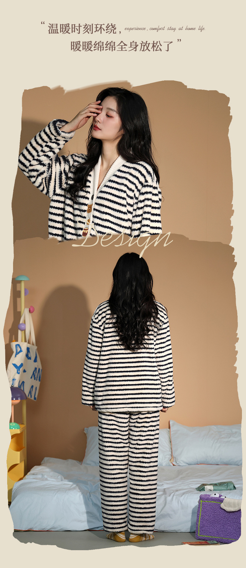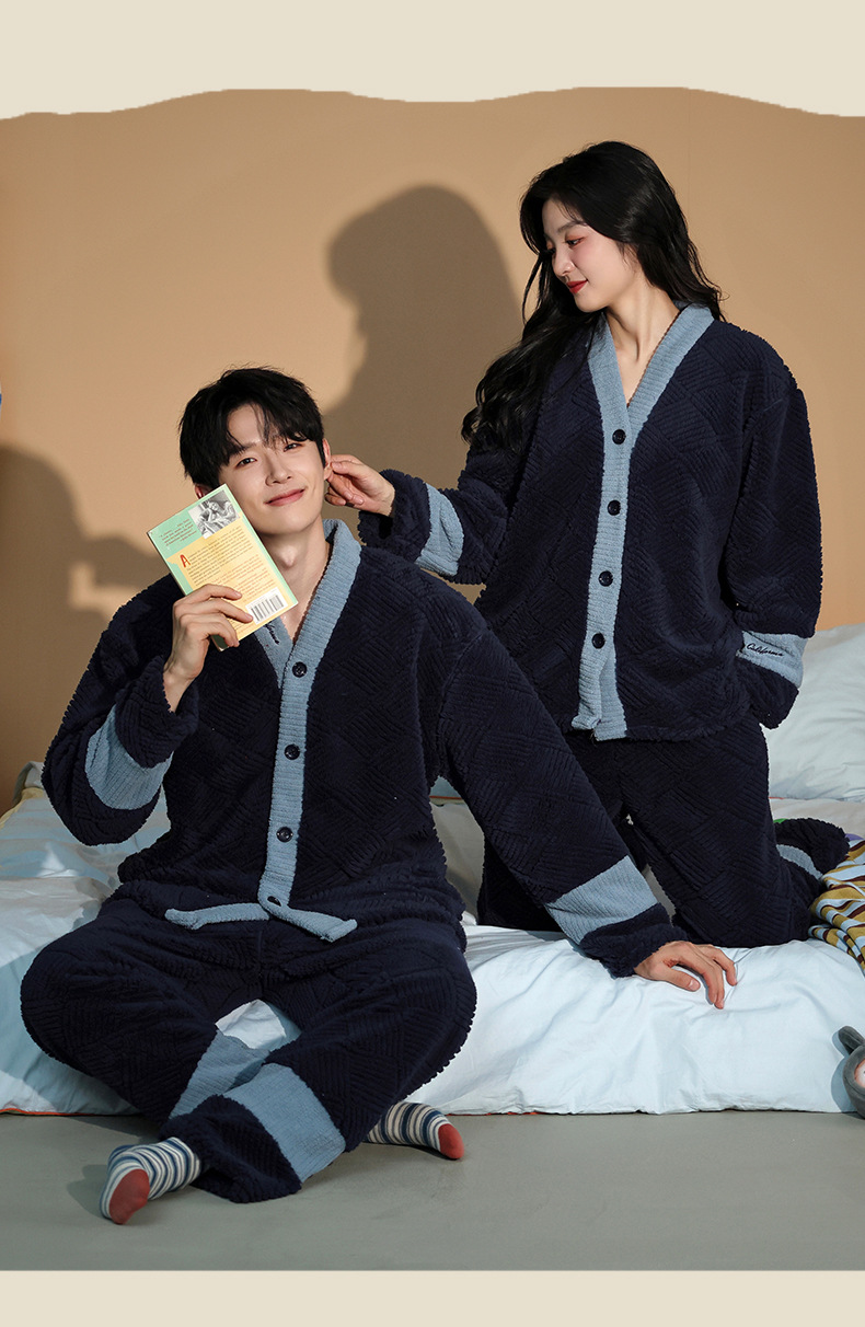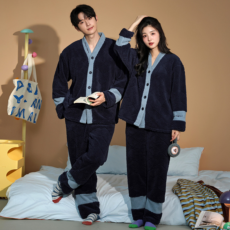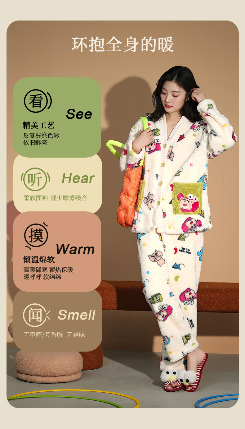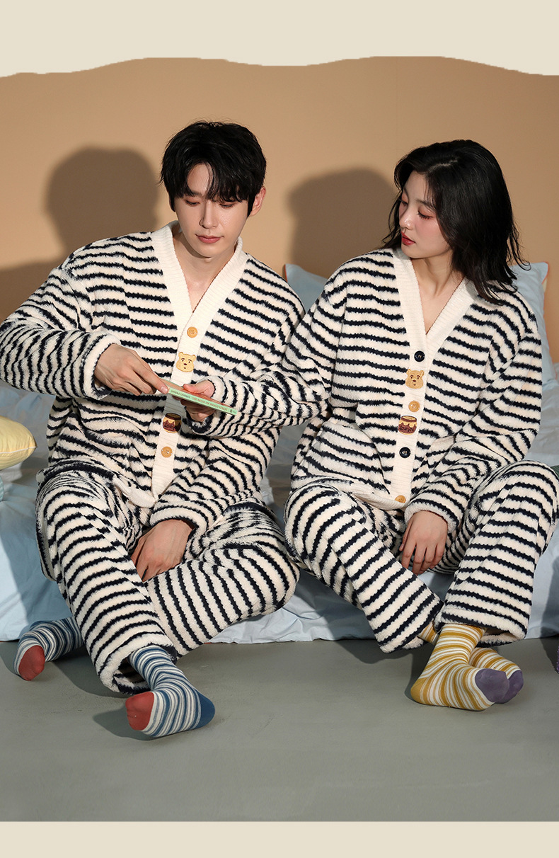 겨울 만화 커플 잠옷 여성 캐주얼 카디건 두꺼운 따뜻한 산호 양털 남성 홈 의류 세트