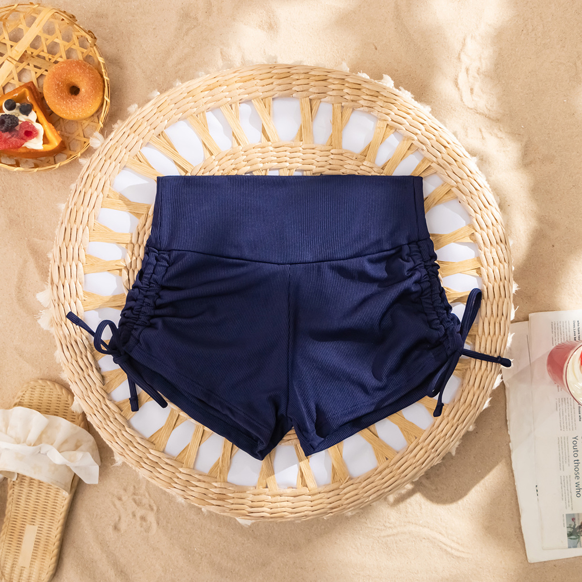아마존 새로운 단색 수영 트렁크 여성의 높은 허리 복서 수영 트렁크 섹시한 drawstring 슬림 유럽과 미국의 대외 무역 수영 트렁크