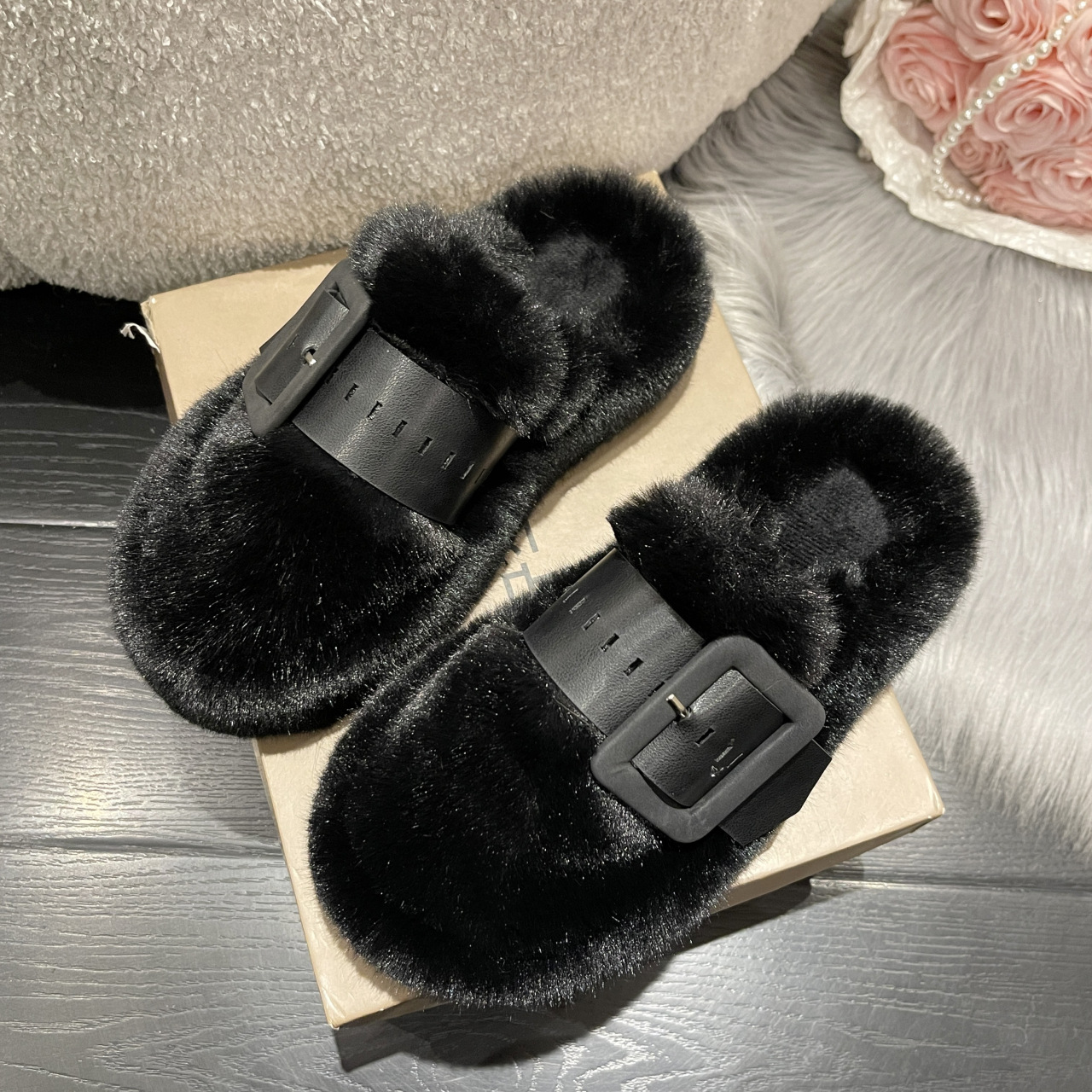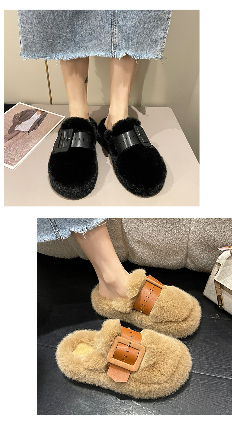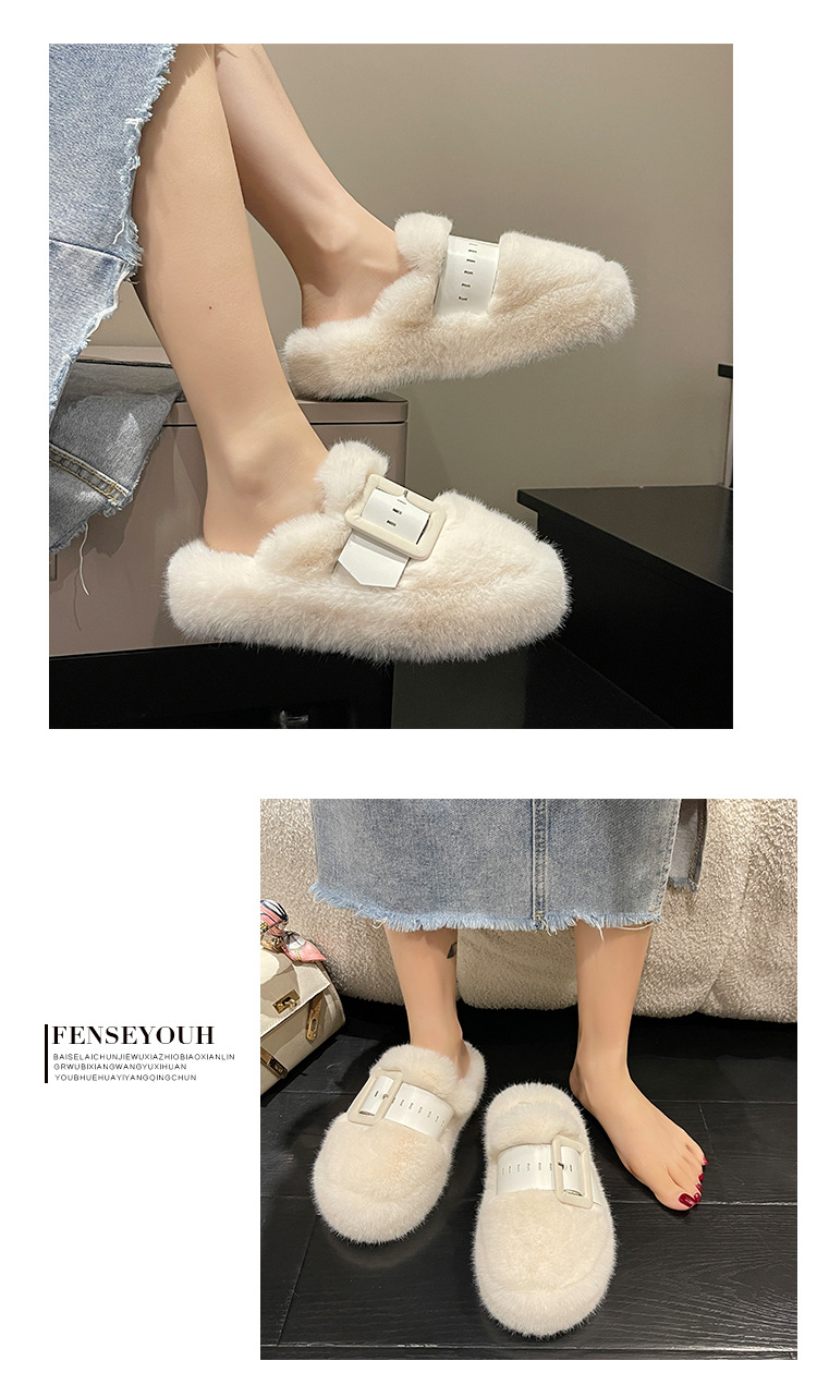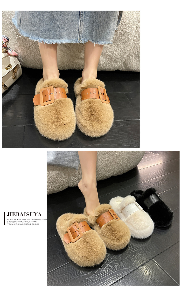 벨트 버클 장식 바오터우 반 슬리퍼 여성용 외부 착용 2024 봄과 가을 새로운 하이 엔드 센스 플랫폼 면 슬리퍼스토어 가기
