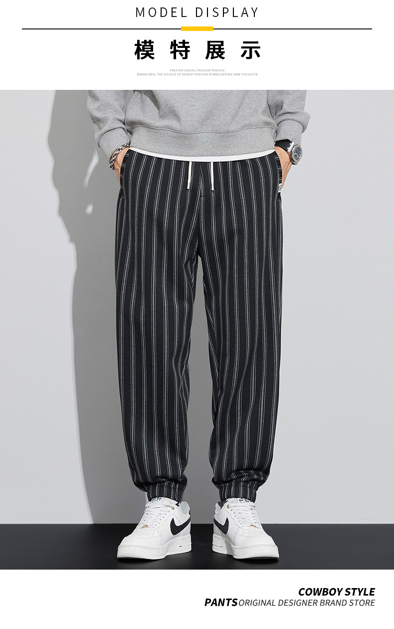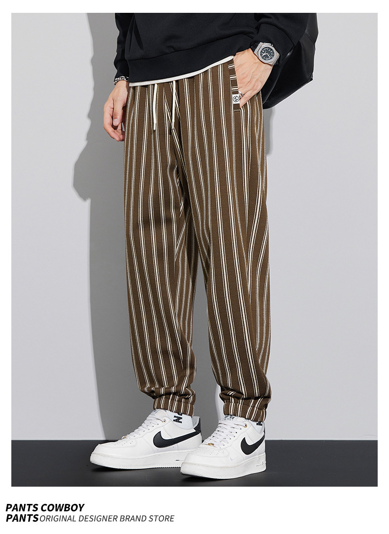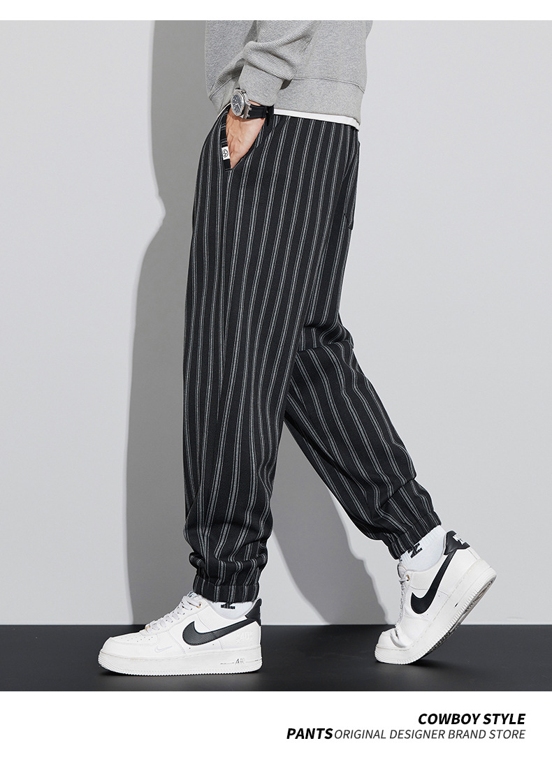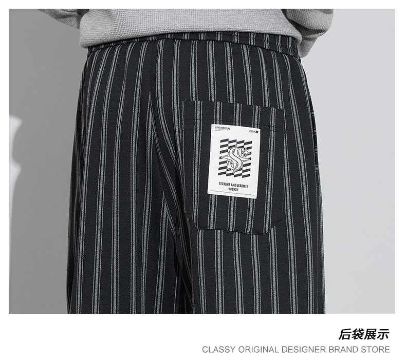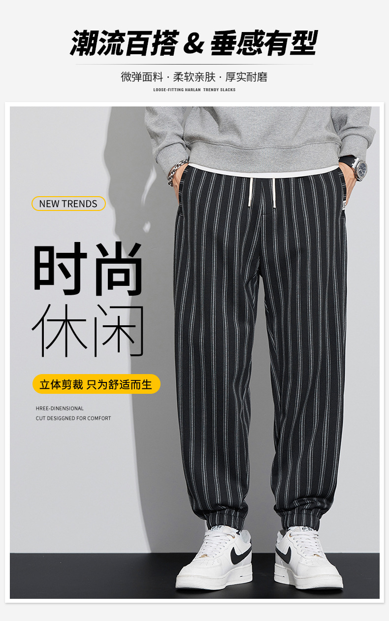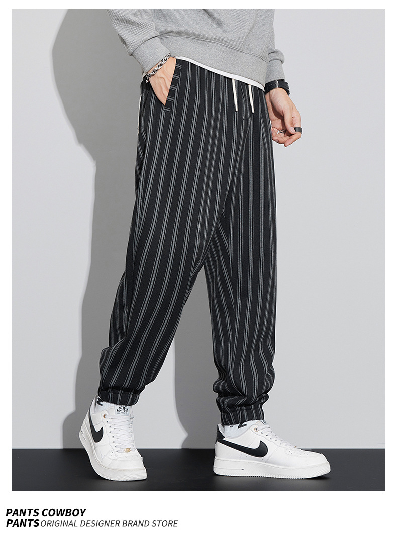 자카드 스트라이프 잘 생긴 패셔너블 할란 바지 남자 가을 및 겨울 새로운 도착 루즈 핏 느슨한 핏 주름 방지 캐주얼 바지스토어 가기