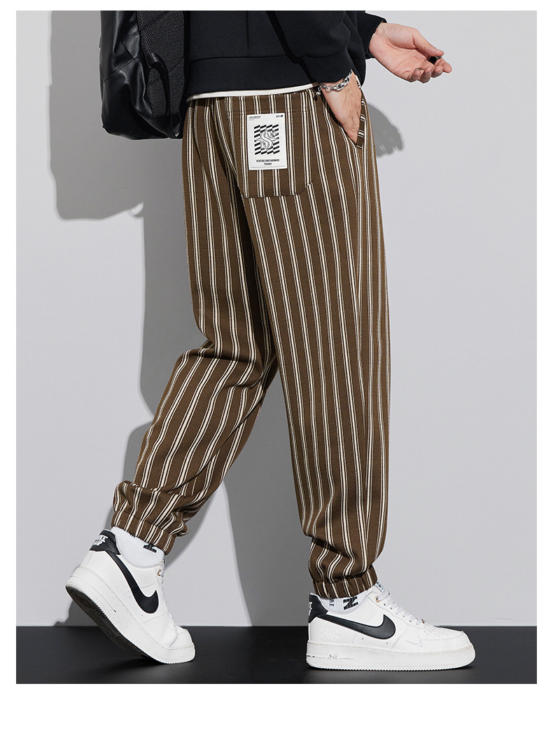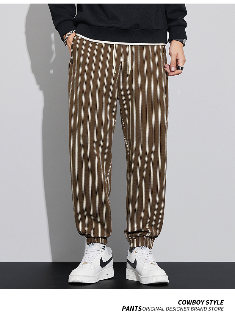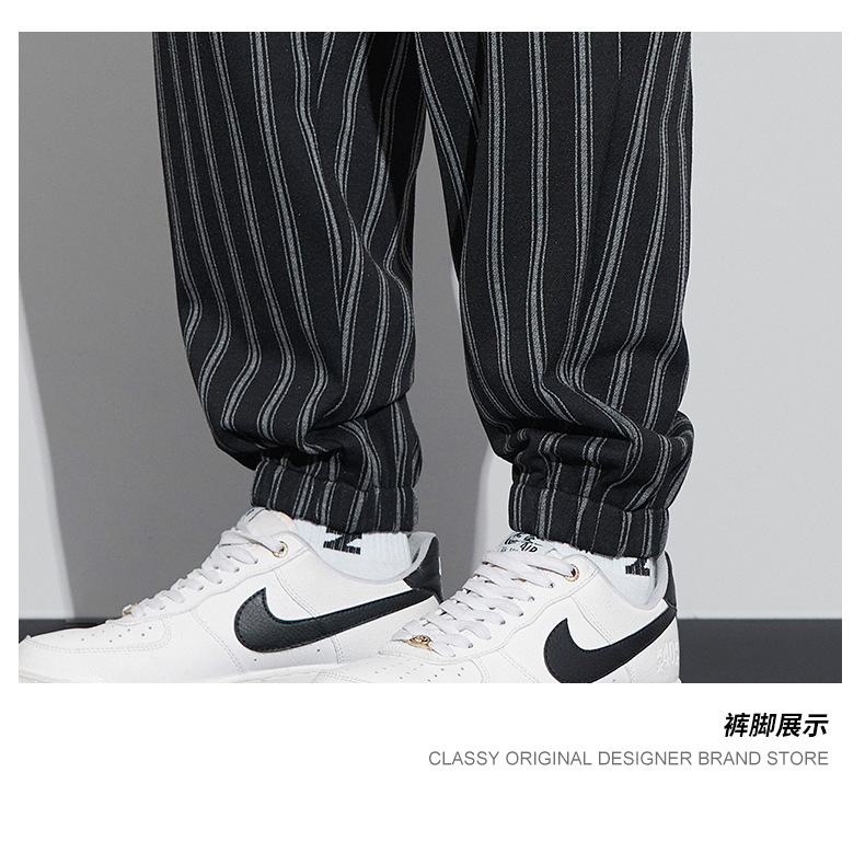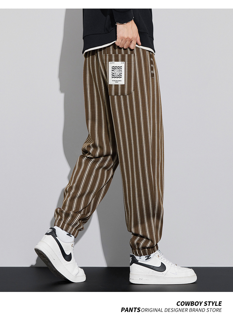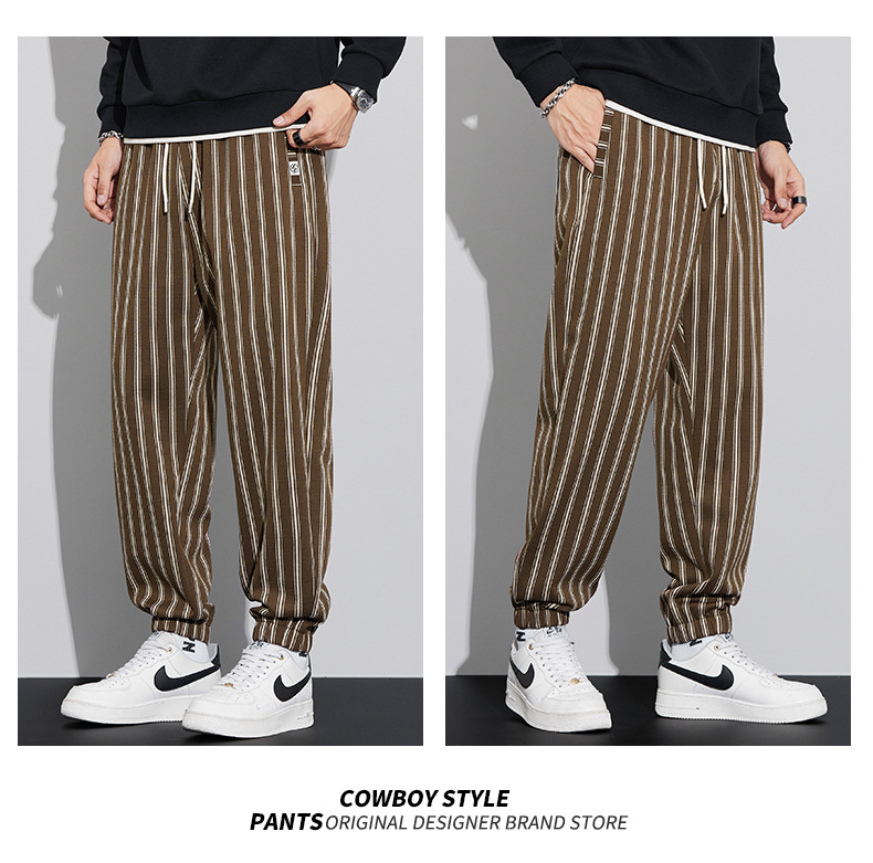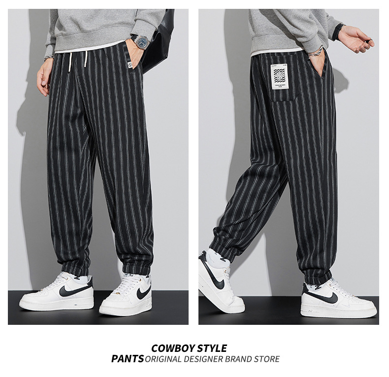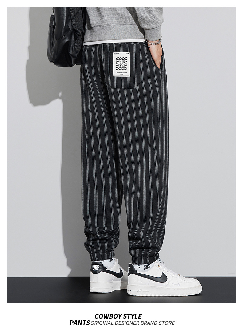 자카드 스트라이프 잘 생긴 패셔너블 할란 바지 남자 가을 및 겨울 새로운 도착 루즈 핏 느슨한 핏 주름 방지 캐주얼 바지스토어 가기