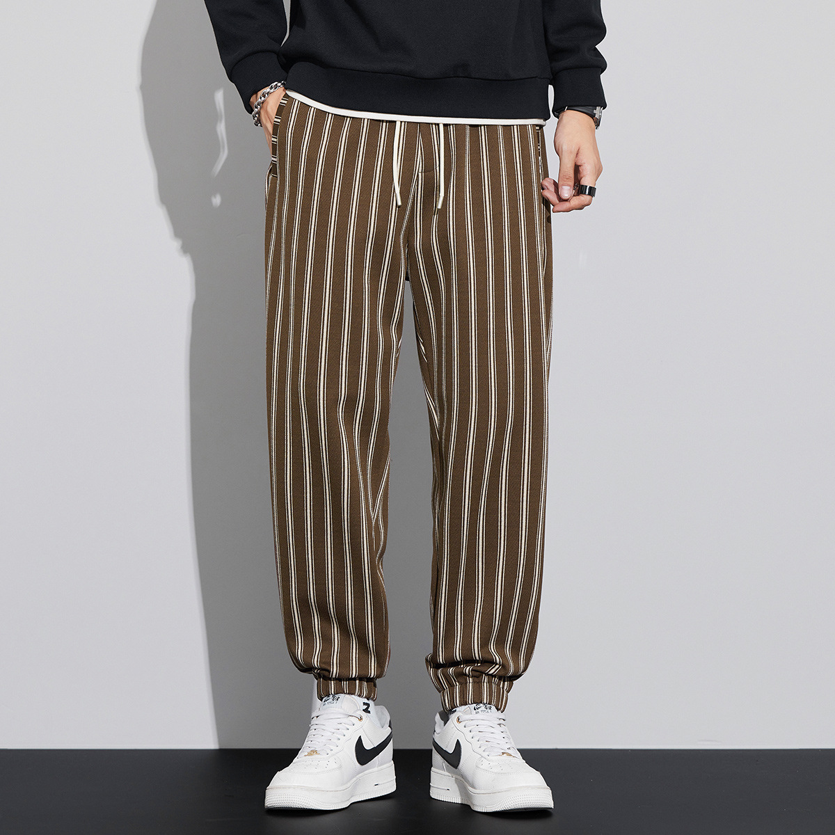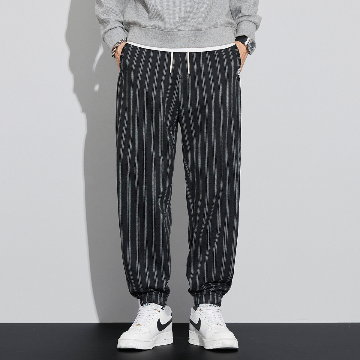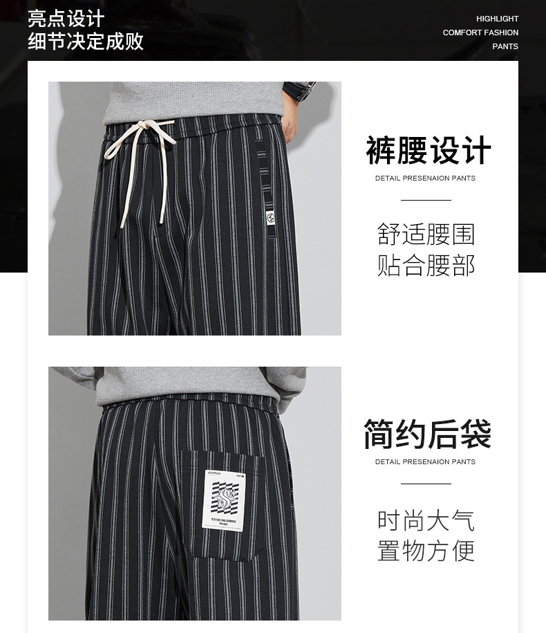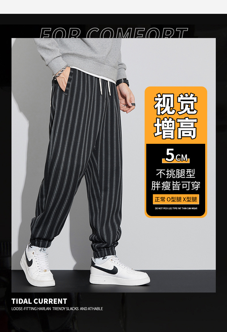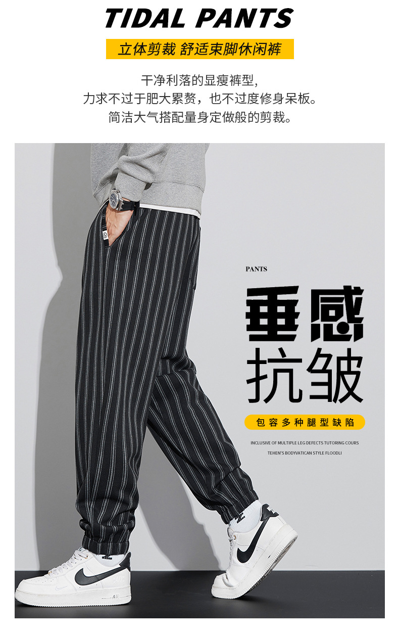 자카드 스트라이프 잘 생긴 패셔너블 할란 바지 남자 가을 및 겨울 새로운 도착 루즈 핏 느슨한 핏 주름 방지 캐주얼 바지스토어 가기