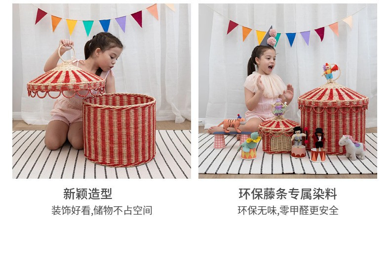 북유럽 등나무 장난감 보관 바구니 어린이 놀이 핸드백 바구니 짠 가정용 스낵 잡화 보관 상자스토어 가기