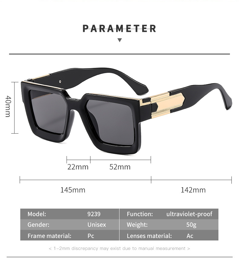 9239 크로스보더 새로운 고급 기능 한국어 버전 남성과 여성 슬림 선글라스 사각형 프레임 선글라스 UV400 여행용스토어 가기