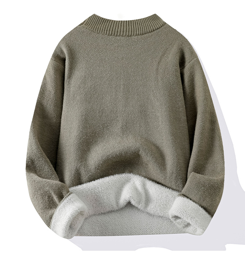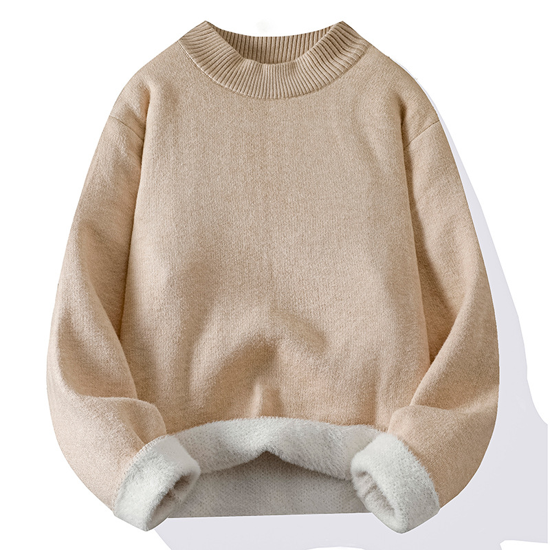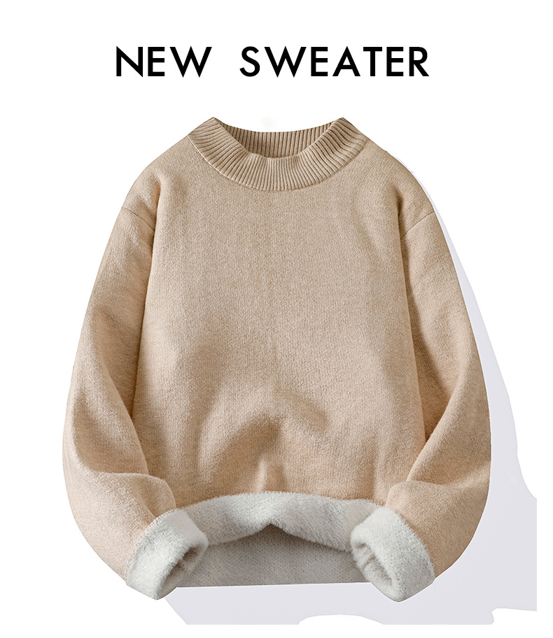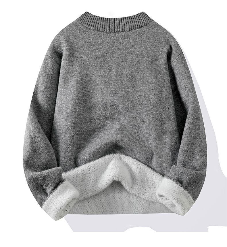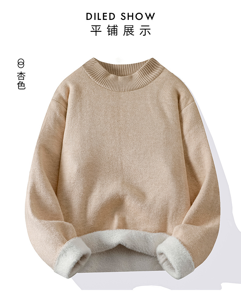 ACU 남성복 | 올인원 밍크 벨벳 라운드 넥 스웨터 남성용 2025 가을 겨울 단색 니트웨어 레트로 루즈핏 코트스토어 가기