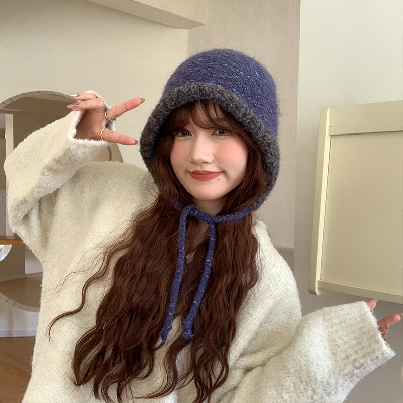 발라 클라 바 모자 여성의 가을과 겨울 회색 니트 양모 모자 한국 스타일 따뜻한 귀 보호 얼굴 작은 레이 펑 모자스토어 가기
