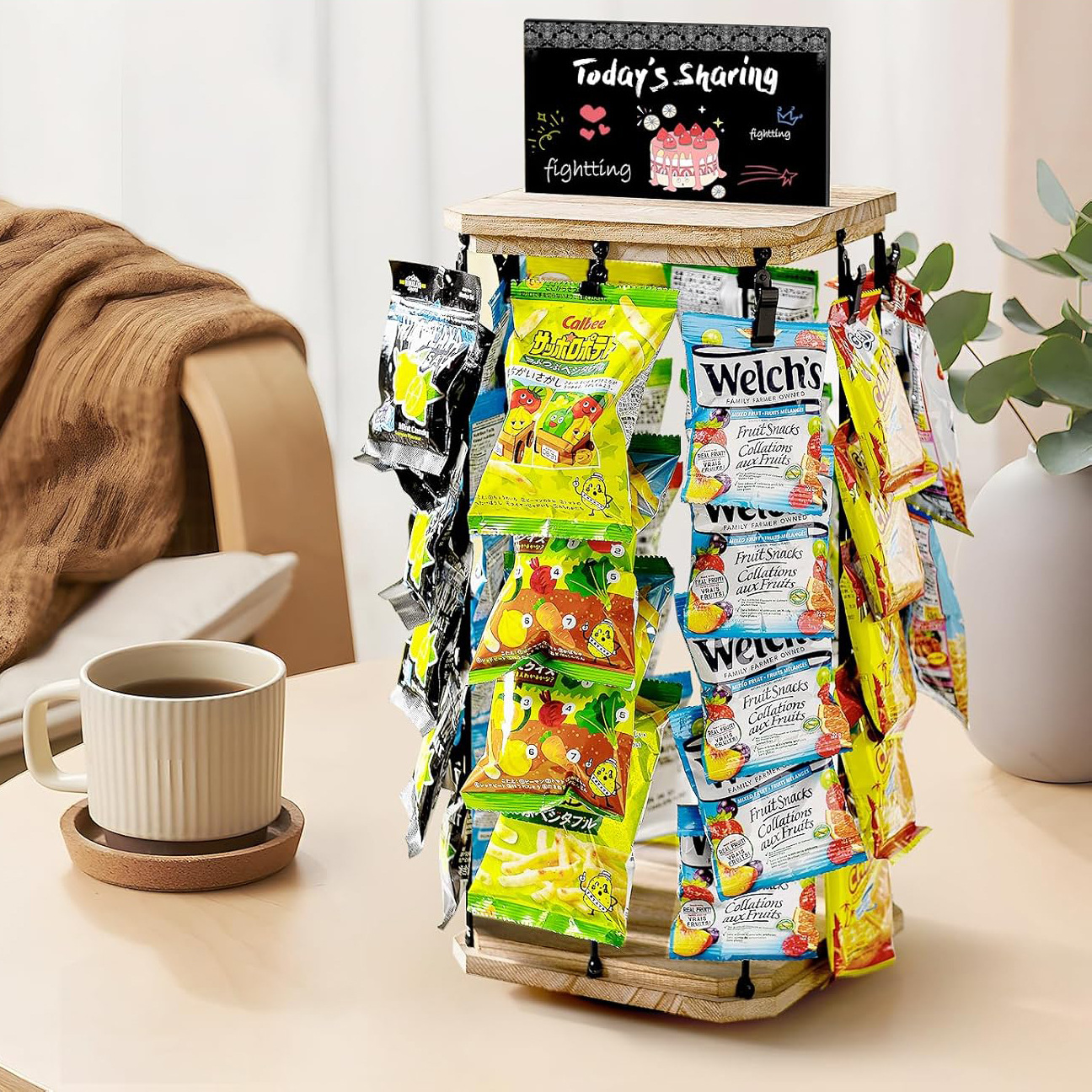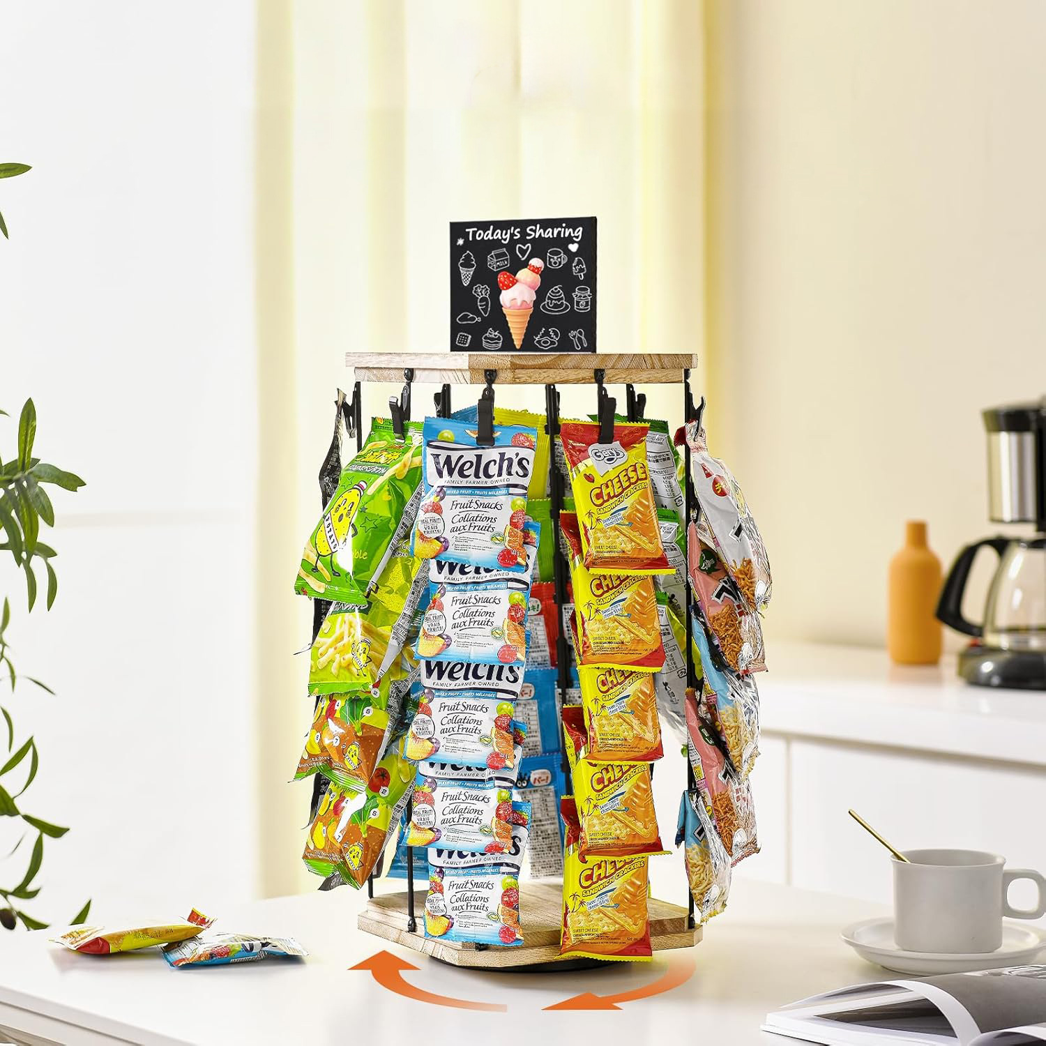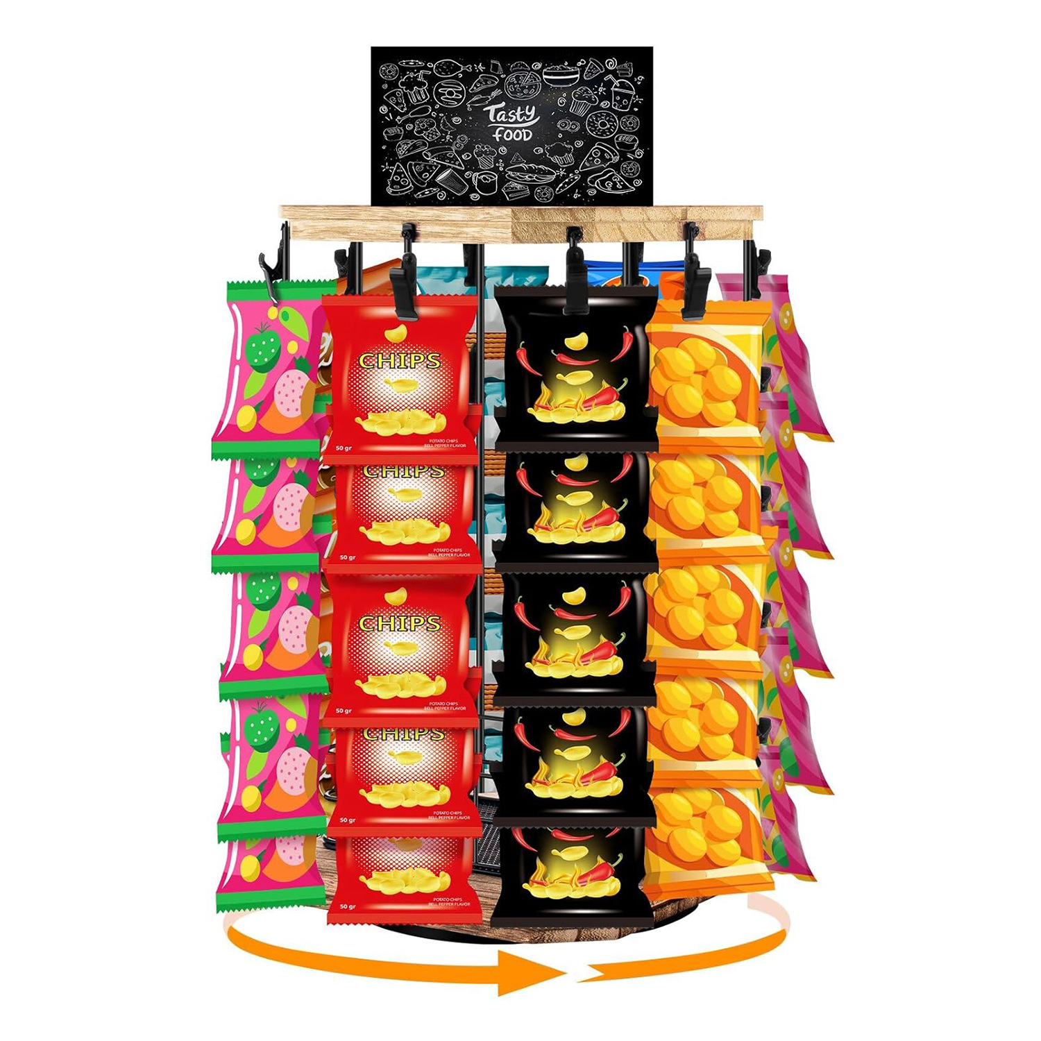 국경 간 나무 간식 저장 랙 상인 슈퍼 클립 교수형 감자 칩 캔디 소매 디스플레이 랙 회전 가능한 저장 랙