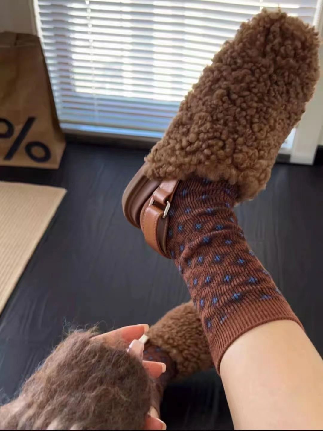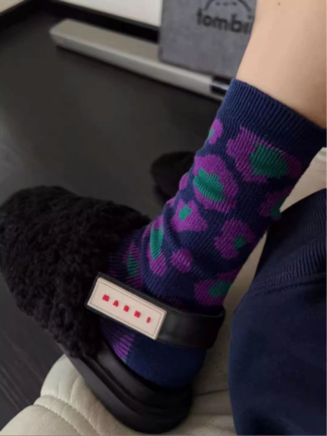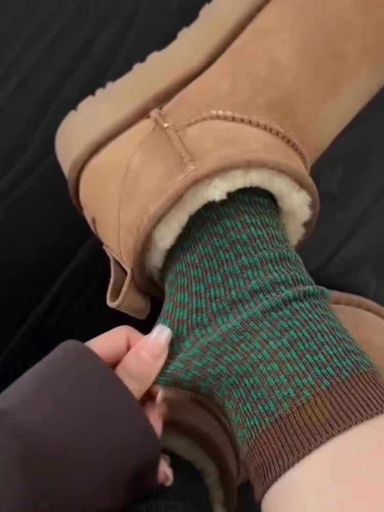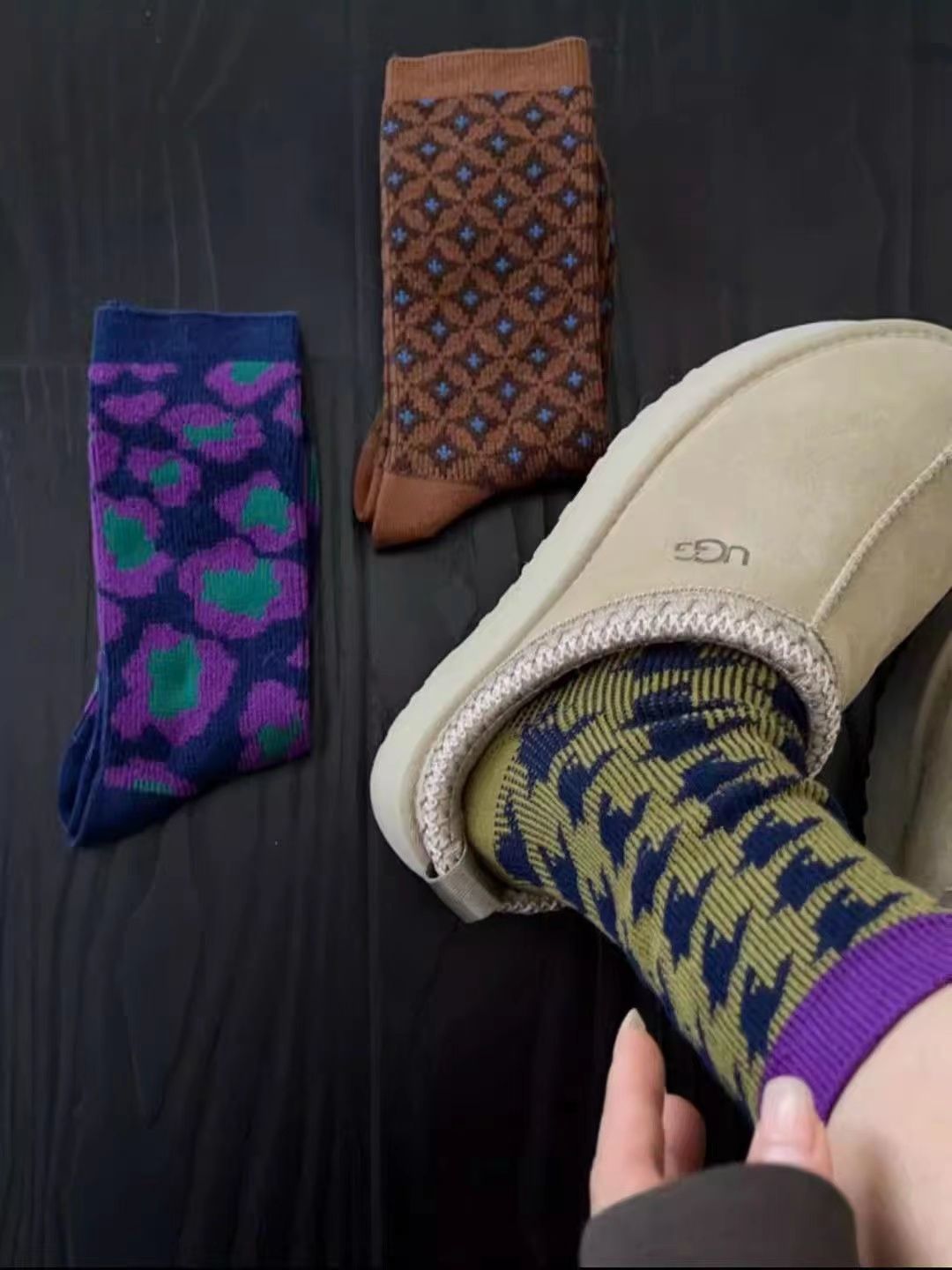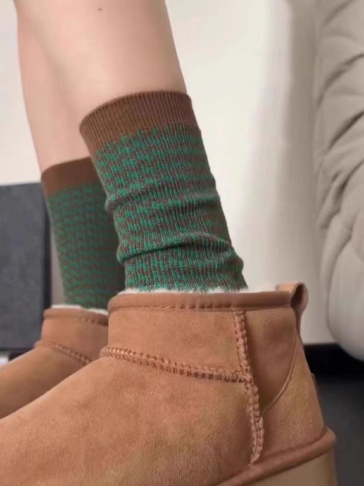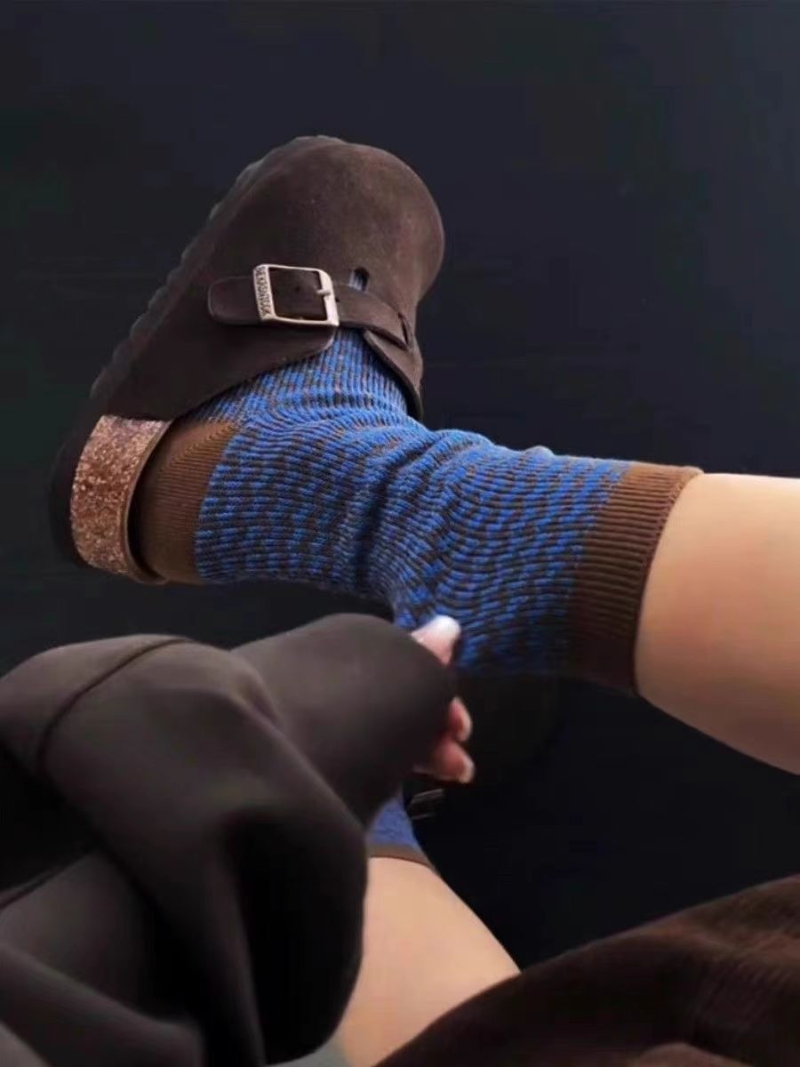 빈티지 예술적 기하학적 Houndstooth 양말 여성 미드 양말 Maillard Joker 듀얼 웨이 틈새 디자인 미드 양말