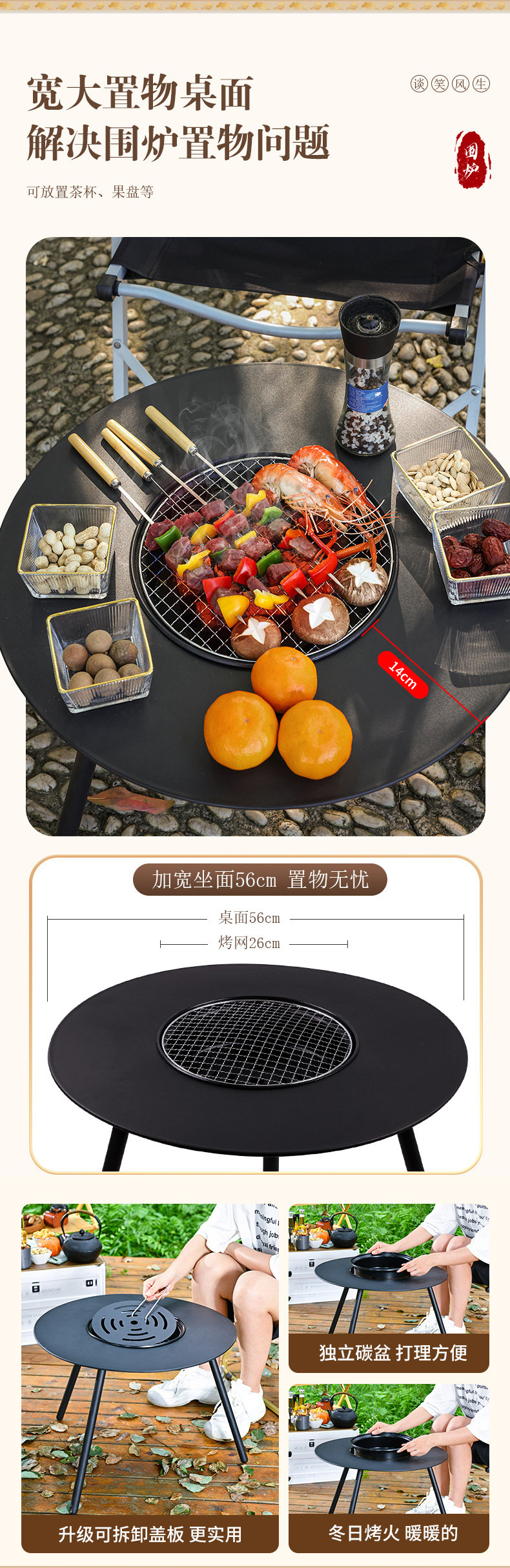 차를 끓이고 불을 박시는 난로 세트, 가정용 실내 바베큐 차 세트, 숯불 난로, 바베큐 테이블, 난로 테이블스토어 가기