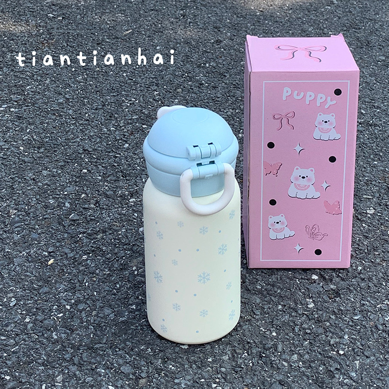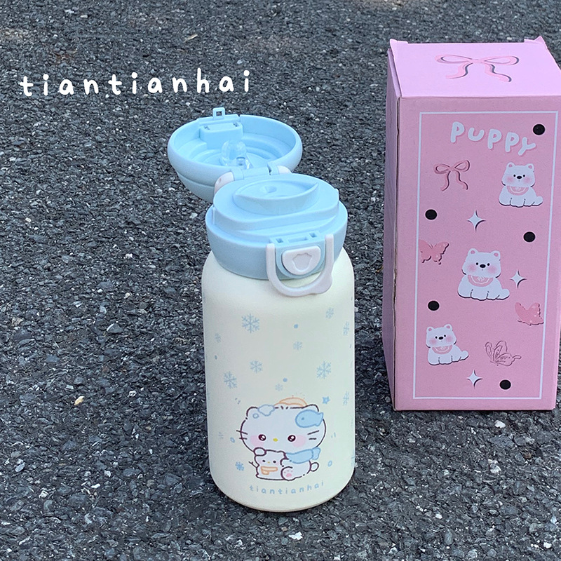두 배 음료 머그잔 대용량 소녀의 새로운 2024 스테인레스 스틸 밀짚 휴대용 고가의 학생 귀여운 물 컵스토어 가기