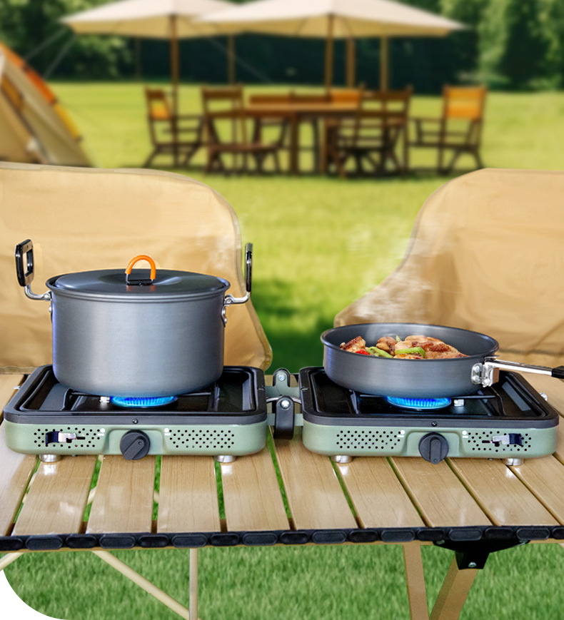 캠핑 스토브 야외 피크닉 카드 스토브 접이식 휴대용 더블 헤드 가스 스토브 피크닉 핫 팟 방풍 치열한 스토브 스토브스토어 가기