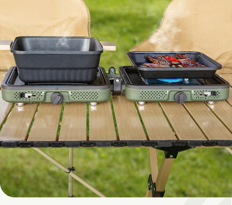 캠핑 스토브 야외 피크닉 카드 스토브 접이식 휴대용 더블 헤드 가스 스토브 피크닉 핫 팟 방풍 치열한 스토브 스토브
