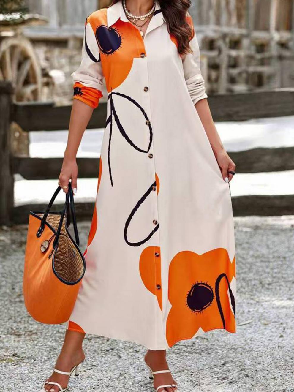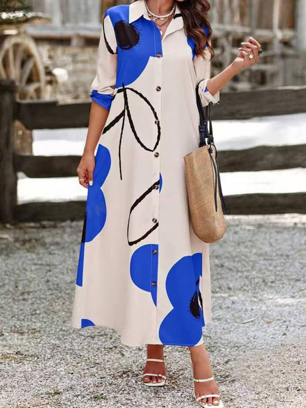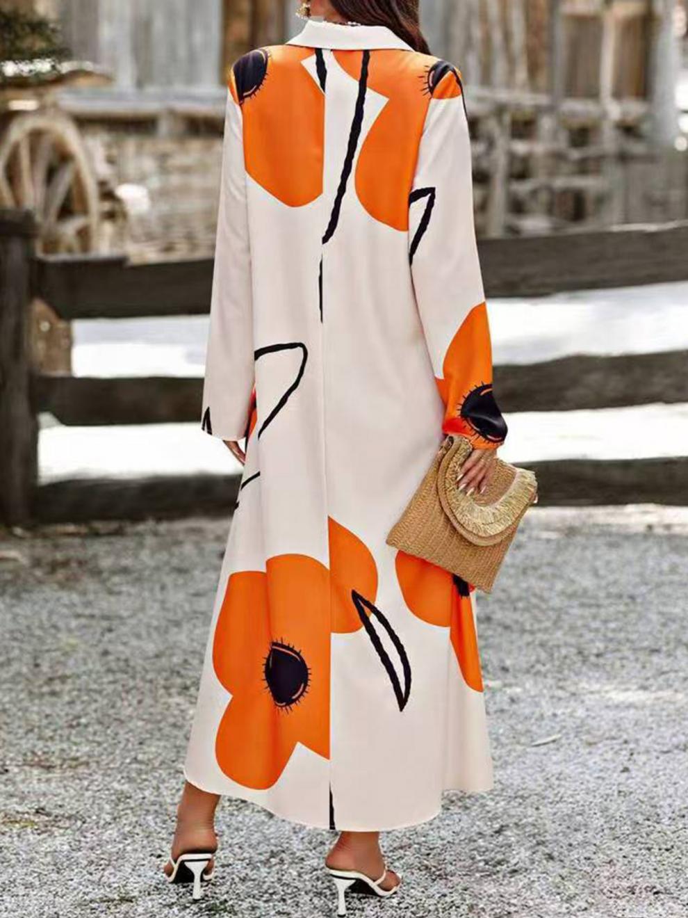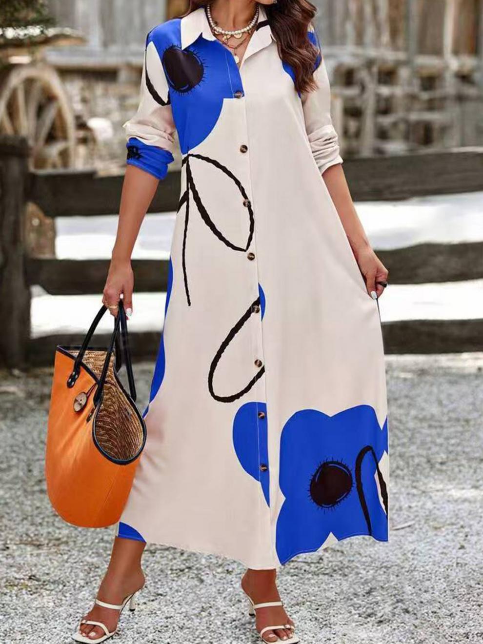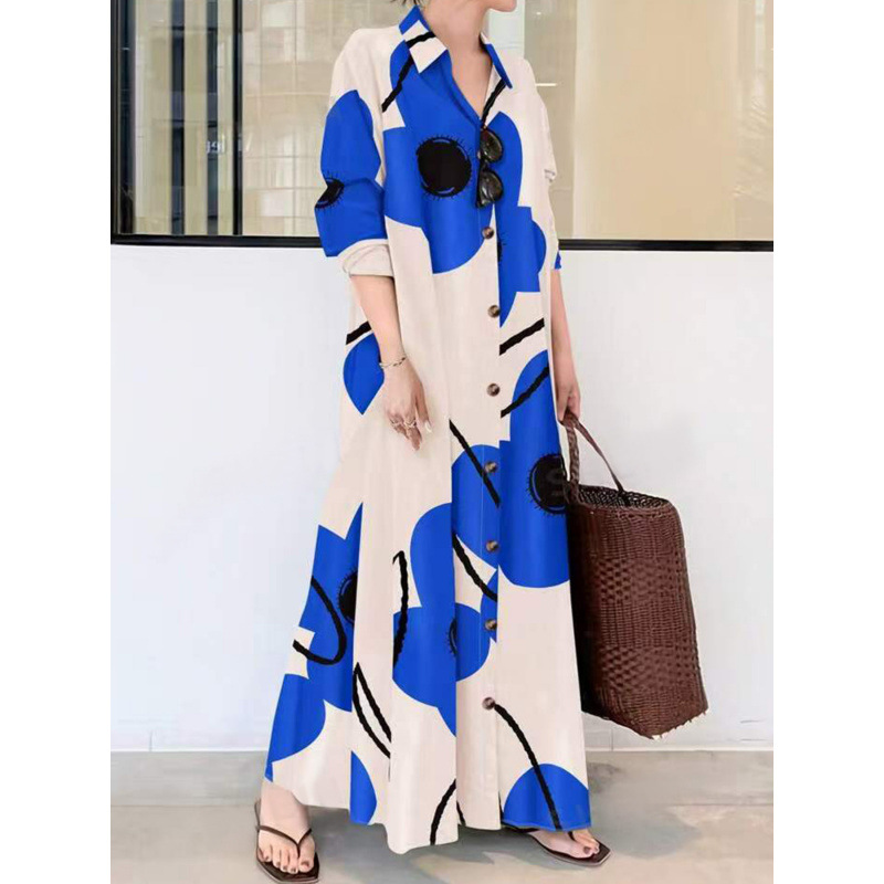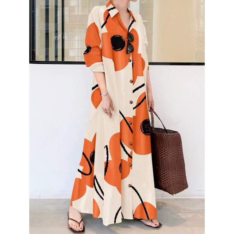 유럽과 미국의 국경 폭발 2024 가을 새로운 긴 소매 인쇄 느슨한 우아한 셔츠 원피스 새로운스토어 가기
