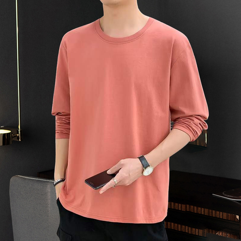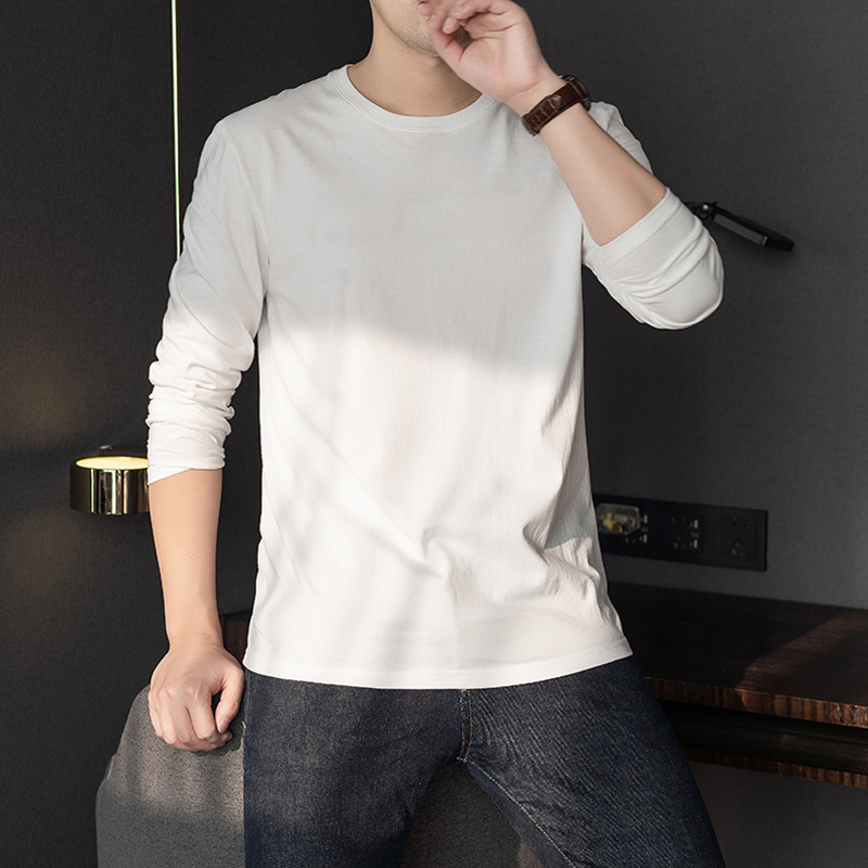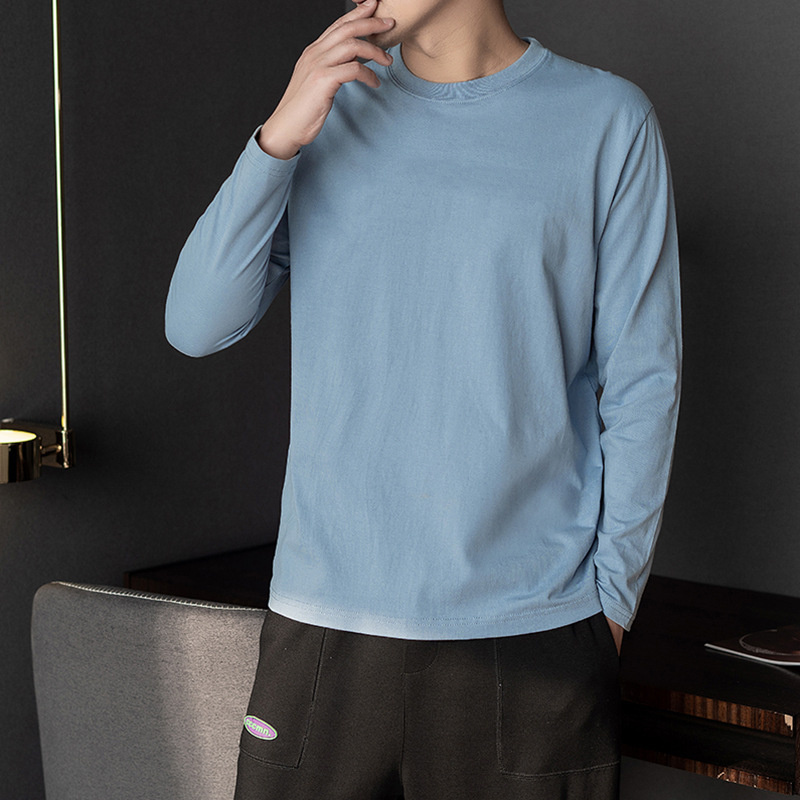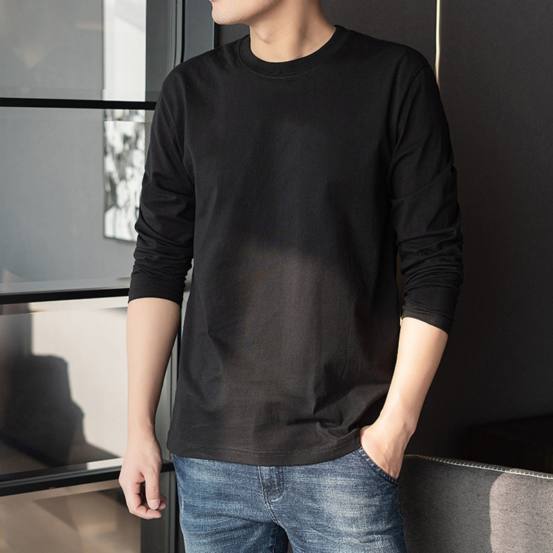 순면 긴팔 티셔츠 남성용 봄과 가을 얇은 둥근 목 통기성 가을 옷 내베이스 셔츠 착용 가능한 바디 블러드 스웨터