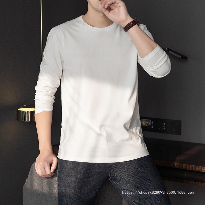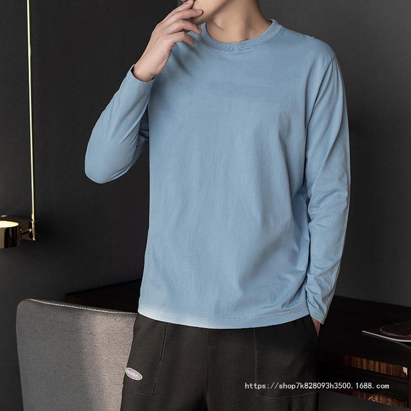 순면 긴팔 티셔츠 남성용 봄과 가을 얇은 둥근 목 통기성 가을 옷 내베이스 셔츠 착용 가능한 바디 블러드 스웨터스토어 가기