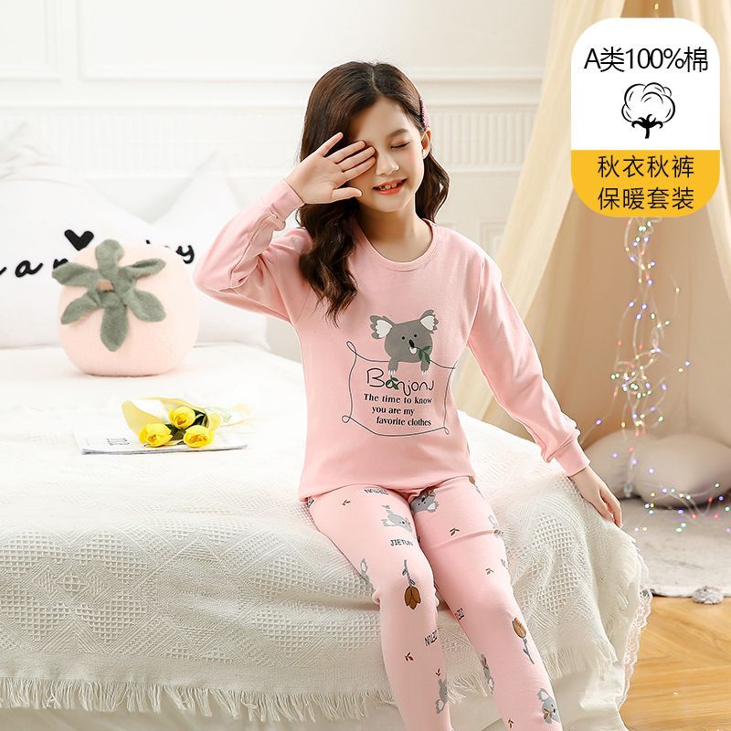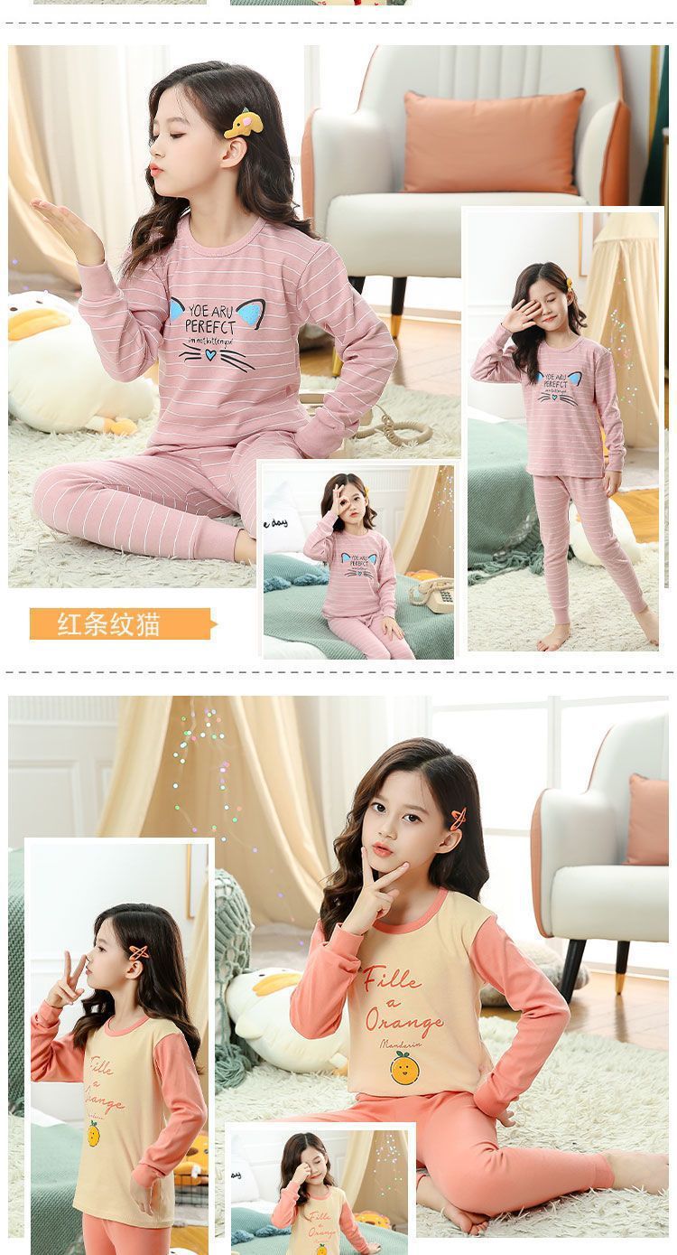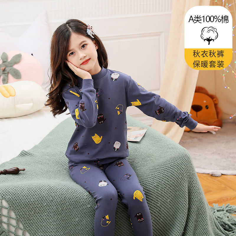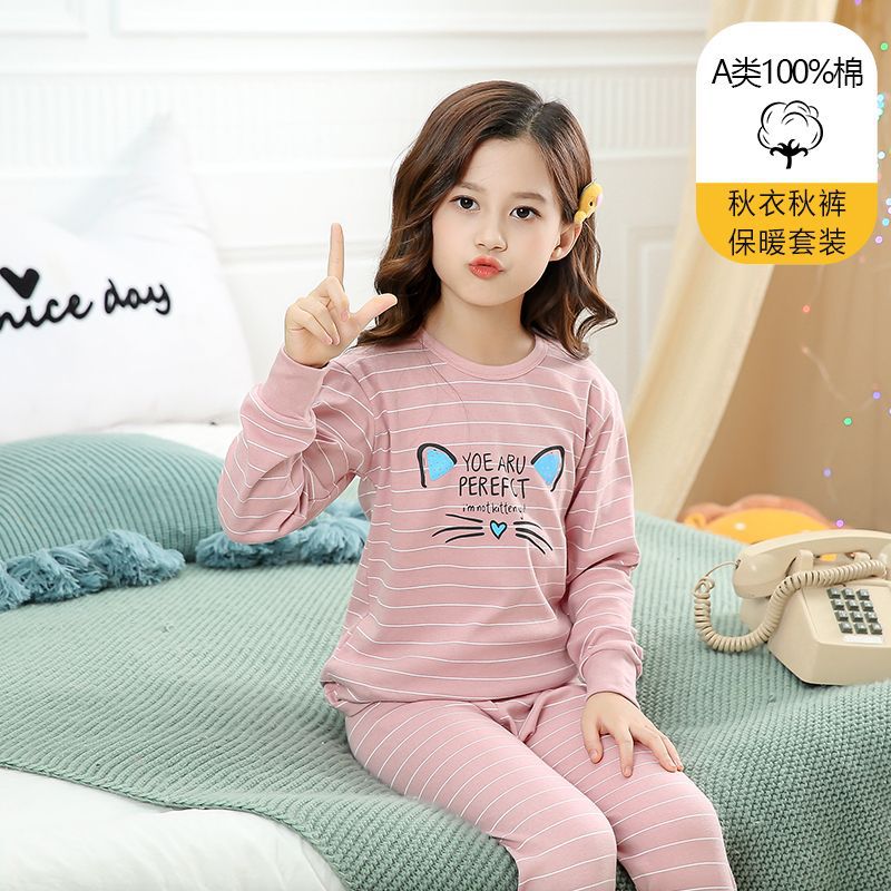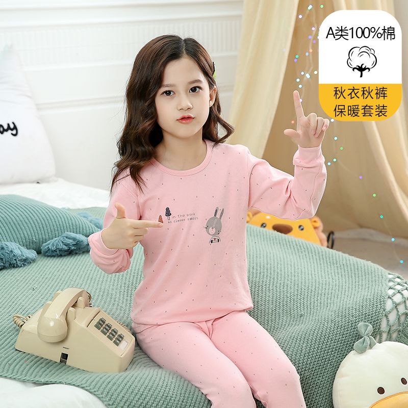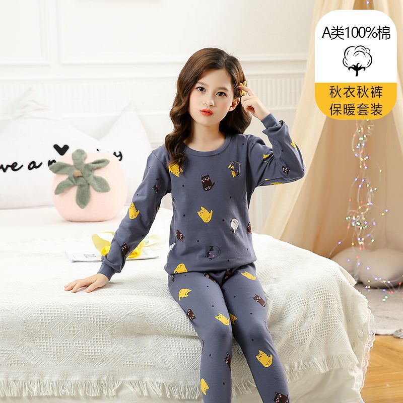 소녀들의 가을 옷과 바지 면화 소녀 올면 열 속옷 세트 잠옷 중 · 대형 어린이를위한 면화 스웨터스토어 가기