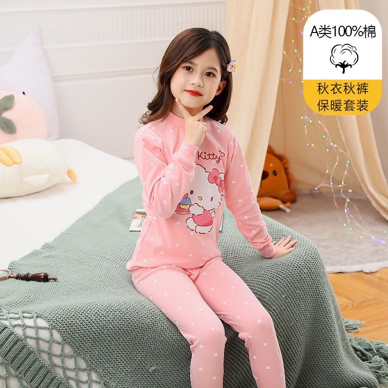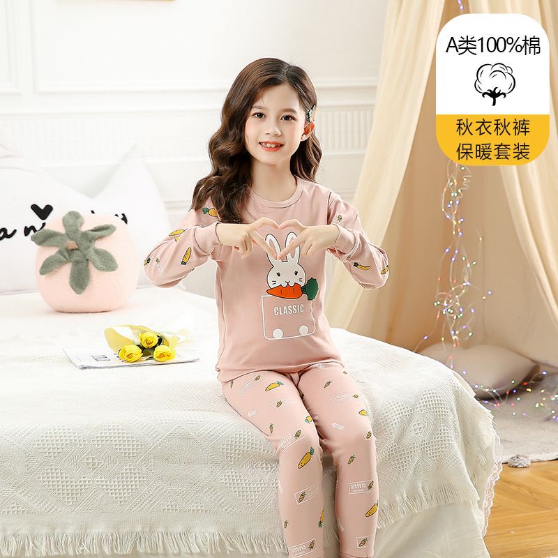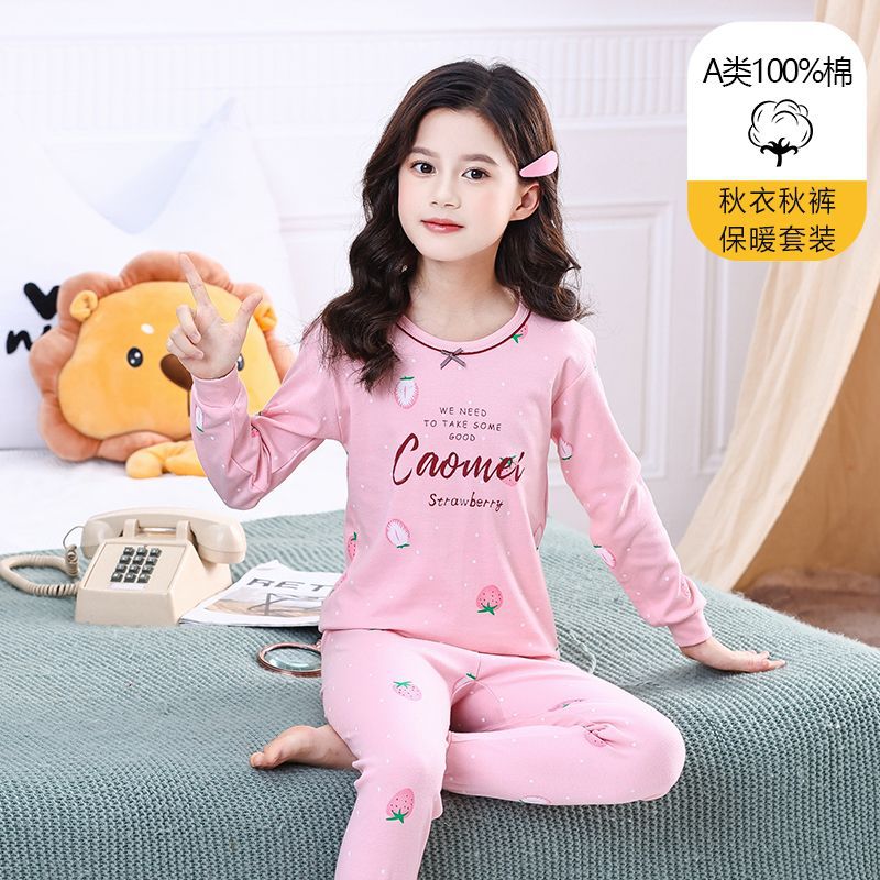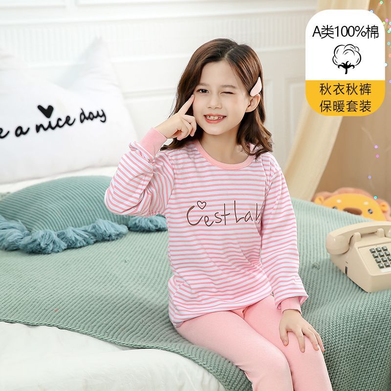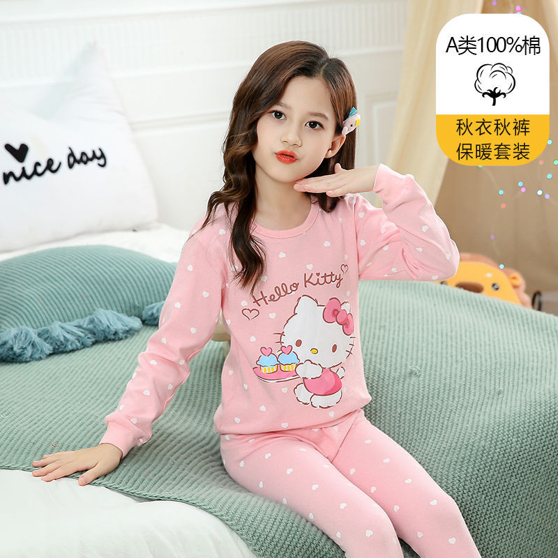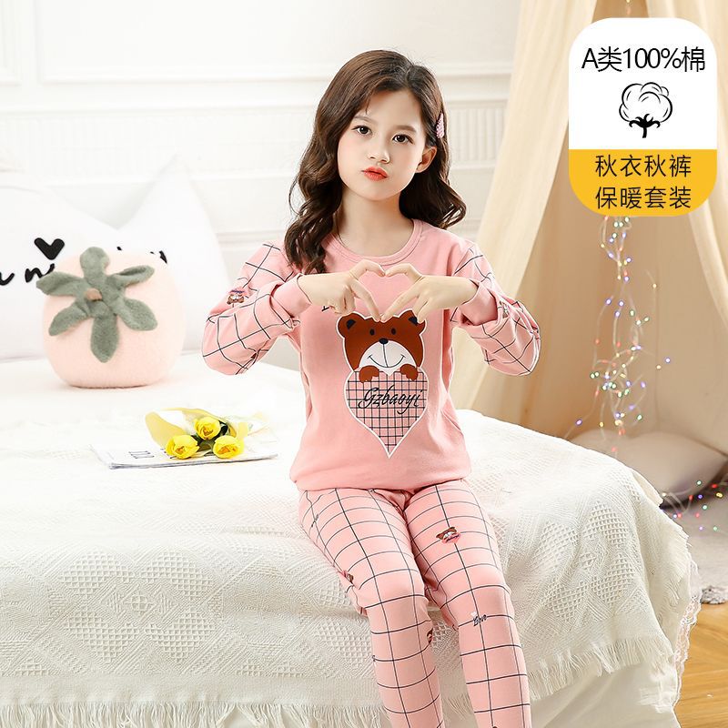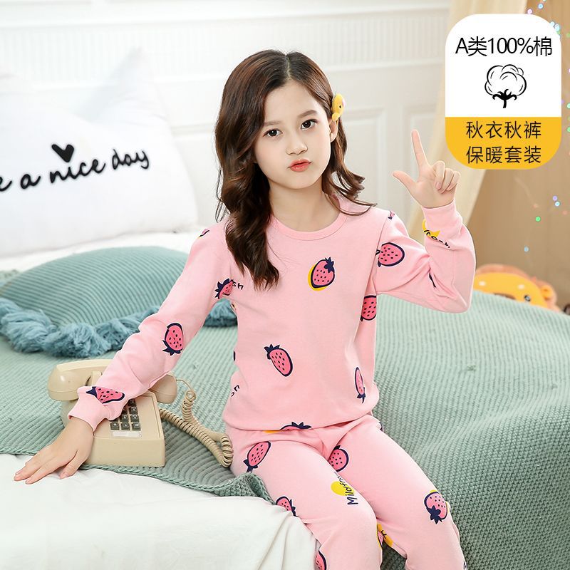소녀들의 가을 옷과 바지 면화 소녀 올면 열 속옷 세트 잠옷 중 · 대형 어린이를위한 면화 스웨터스토어 가기