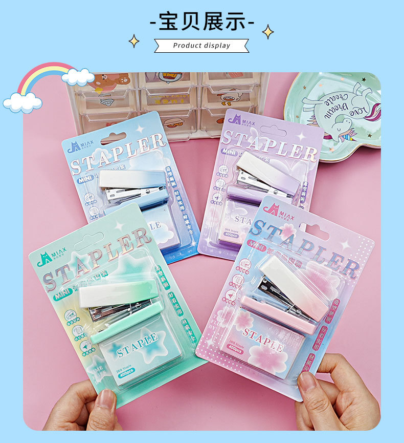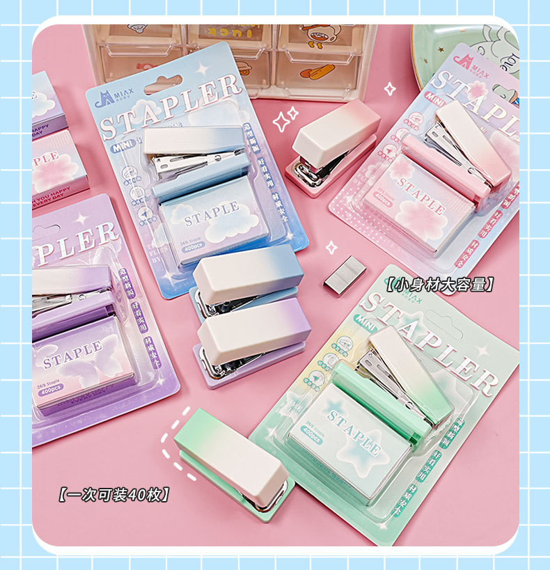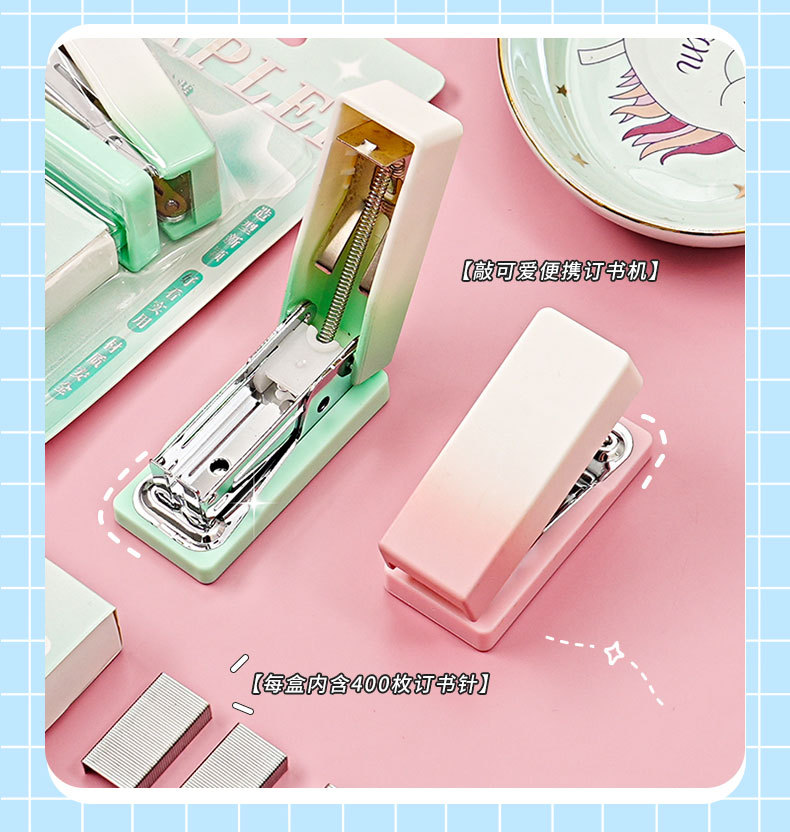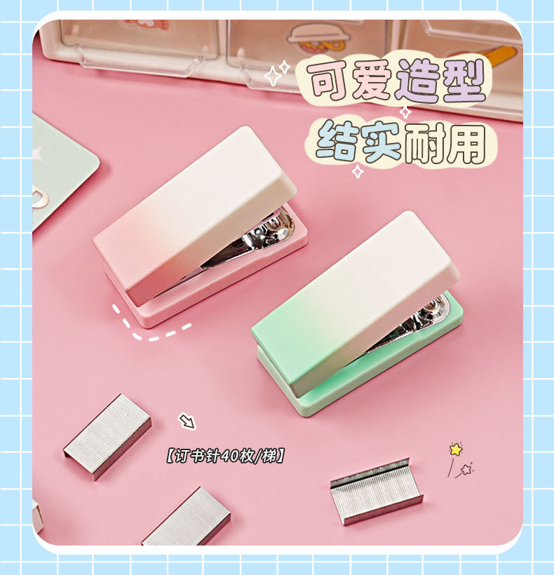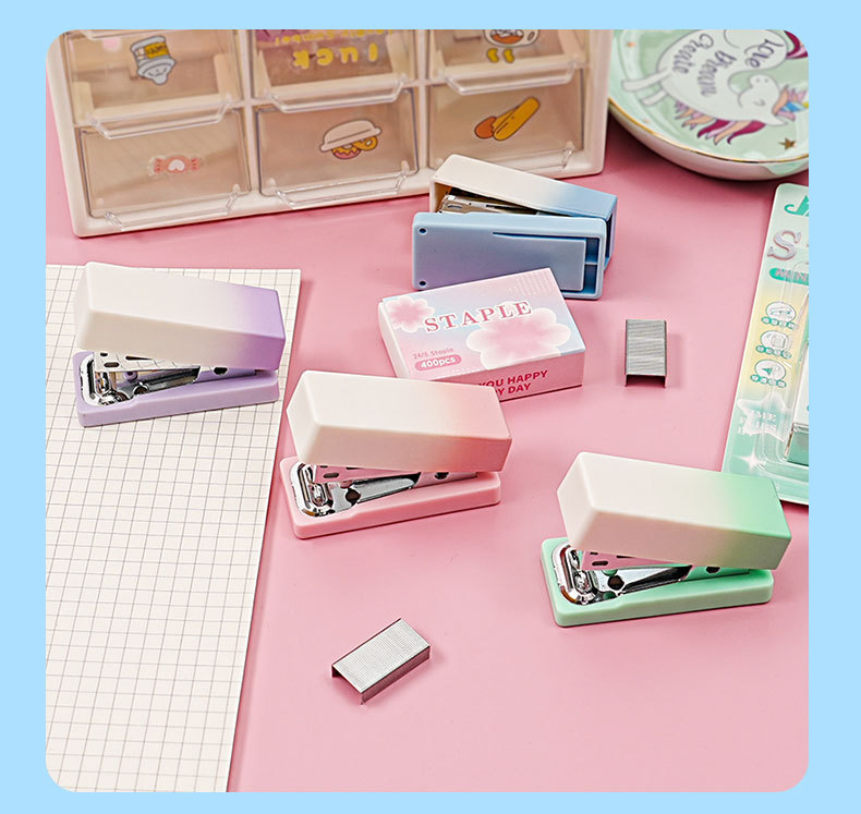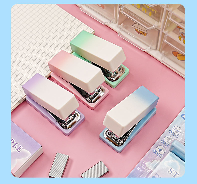 그라디언트 마카롱 컬러 스테이플러 미니 소형 노동 절약 스테이플러 학생 사무실 휴대용 바인딩 용품스토어 가기