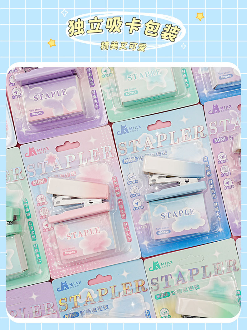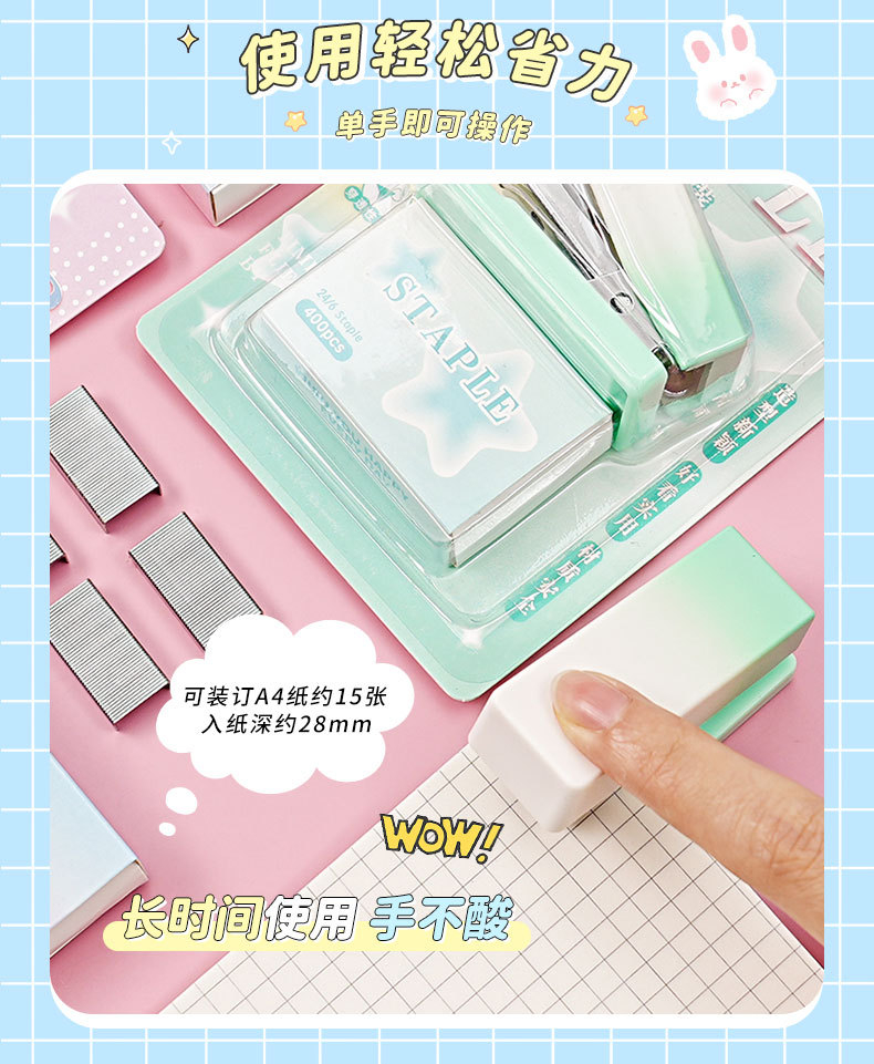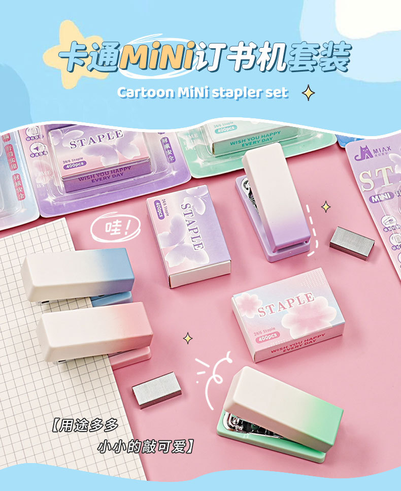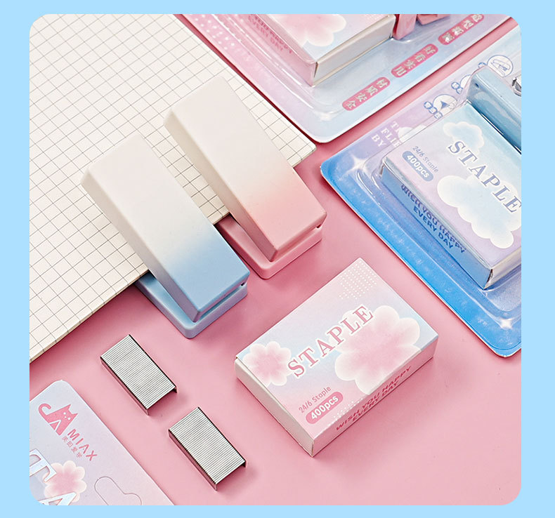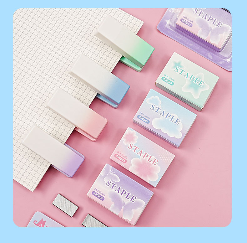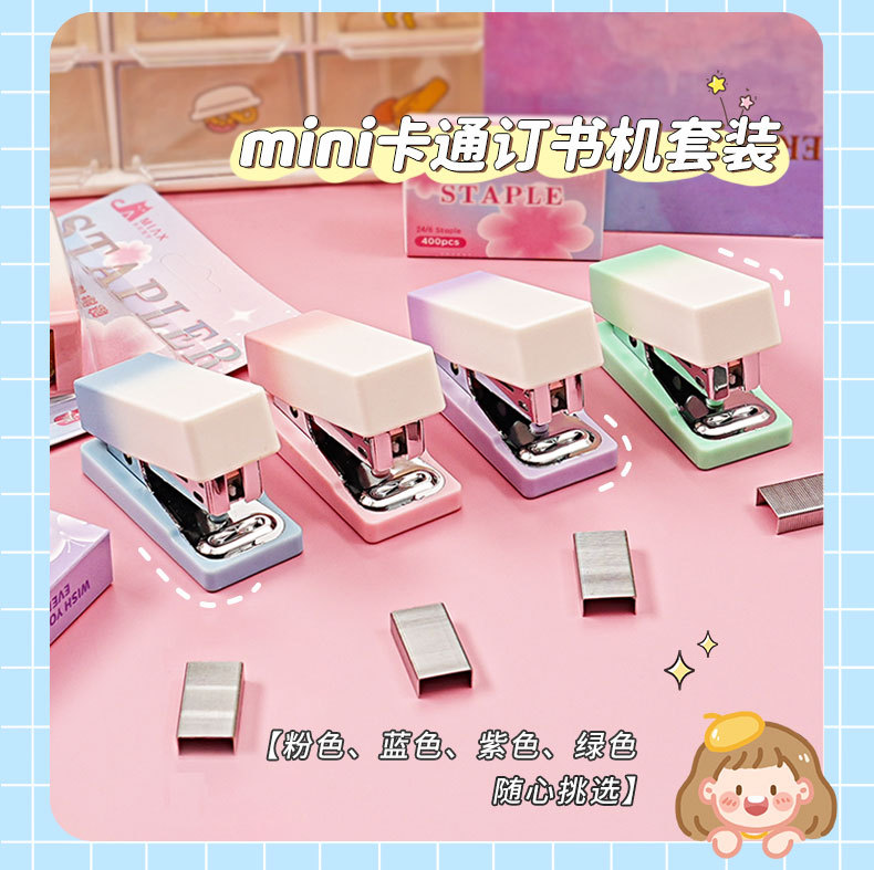 그라디언트 마카롱 컬러 스테이플러 미니 소형 노동 절약 스테이플러 학생 사무실 휴대용 바인딩 용품스토어 가기