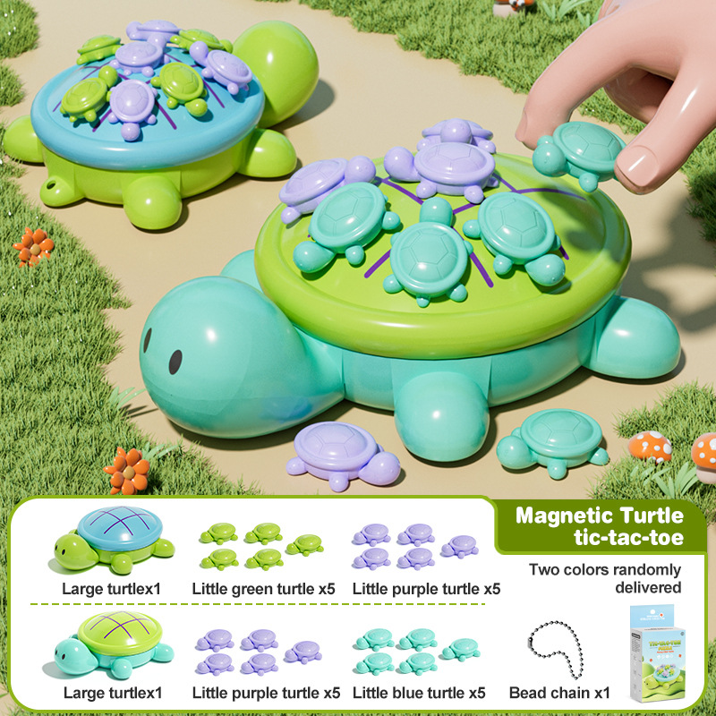 • 영어 색상 상자 [무료 매달린 체인 + 작은 거북이 10마리] 자기 틱택토 퍼즐 거북이 [2가지 색상이 무작위로 배포됨]