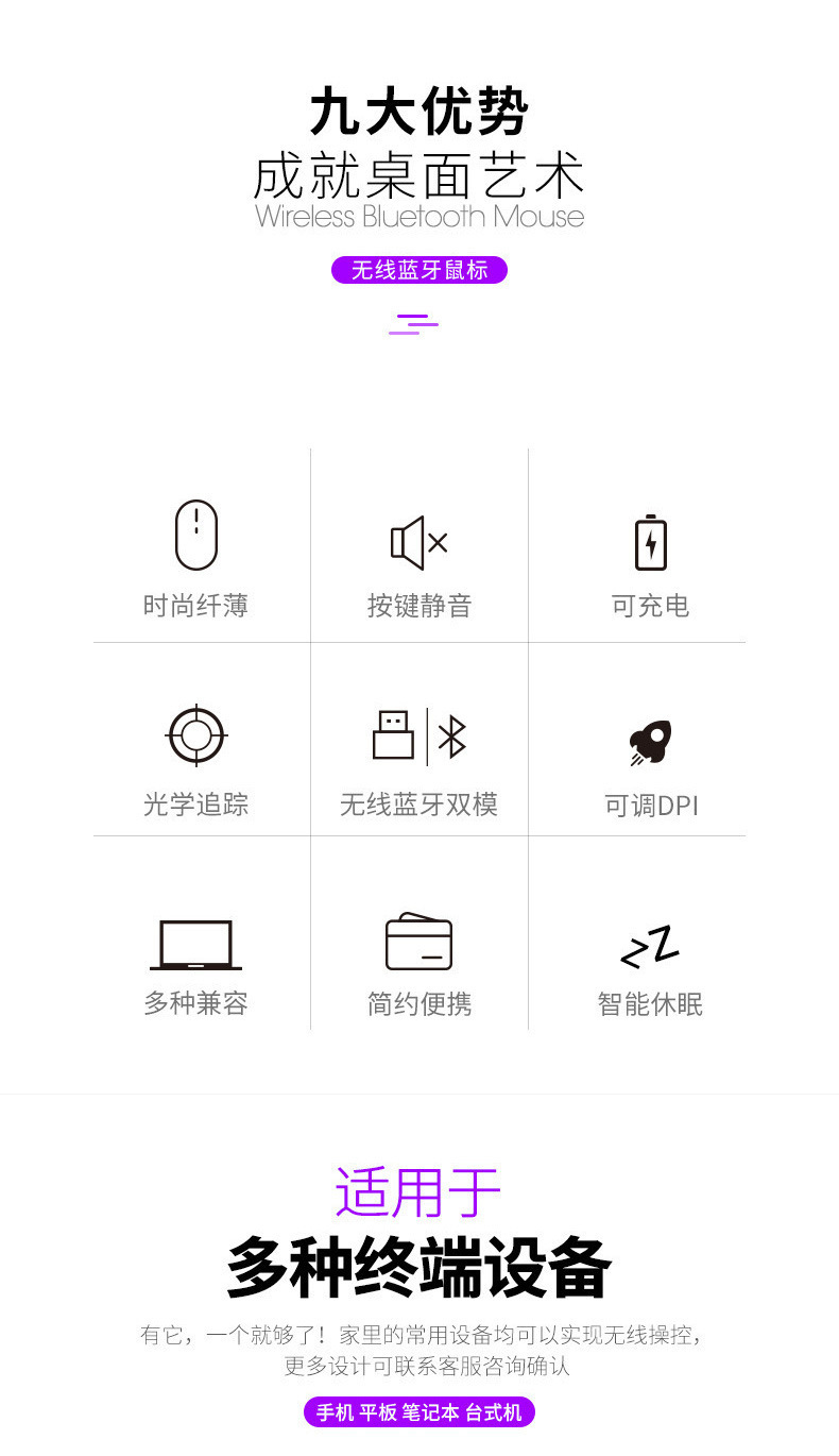 • Bluetooth 5.2+2.4G 듀얼 템플릿 - 무음 충전 버전 - 퓨어 화이트