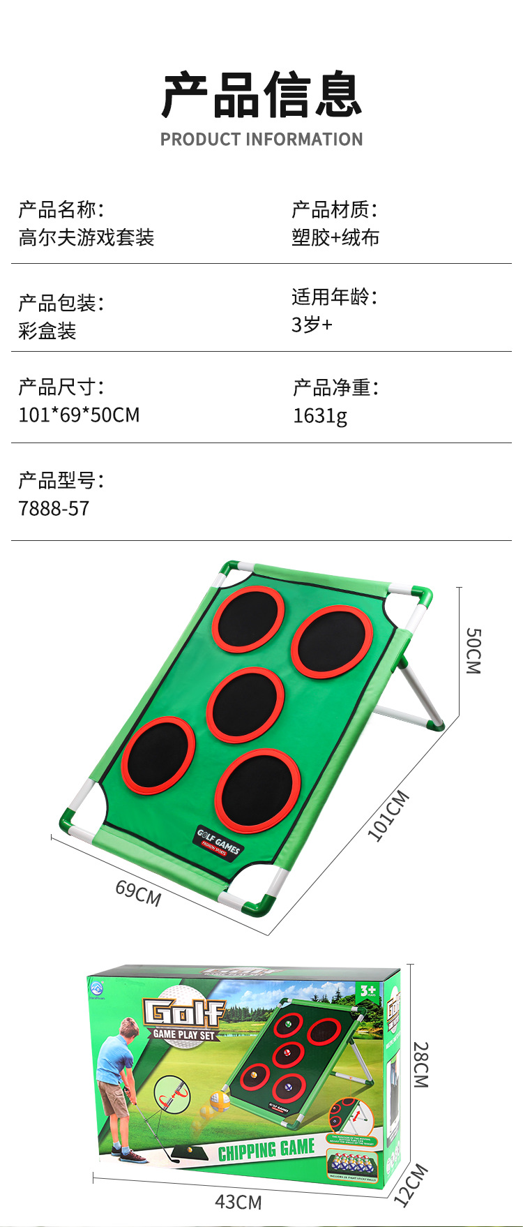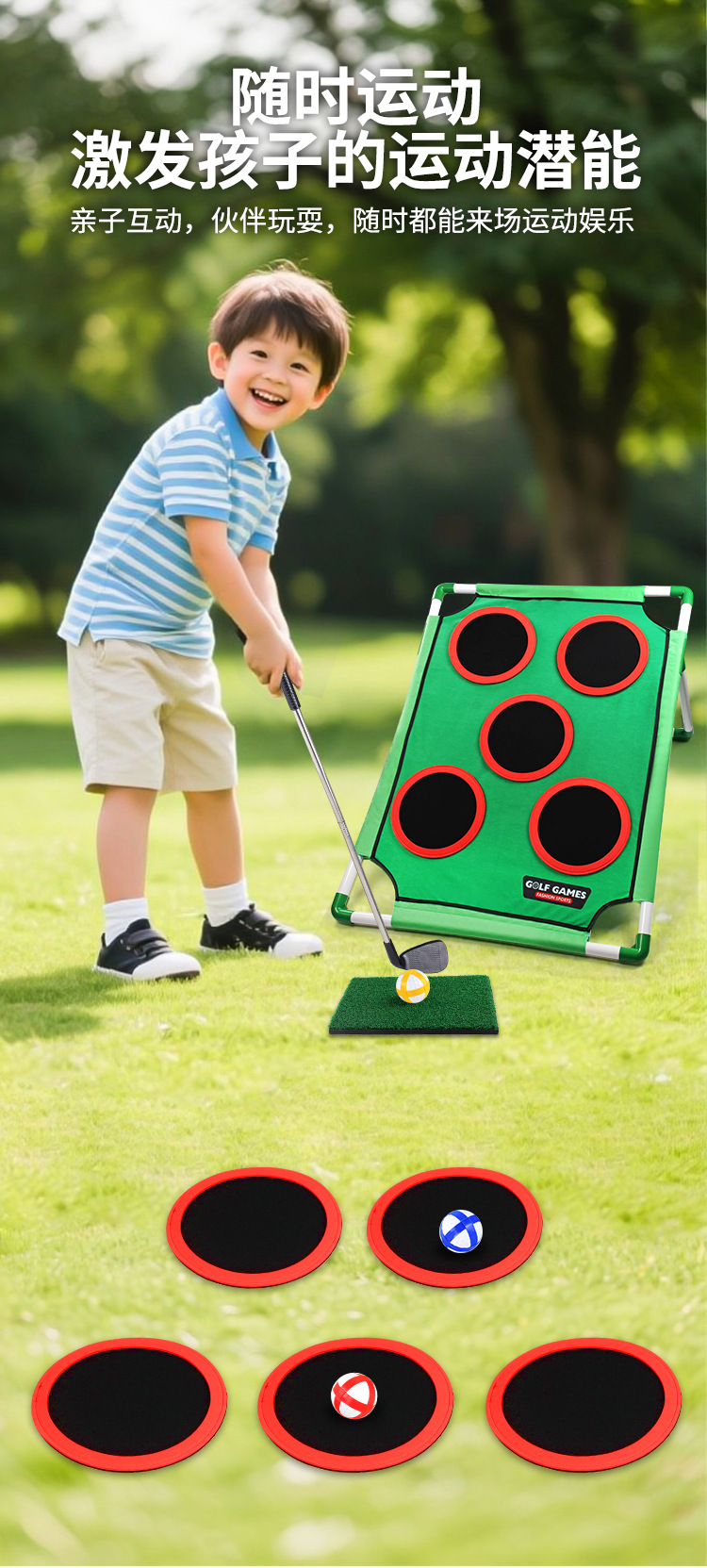 跨境儿童运动玩具魔术贴高尔夫套装亲子互动室内外体育三合一游戏