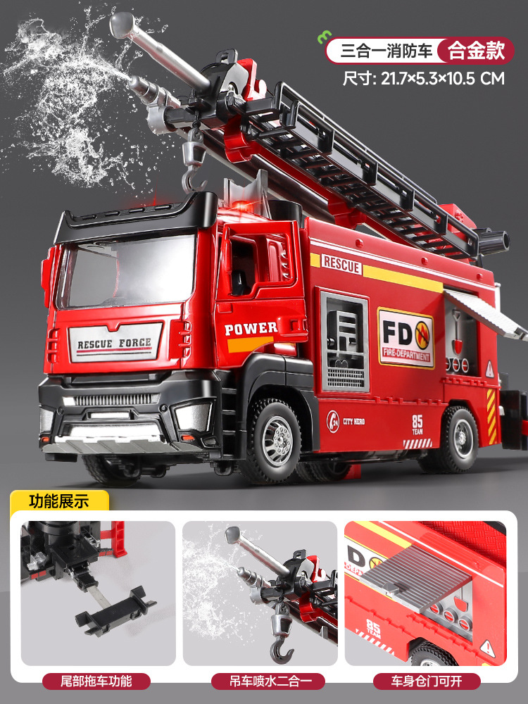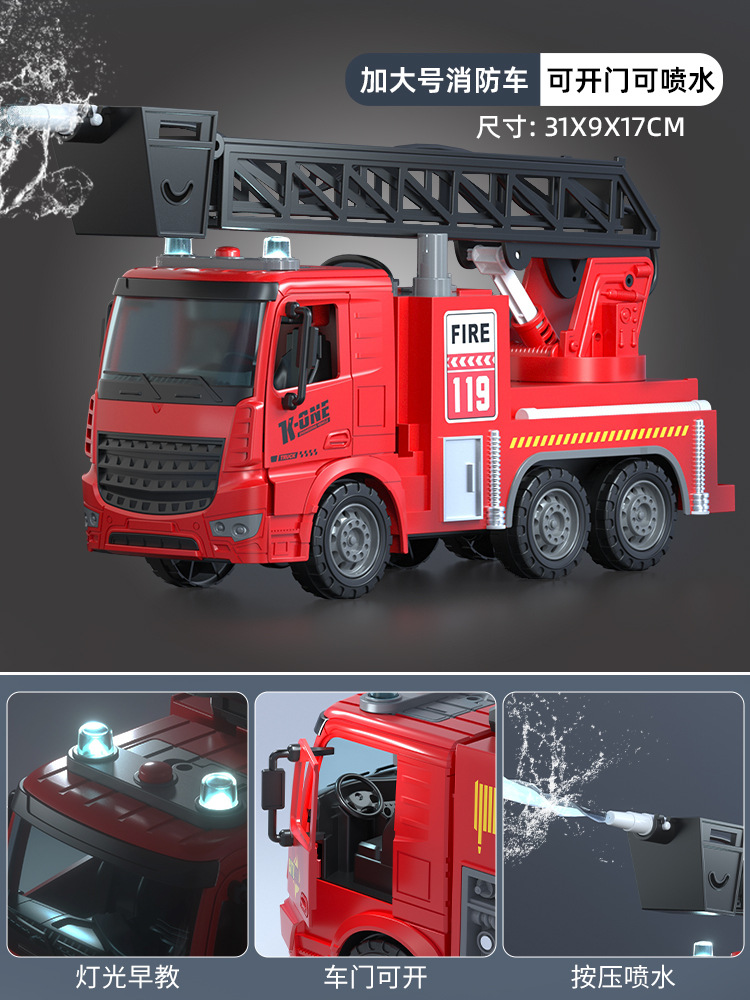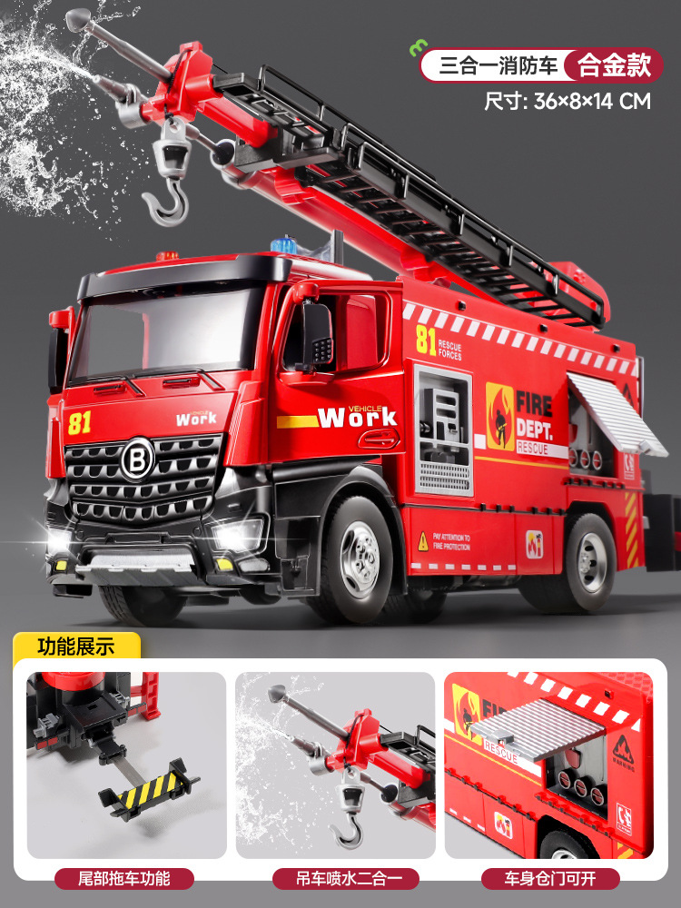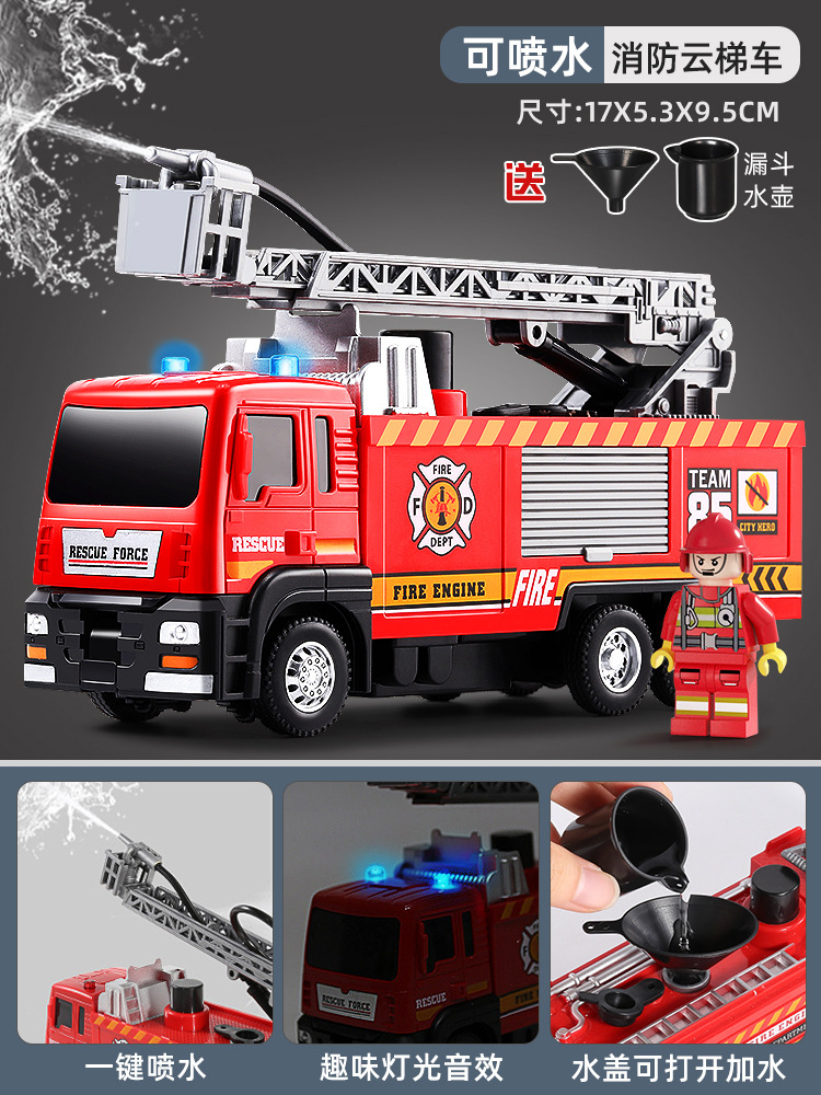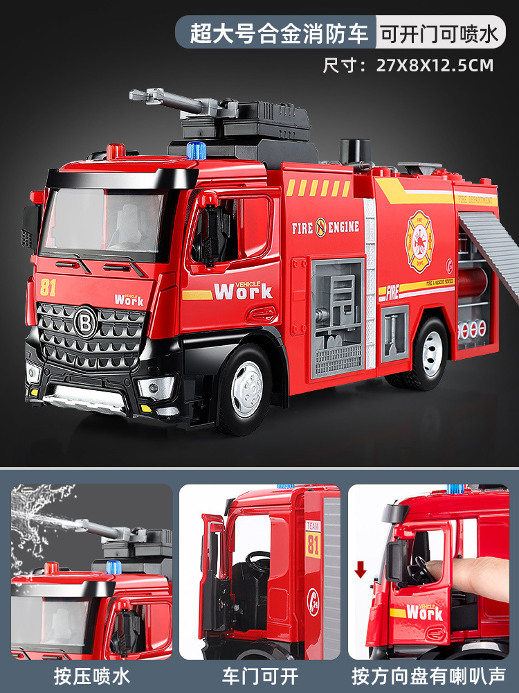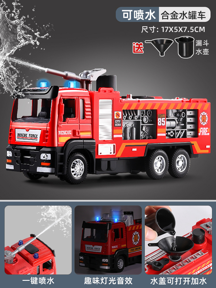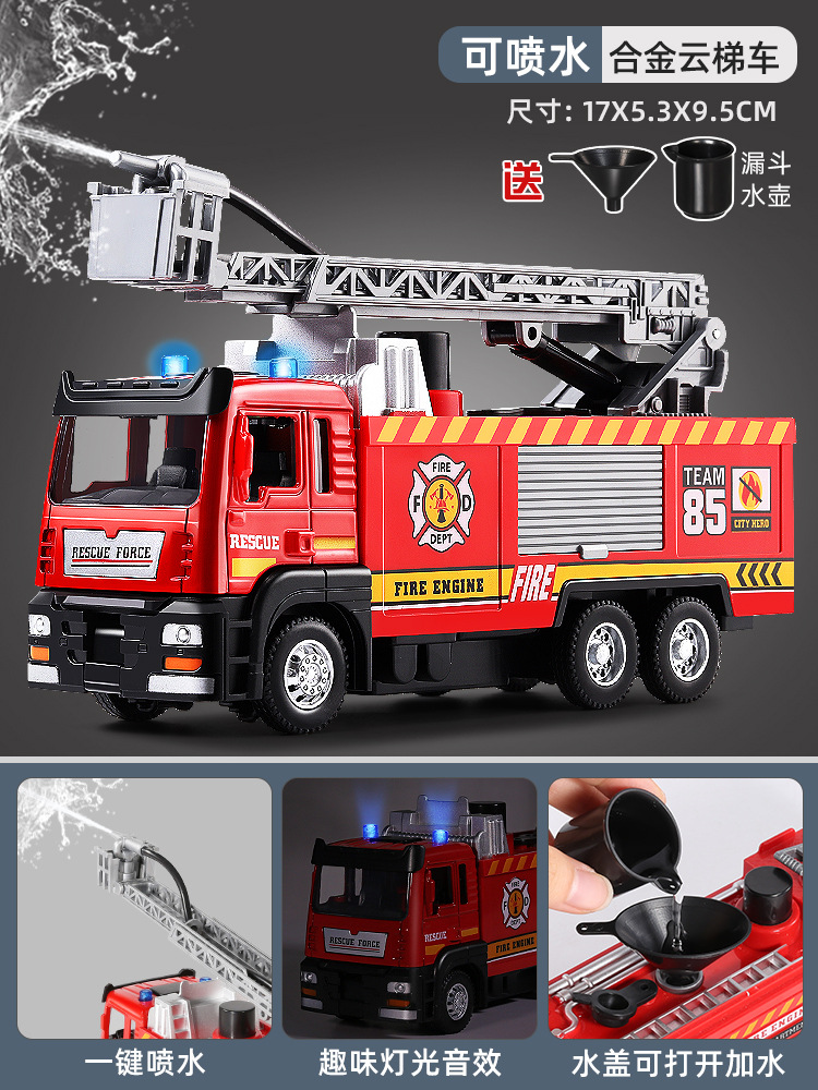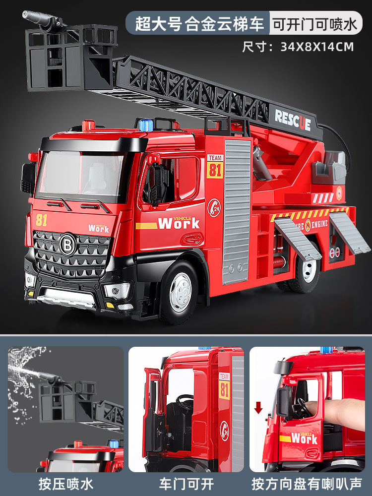 슈퍼 대형 어린이 소방차 장난감 합금 물 스프레이 사다리 트럭 스프링클러 시뮬레이션 자동차 모델 소년스토어 가기