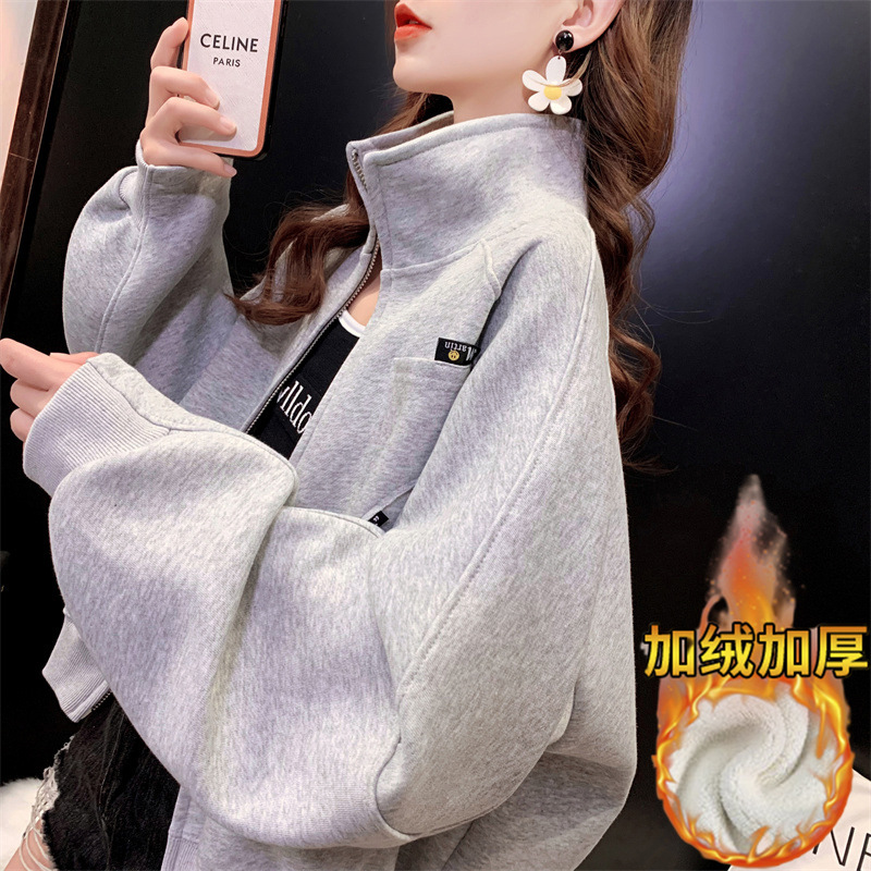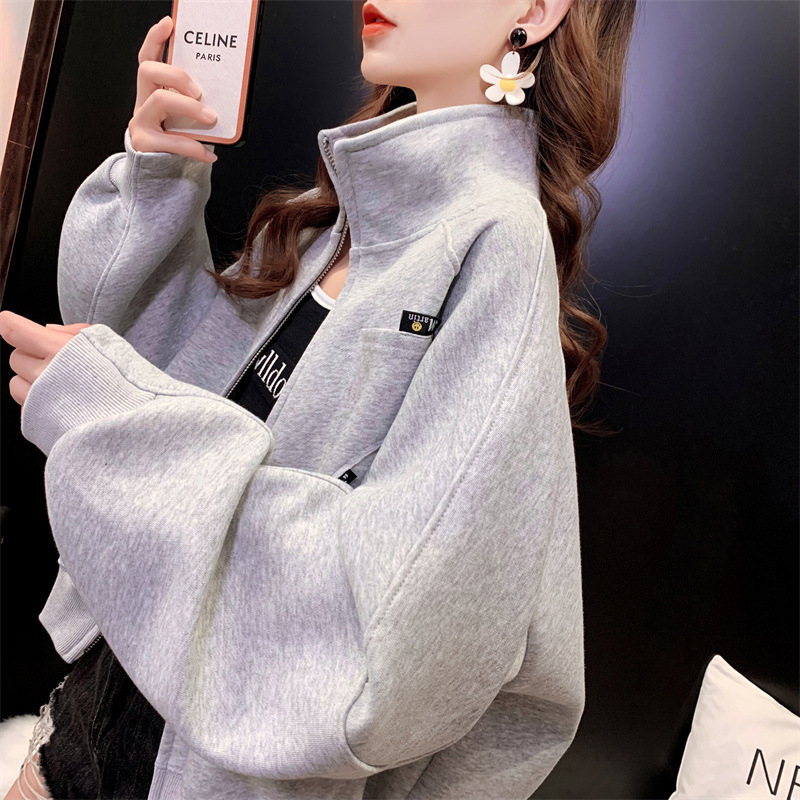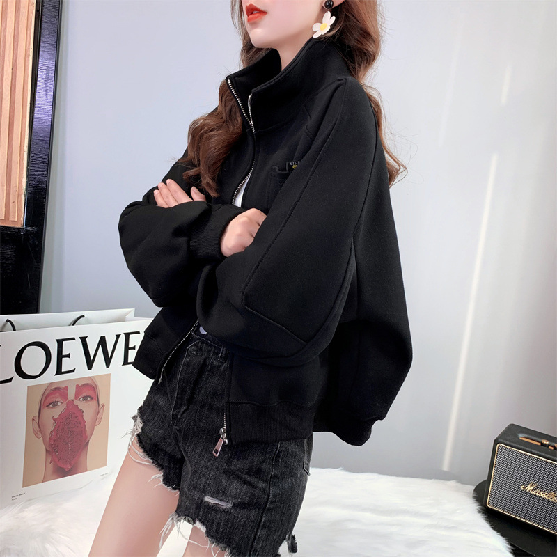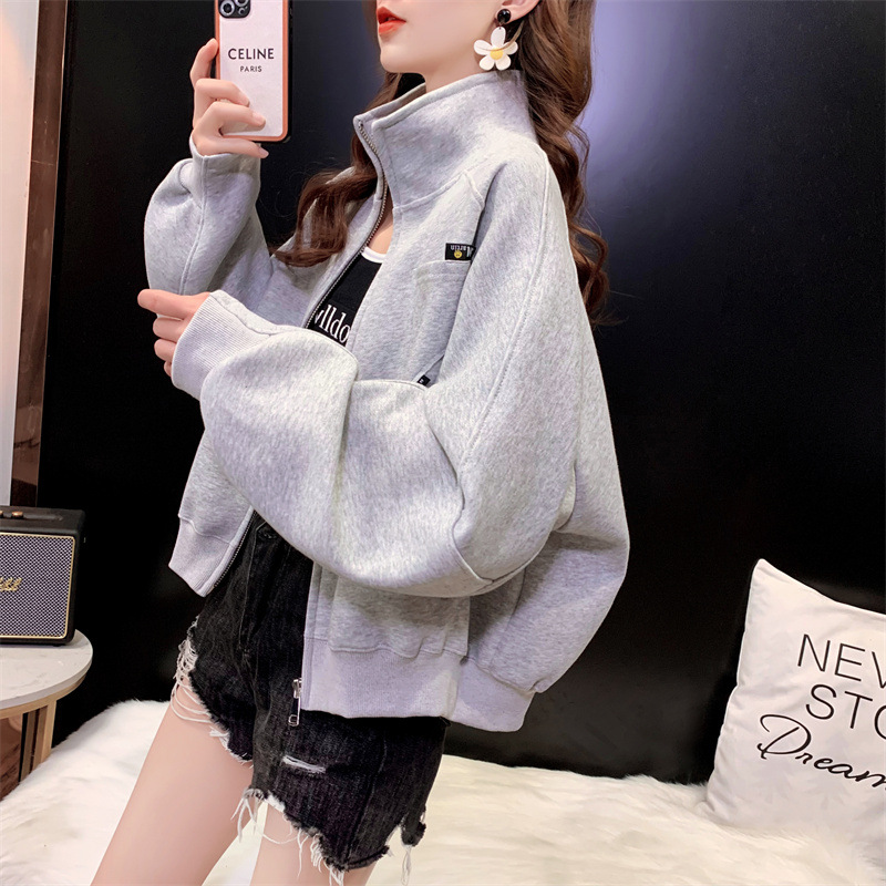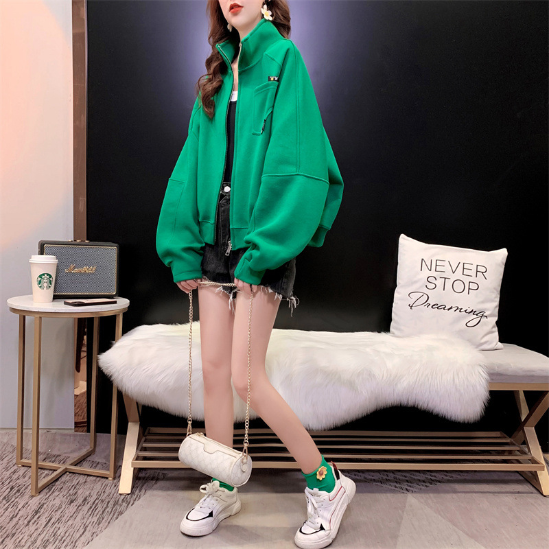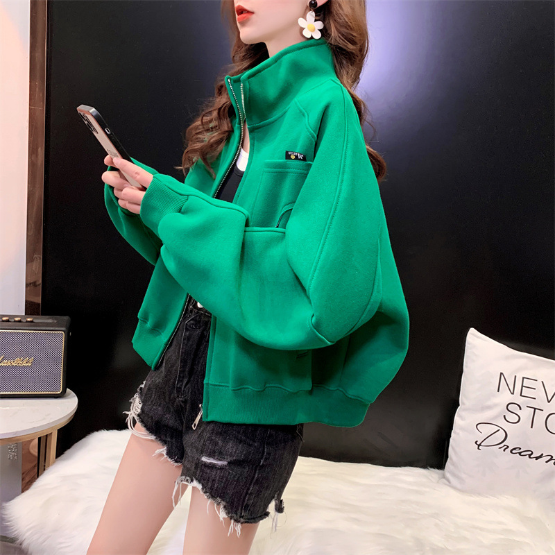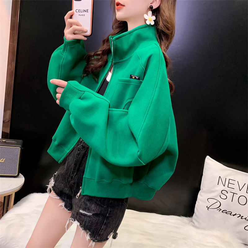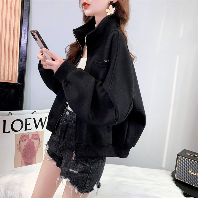2024 봄, 가을, 겨울 새로운 스타일 스탠드 칼라 스웨터 야구 유니폼 플러스 사이즈 디자인 탑 숙녀 짧은 코트