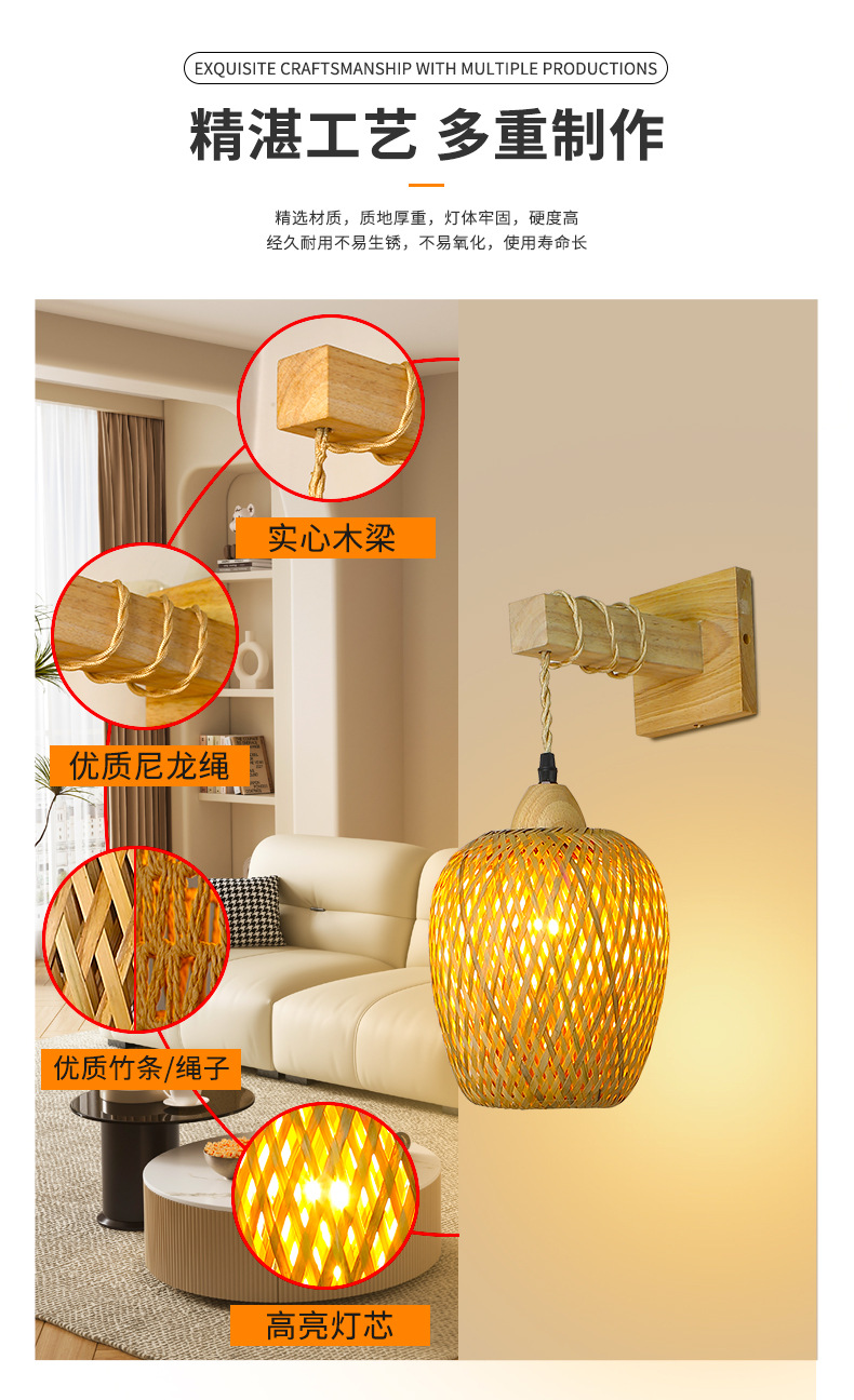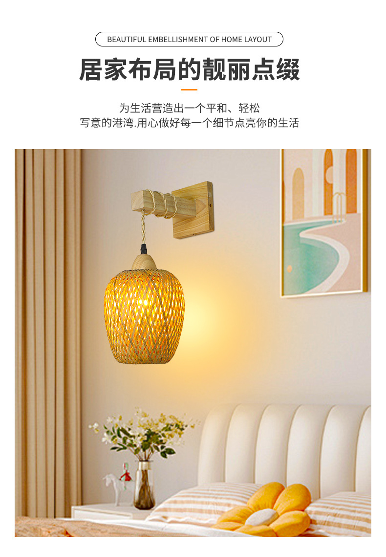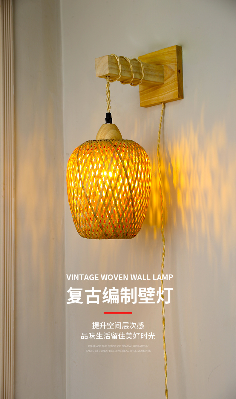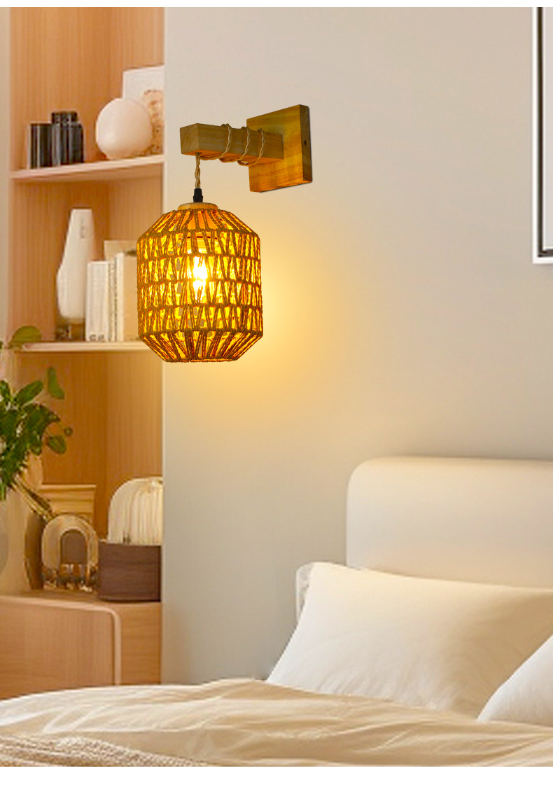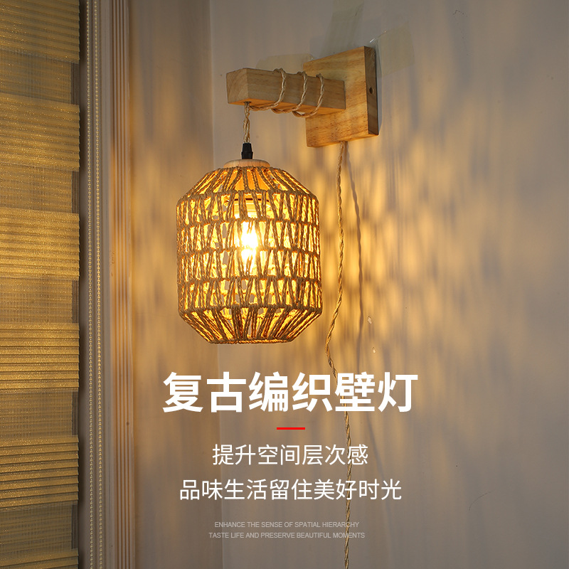 대나무 짠 침대 옆 벽 램프 등나무 예술 벽 램프 홈스테이 침대 옆 발코니 통로 벽 램프 일본식 로그 스타일 배선이없는 벽 램프