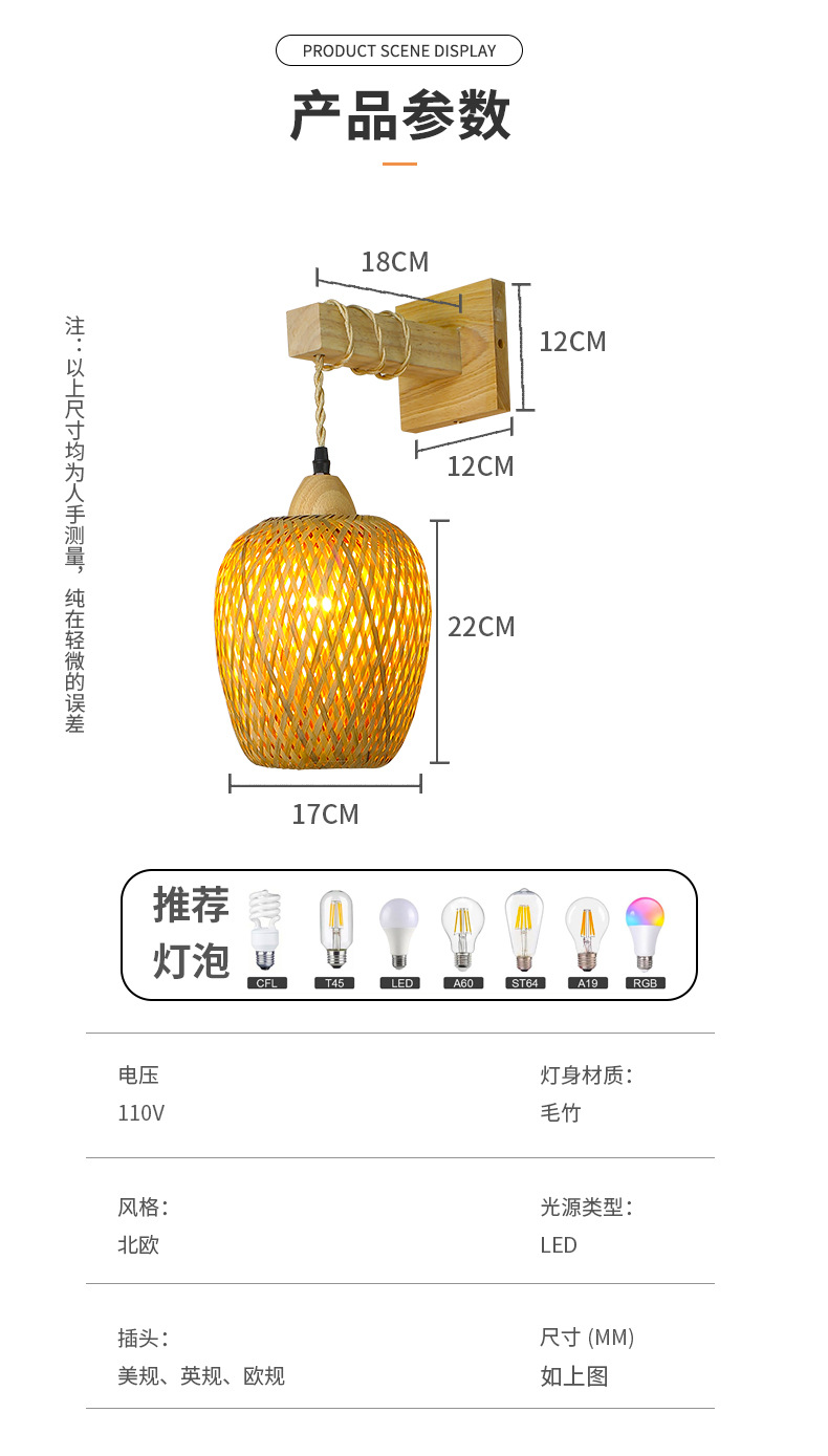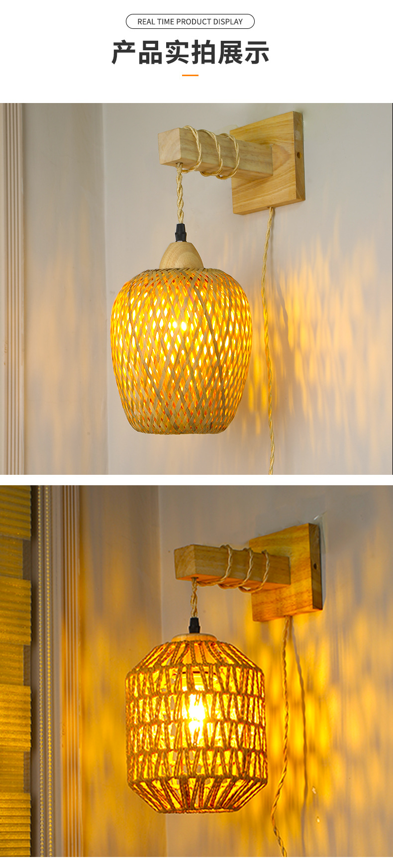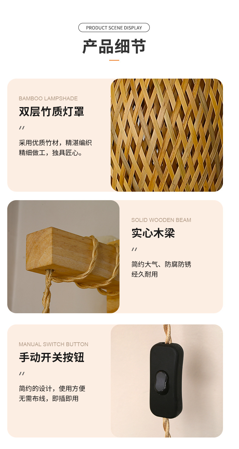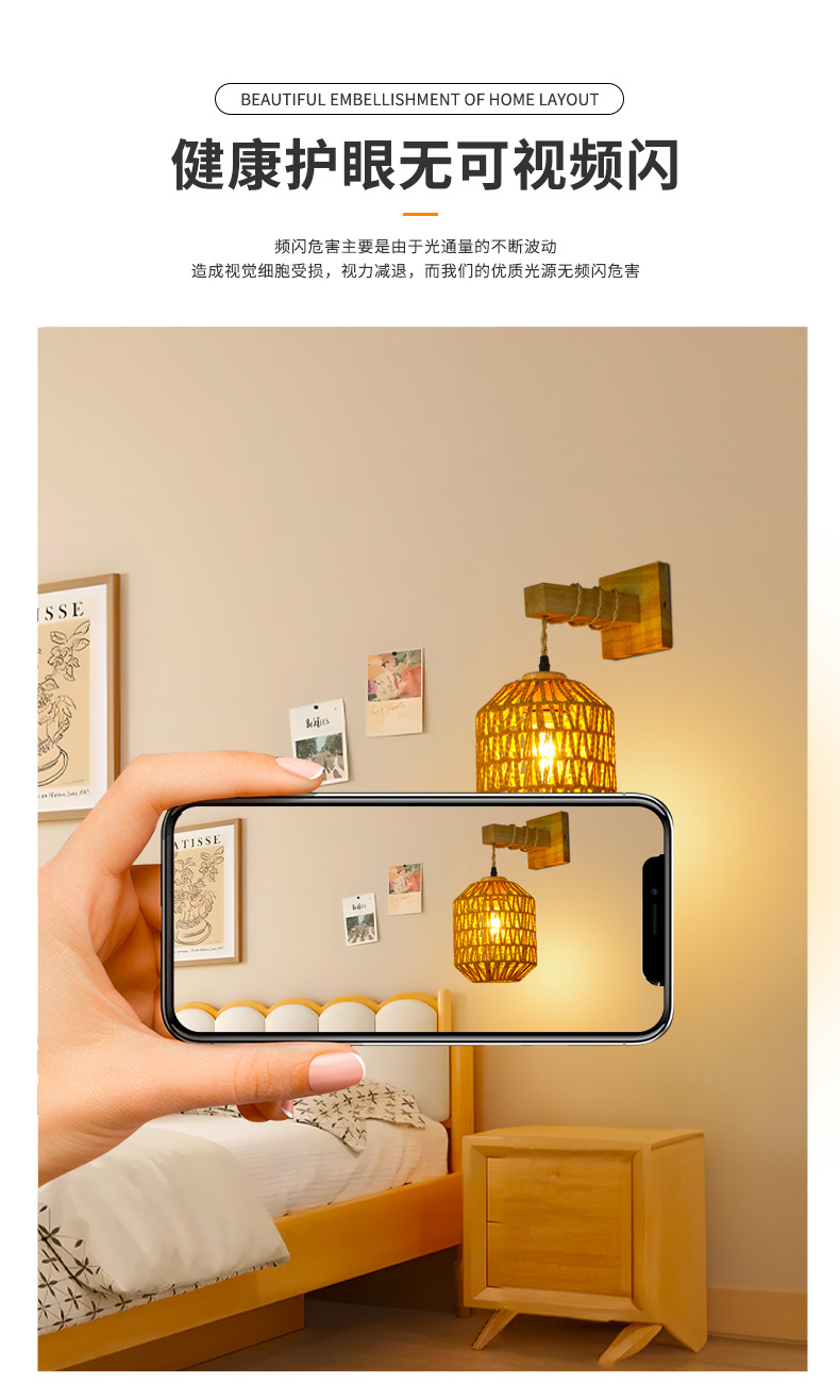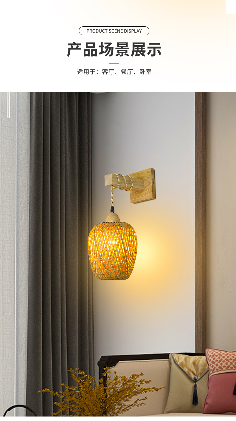 대나무 짠 침대 옆 벽 램프 등나무 예술 벽 램프 홈스테이 침대 옆 발코니 통로 벽 램프 일본식 로그 스타일 배선이없는 벽 램프