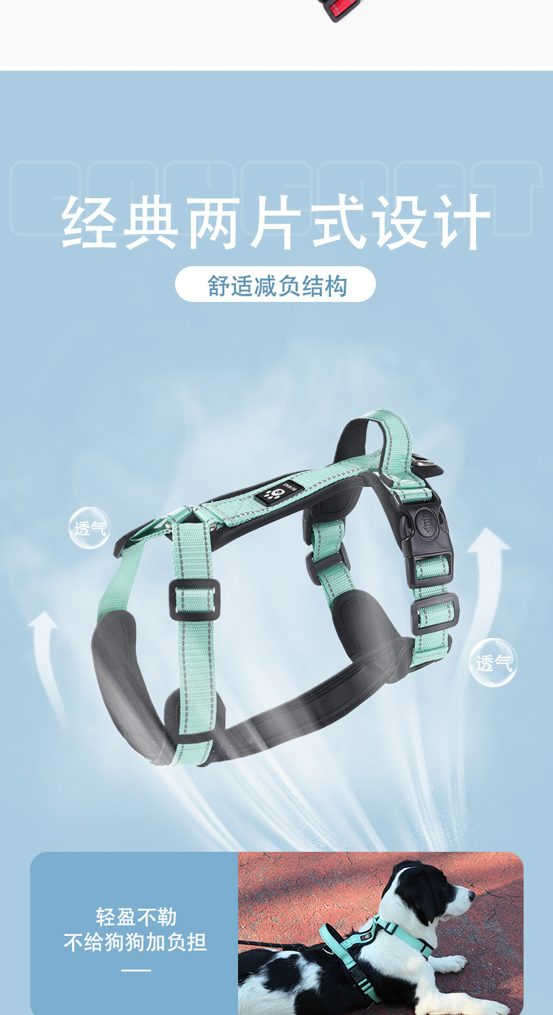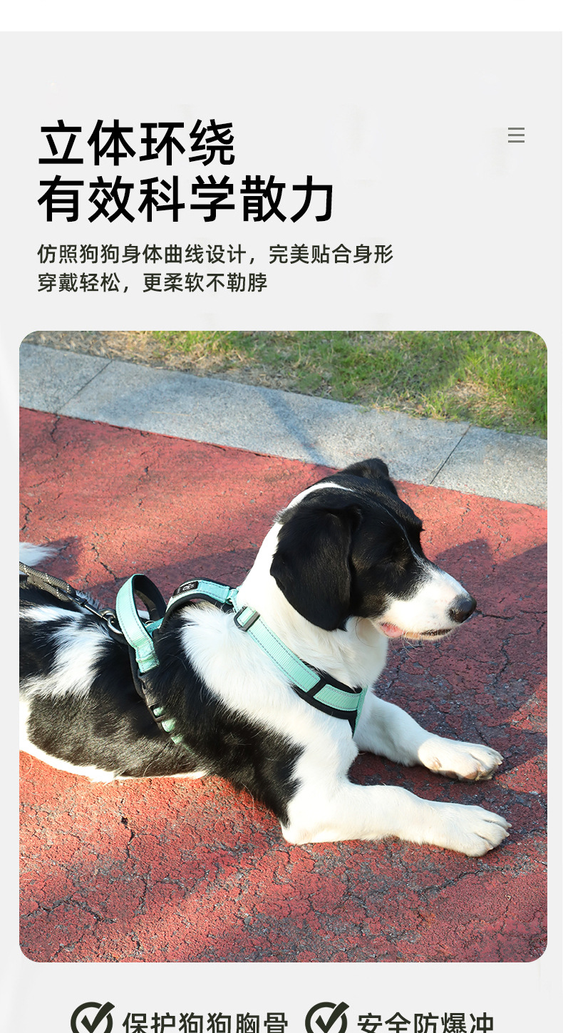 애완 동물 가슴 끈 I 형 안티 브레이크없는 중형 및 대형 개 걷는 로프 폭발 방지 조정 가능한 개 견인 로프