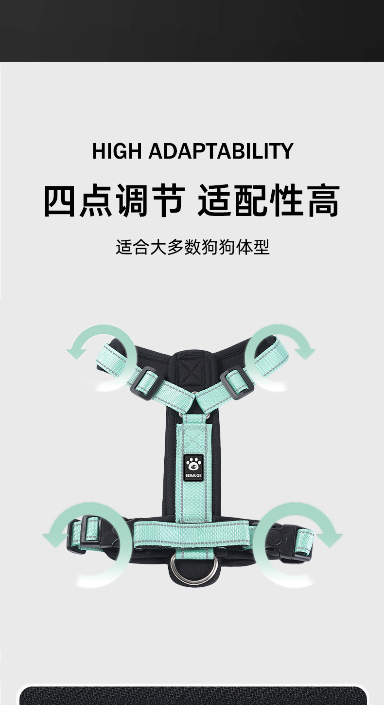 애완 동물 가슴 끈 I 형 안티 브레이크없는 중형 및 대형 개 걷는 로프 폭발 방지 조정 가능한 개 견인 로프스토어 가기