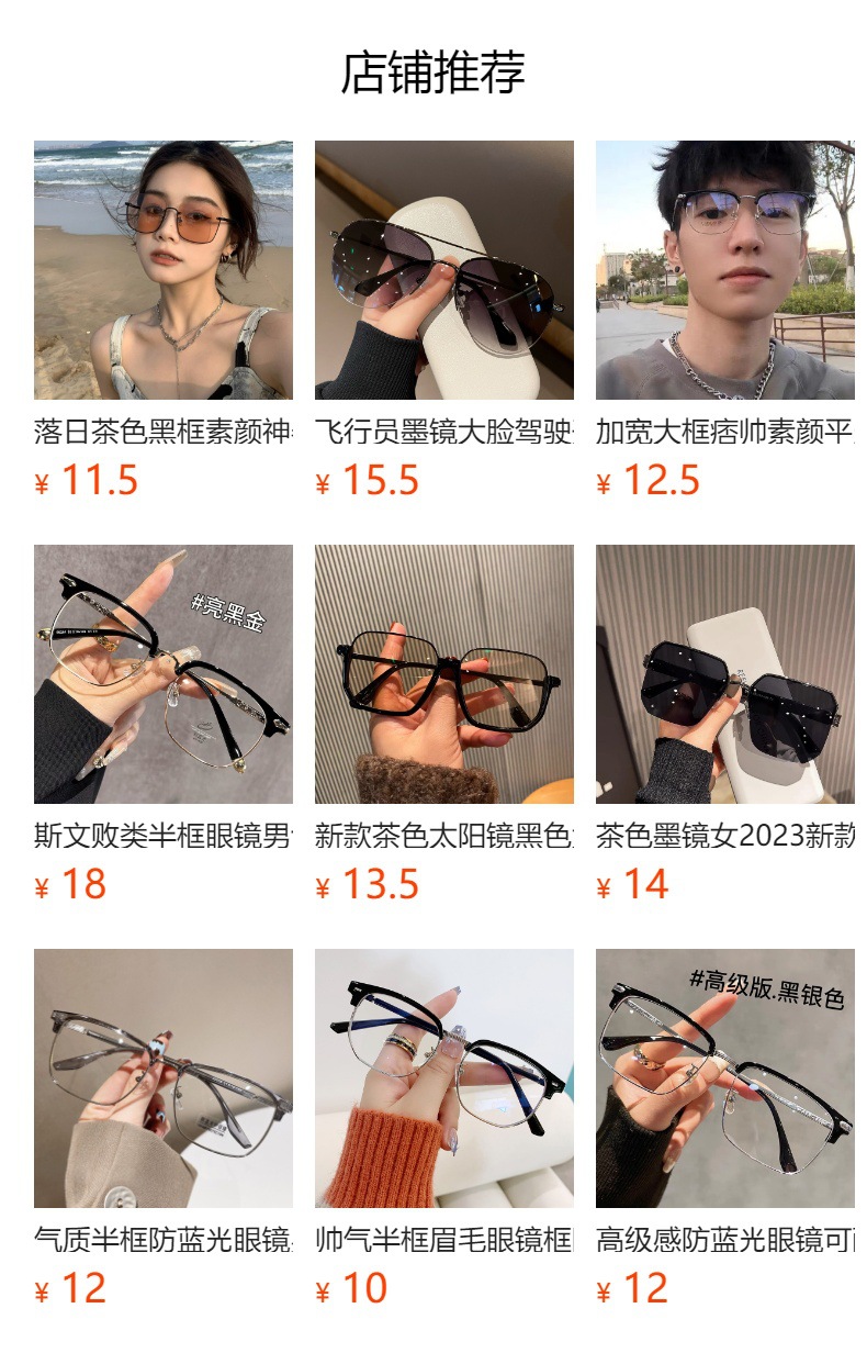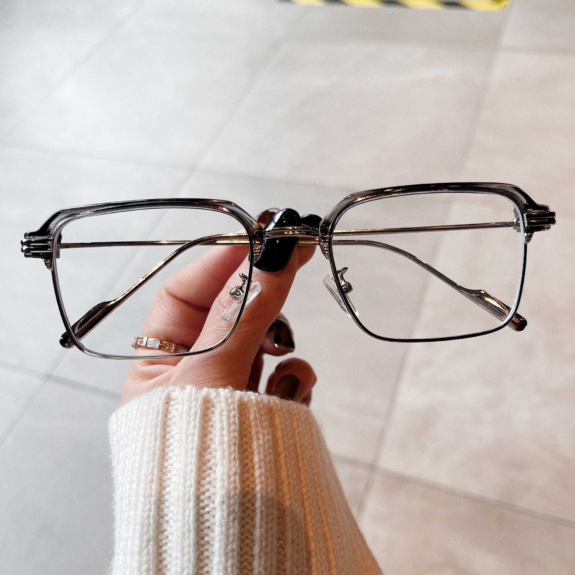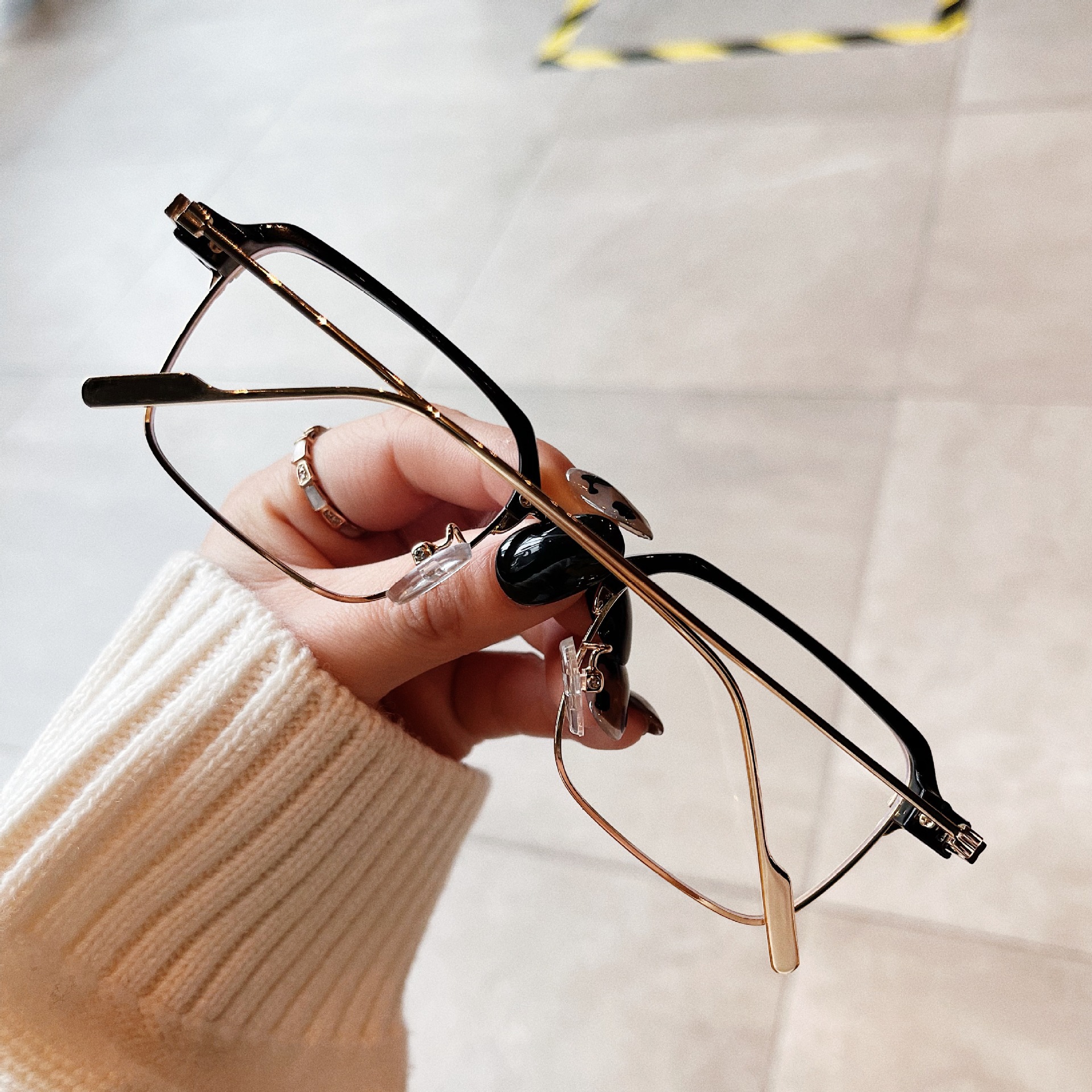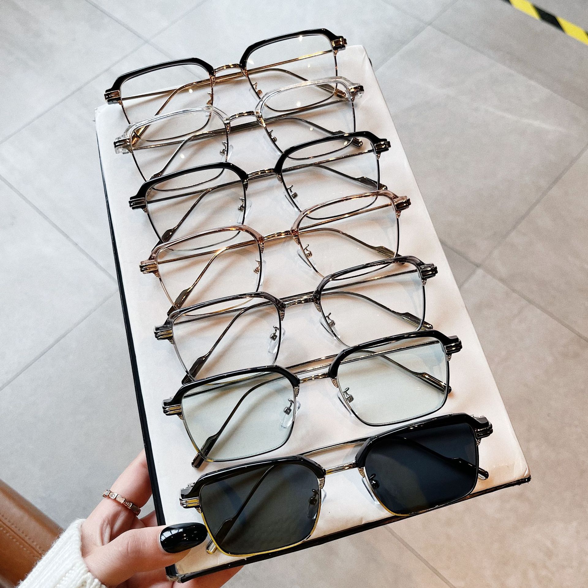 Pi Shuai 금속 하프 프레임 안티 블루 라이트 플랫 안경 프레임 근시 맞춤형 안티 UV 남성용 패셔너블 일반 선글라스스토어 가기