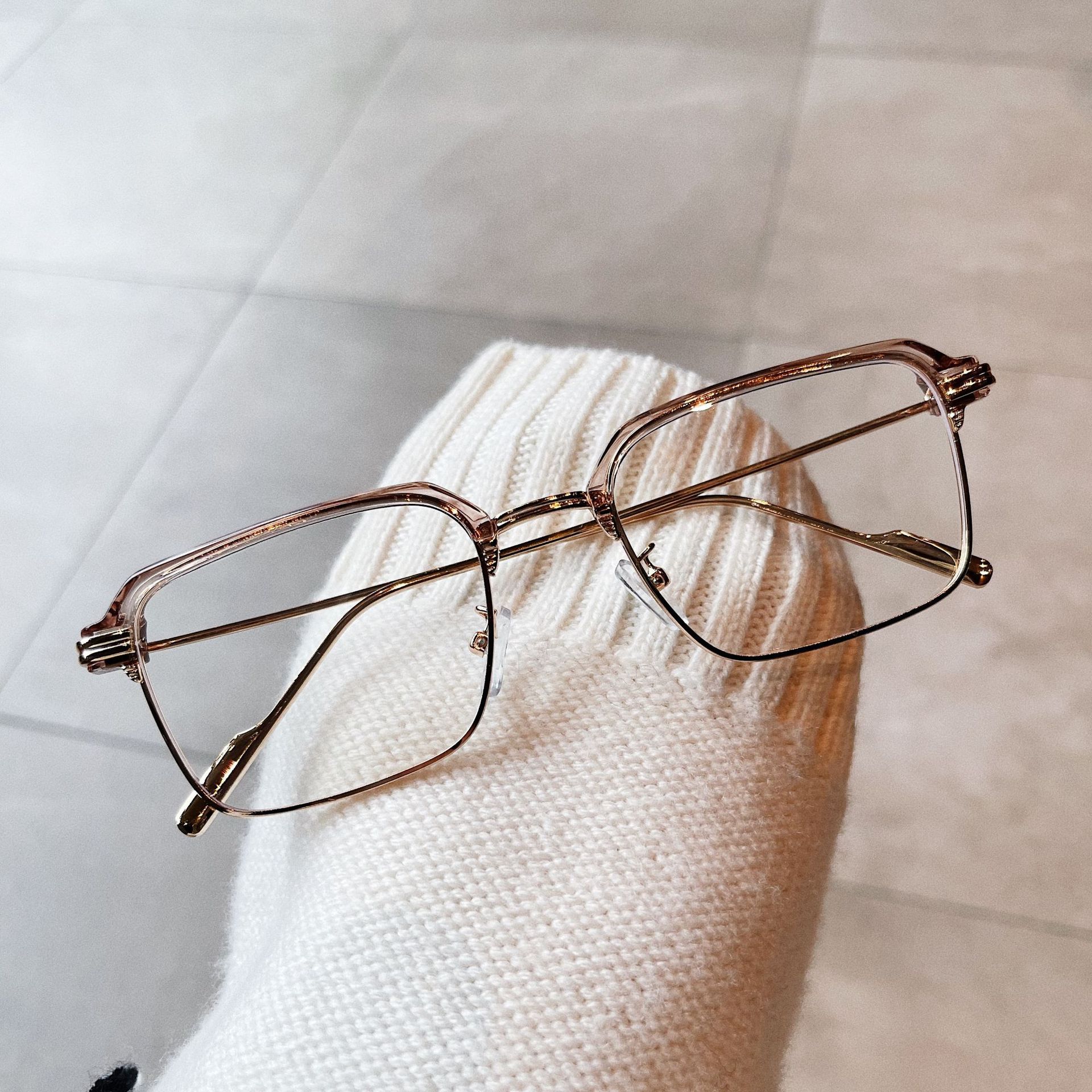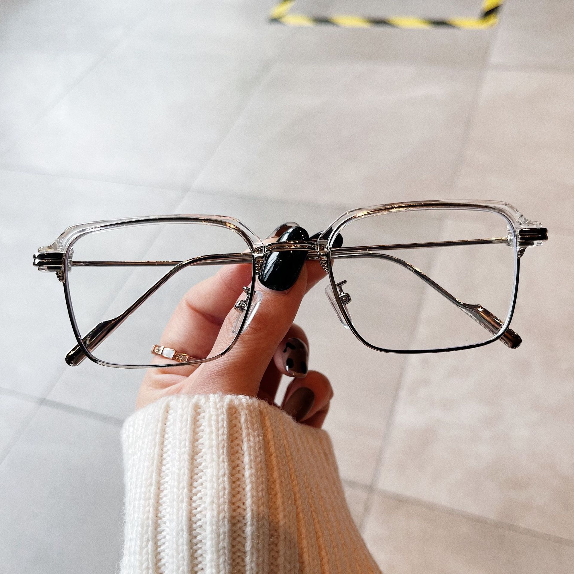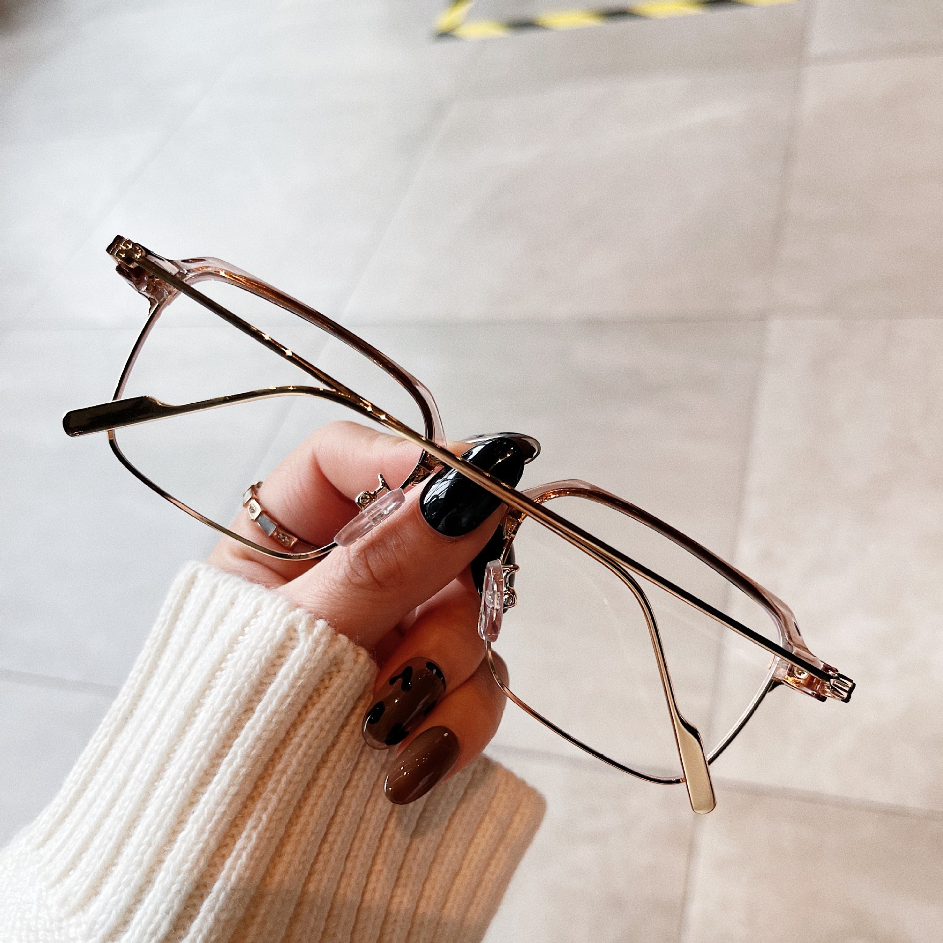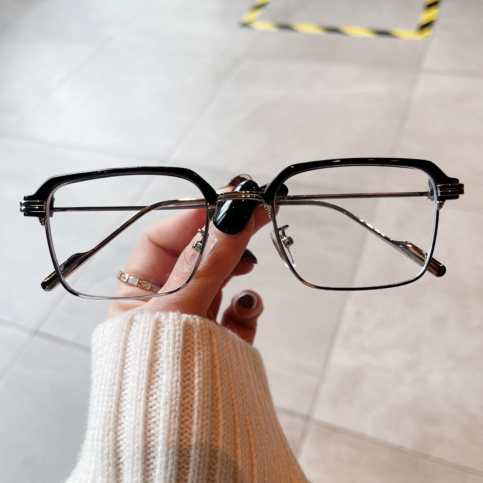 Pi Shuai 금속 하프 프레임 안티 블루 라이트 플랫 안경 프레임 근시 맞춤형 안티 UV 남성용 패셔너블 일반 선글라스스토어 가기