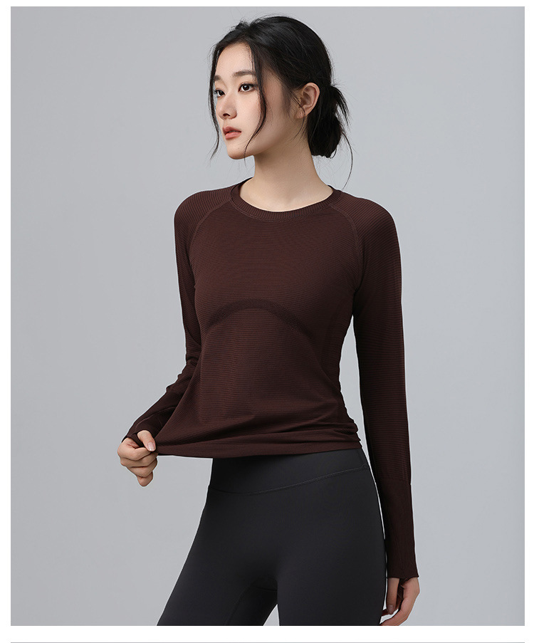 T 요가 세트 여성의 가을과 겨울 슬림 핏 슬림 높은 탄성 크루 넥 스포츠 긴 소매 달리기 훈련 빠른 건조 피트니스 세트