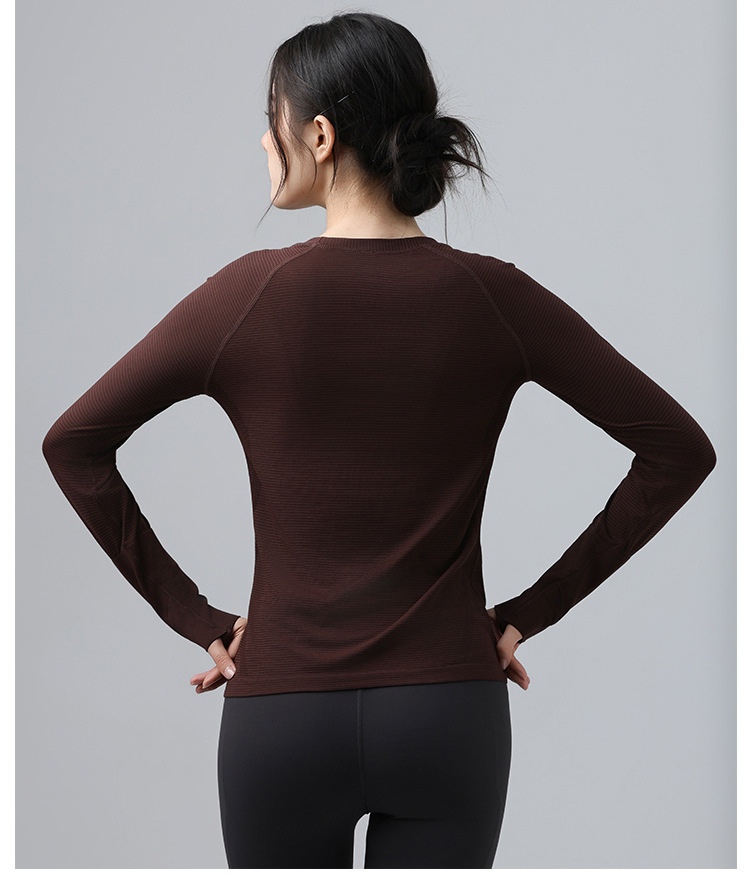 T 요가 세트 여성의 가을과 겨울 슬림 핏 슬림 높은 탄성 크루 넥 스포츠 긴 소매 달리기 훈련 빠른 건조 피트니스 세트스토어 가기
